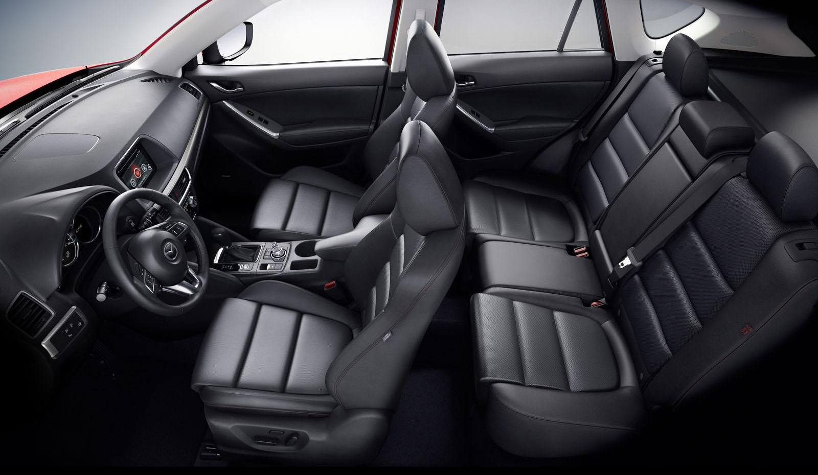 Намного больше работы проделано внутри. Паркетнику подарили новые центральную и напольную консоли. Сверху теперь красуется большой экран мультимедийного комплекса с функцией Mazda Connect, ниже разместился новый блок «климата». Дизайнеры расширили варианты оформления передней панели: теперь тут в зависимости от комплектации и опций три вида отделки — гладкая полоса «под металл», имитация алюминия с тонкими рисками («следы машинной обработки»), дополненная хромовой полоской, и привычный маркий чёрный глянец.