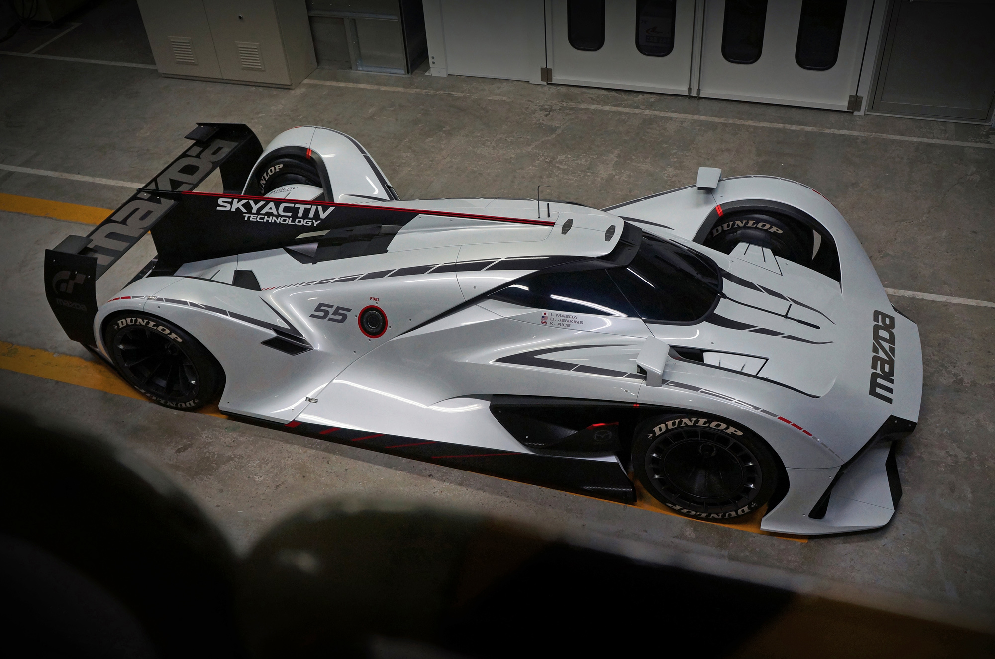 А тут ещё удобный случай: традиционная центральная скульптура на Фестивале скорости в Гудвуде на этот раз была отдана на откуп Мазде. И вот на вершине спиральной дороги скульптор Джерри Джуд разместил точную копию роторного спортпрототипа Mazda 787B, победителя Ле-Мана 1991 года, а рядом с ним — как раз LM55, придуманный как дань уважения тому легендарному автомобилю.