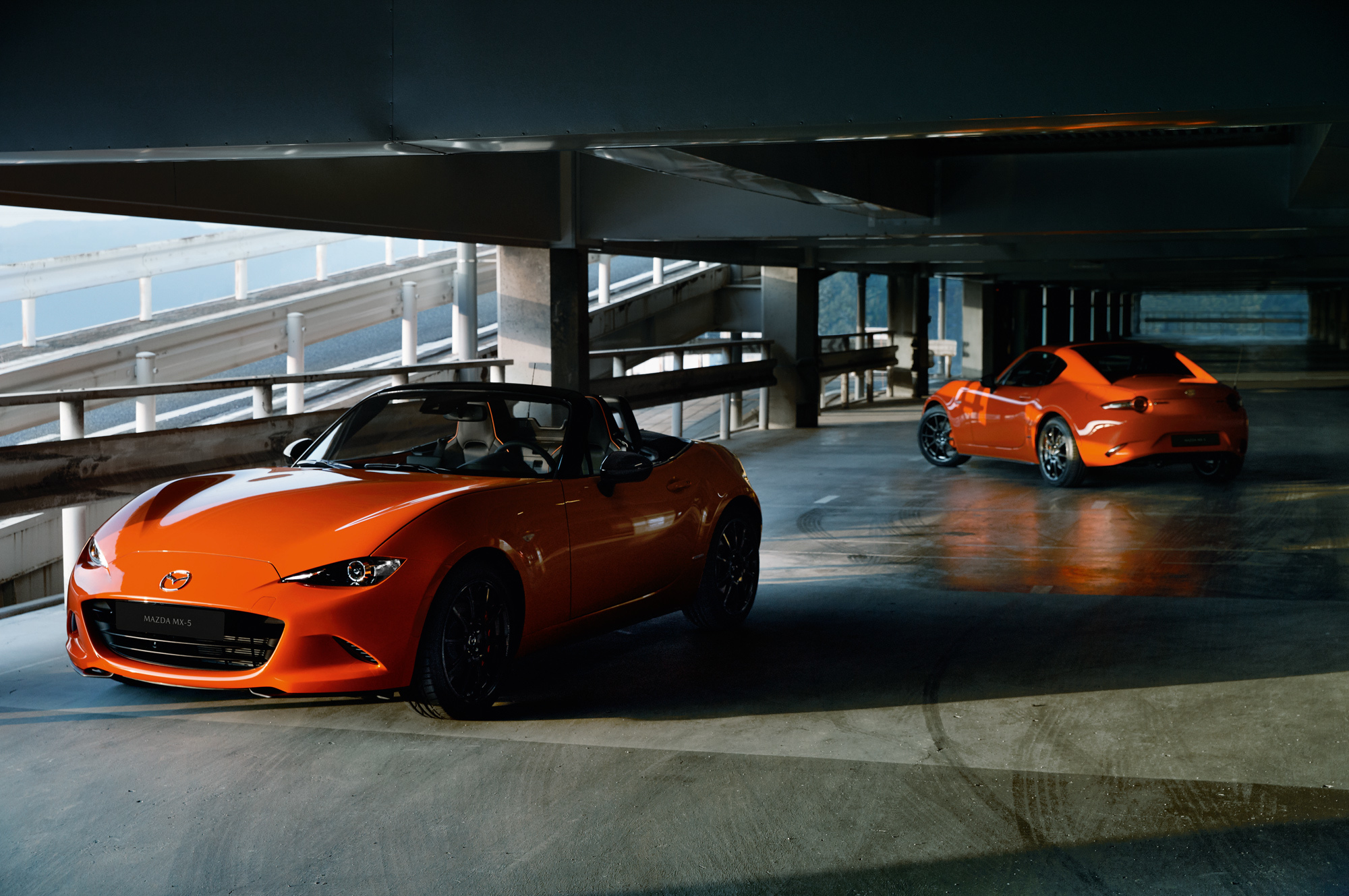 Перемены не затронули мотор (двухлитровый 184-сильный, 205 Н•м), зато в комплектацию юбилейного издания вошли кованые алюминиевые колёсные диски Rays ZE40 RS30, разработанные специально для MX-5 в сотрудничестве с фирмой Rays, передние тормозные суппорты Brembo и задние Nissin, амортизаторы Bilstein (только на версиях с «механикой»), сиденья Recaro, аудиосистема Bose AudioPilot 2 с девятью динамиками, интерфейсы Apple CarPlay и Android Auto (на некоторых рынках). Вообще же, юбилейная серия отталкивается от старших комплектаций и включает матричные диодные фары, навигацию и алькантару в салоне.