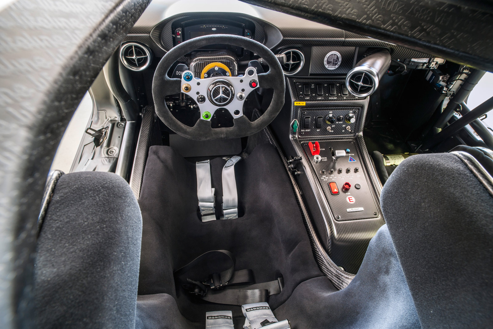 Автомобиль Mercedes SLS AMG GT3 45th Anniversary окрашен в особый тёмно-серый матовый цвет. Большинство деталей, а именно двери, капот, крышка багажника, антикрыло и крылья выполнены из углепластика. Элементы из этого же материала есть и в интерьере двухдверки. Под капотом всё тот же двигатель V8 6.3. В Германии цены на особую серию гоночного SLS AMG начинаются с отметки в 446 250 евро.