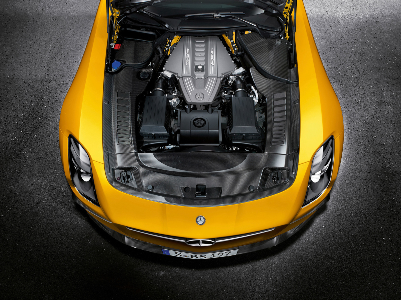 Не прошло и суток с того момента, как по Сети распространилось первое фото топового исполнения суперкара Mercedes-Benz SLS AMG — версии Black Series. На снимке автомобиль был укутан в чёрный чехол, и сказать что-либо о машине было решительно невозможно. И вот теперь покров тайны сорван, и мощнейшая версия «эс-эл-эса» предстала перед нами во всей красе. Расширенный кузов, испещрённый воздуховодами и обильно приправленный углепластиковыми аэродинамическими элементами, — серийный автомобиль внешне оказался даже более агрессивным, чем тестовые прототипы, замеченные ранее на испытаниях. Но всесторонне рассмотреть машину мы сможем совсем скоро — на автосалоне в Лос-Анджелесе, а сейчас руки так и чешутся виртуально залезть ей под капот! Что же тут с технической начинкой?
