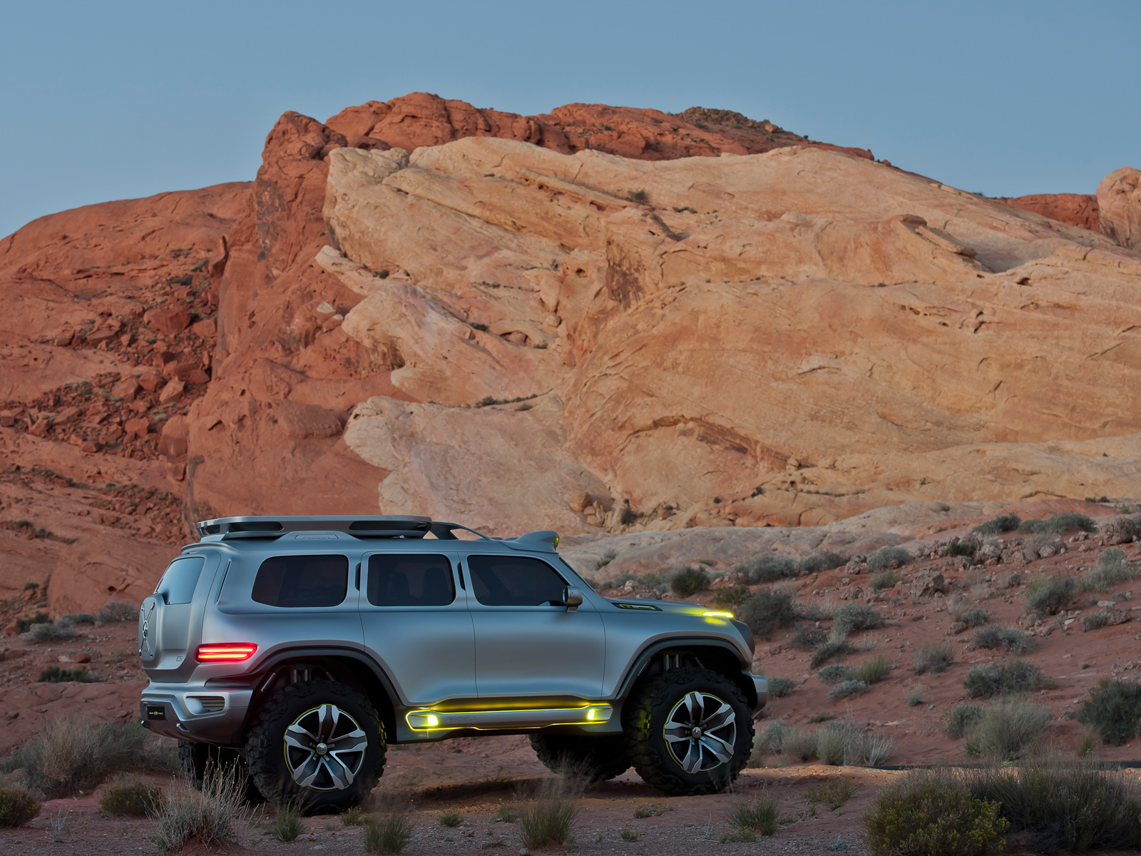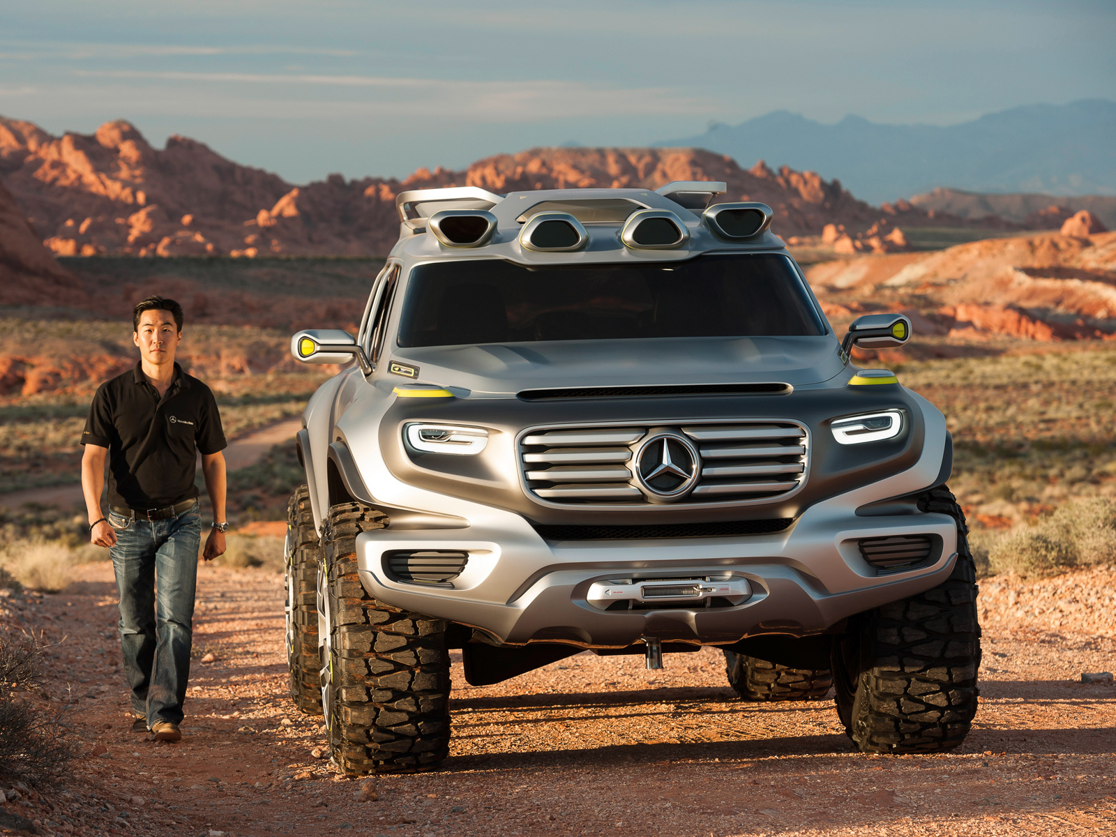Сказать, что концепт выглядит брутально, — ничего не сказать! Напоминает атлета, который забыл остановиться в спортзале и раскачался до немыслимых размеров. А ещё пронзительный взгляд диодных глаз-фар, мощный бампер-подбородок и внушительные внедорожные шины на 20-дюймовых дисках. Но создатели уверяют, что они сохранили преемственность с легендой. Например, вентиляционные прорези сбоку, которые, правда, переехали с крыльев на капот, или отсек под запасное колесо, который создатели приберегли для инструментов. Также американцы говорят об узнаваемом силуэте и форме колёсных арок.