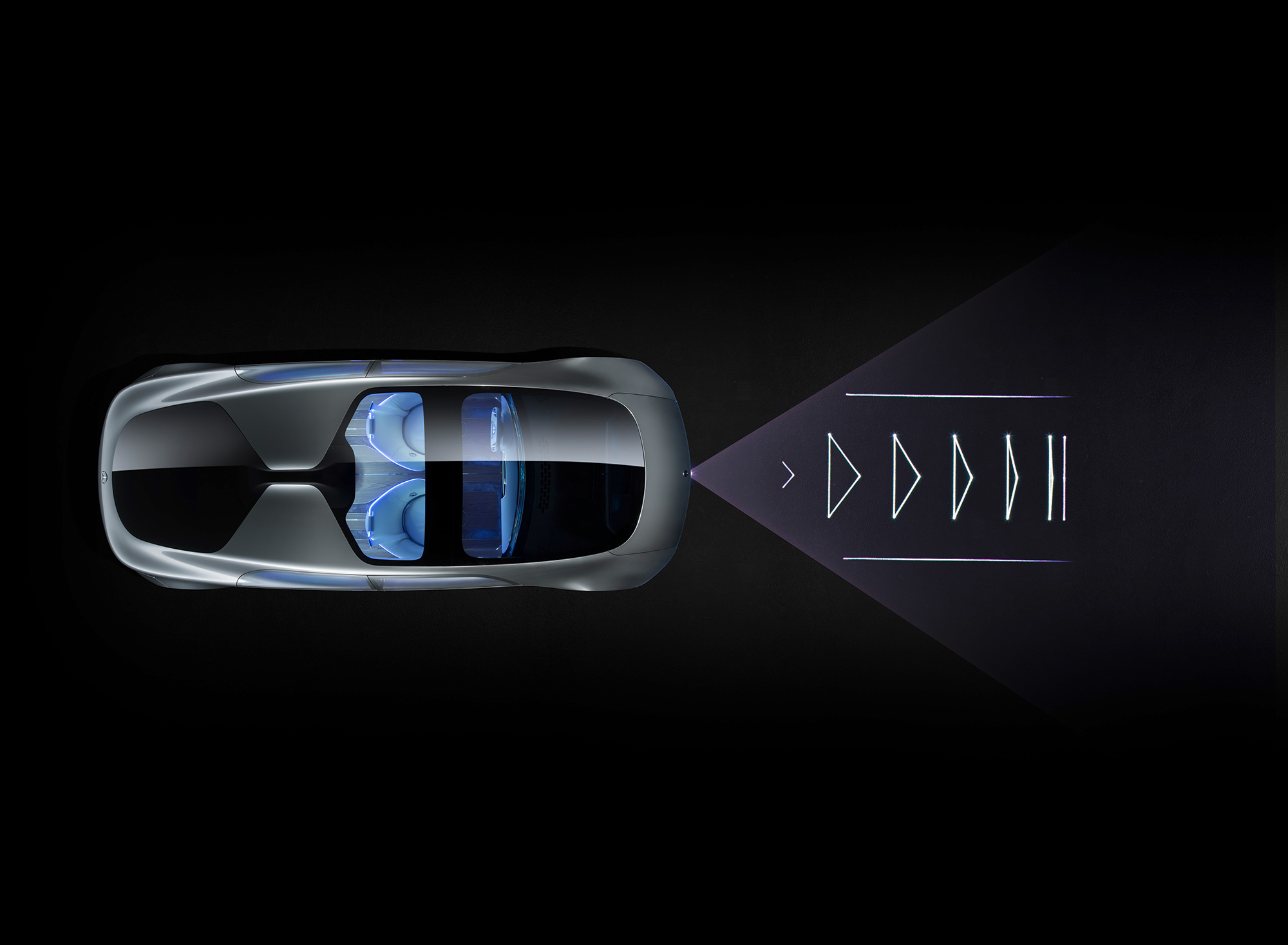 Проекционный дисплей на лобовом стекле концептуального Мерседеса может выводить объектно ориентированную информацию (свободные столики в ресторанах, театральные афиши, свободные места на парковке). На боковые экраны выводится упрощённая цифровая модель ландшафта, синхронизированная с реальной обстановкой (горы вдали, подъёмы и спуски, береговая линия). Вместе с наложением прочих данных и подвижных разнокалиберных «точек», символизирующих информацию вокруг, это должно создавать ощущение перемещения сквозь цифровую вселенную.
