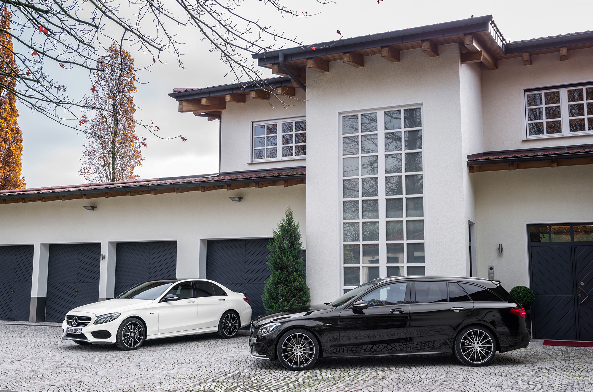 Под капотом обеих новинок установлена трёхлитровая «твин-турбошестёрка», развивающая 367 л.с. и 520 Н•м. В модельном ряду C 450 AMG 4Mаtic позиционируется непосредственно под «горячей» моделью Mercedes-AMG C 63. И дело не только в уровне отдачи двигателя. От C 63 новая «цешка» получила подвеску с изменёнными поворотными кулаками, скорректированной геометрией, пружинами, новыми втулками, а также адаптивными трёхрежимными амортизаторами AMG Ride Control. Настройки амортизаторов можно менять отдельно либо вместе с другими параметрами (рулевое управление, акселератор), которые корректируются при помощи системы AMG Dynamic Select (тут есть пять режимов — от «эко» до «спорт плюс», включая персональный).