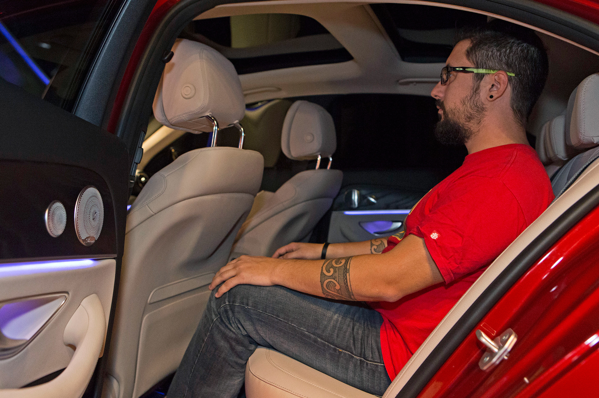 Топовая High-End аудиосистема фирмы Burmester ― это 23 динамика (против 15 у S-класса), включая два потолочных, и 1450 Вт общей мощности, из которых 400 Вт идёт на три сабвуфера. Цифровая часть гибридного усилителя отвечает за низкие частоты, аналоговая ― за верхние и средние. Причём электроника не просто накладывает на сигнал пресет, а пытается определить, какого типа музыка играет и какое пространство для неё лучше подходит. Включаем «электронику» ― и оказываемся в небольшом клубе, где мощный бит отражается от стен и потолка, ставим хор ― стены будто раздвигаются, и мы перемещаемся в партер консерватории. Браво!