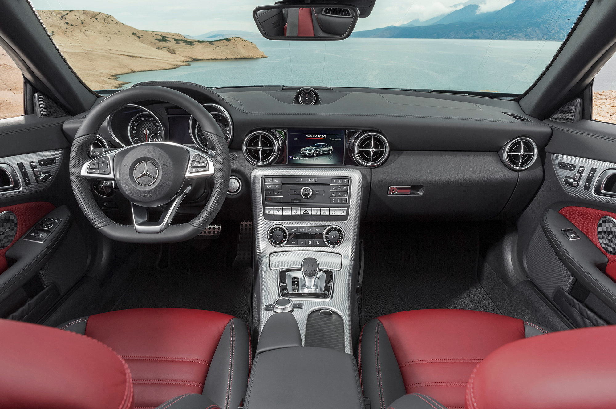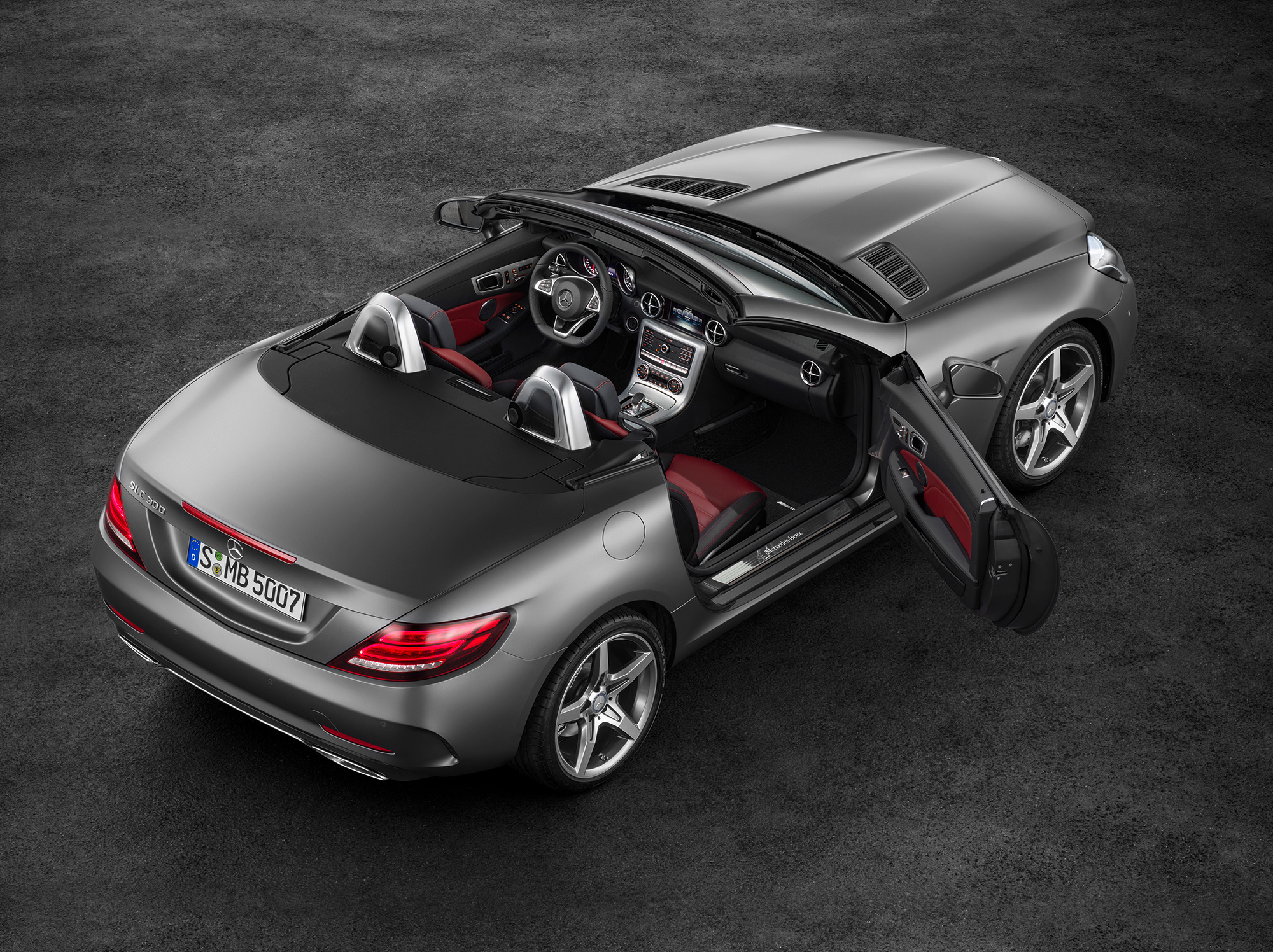 В обычной линейке заявлены четыре версии: SLC 180 (1.6, 156 л.с., 250 Н•м), SLC 200 (2.0, 184 л.с., 300 Н•м), SLC 300 (2.0, 245 л.с., 370 Н•м) и SLC 250d (2.1, 204 л.с., 500 Н•м). Первые две могут оснащаться как шестиступенчатой «механикой», так и девятиступенчатым «автоматом» 9G-Tronic (раньше тут была «гидромеханика» на семь передач), остальные — только «автоматом». Вполне закономерно, что в этом списке SLC 300 — самый динамичный (5,8 с нуля до ста), а дизельная версия — самая бережливая (4,4 л/100 км в комбинированном цикле). Ранее самым маленьким в гамме был мотор 1.8, а на вершине линейки (не считая версии AMG, конечно) стоял вариант SLK 350 с агрегатом V6 3.5.