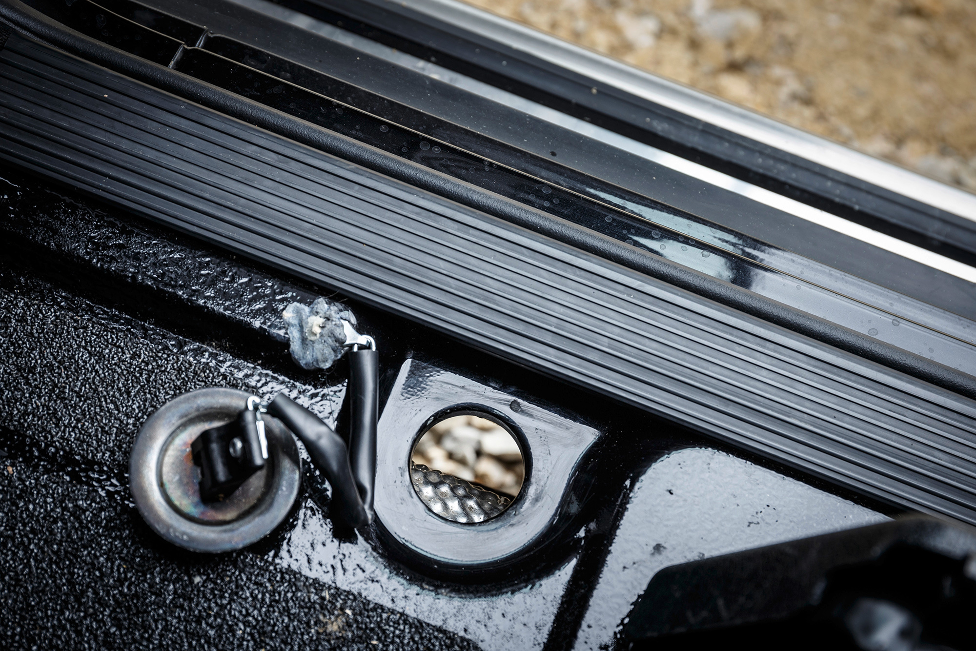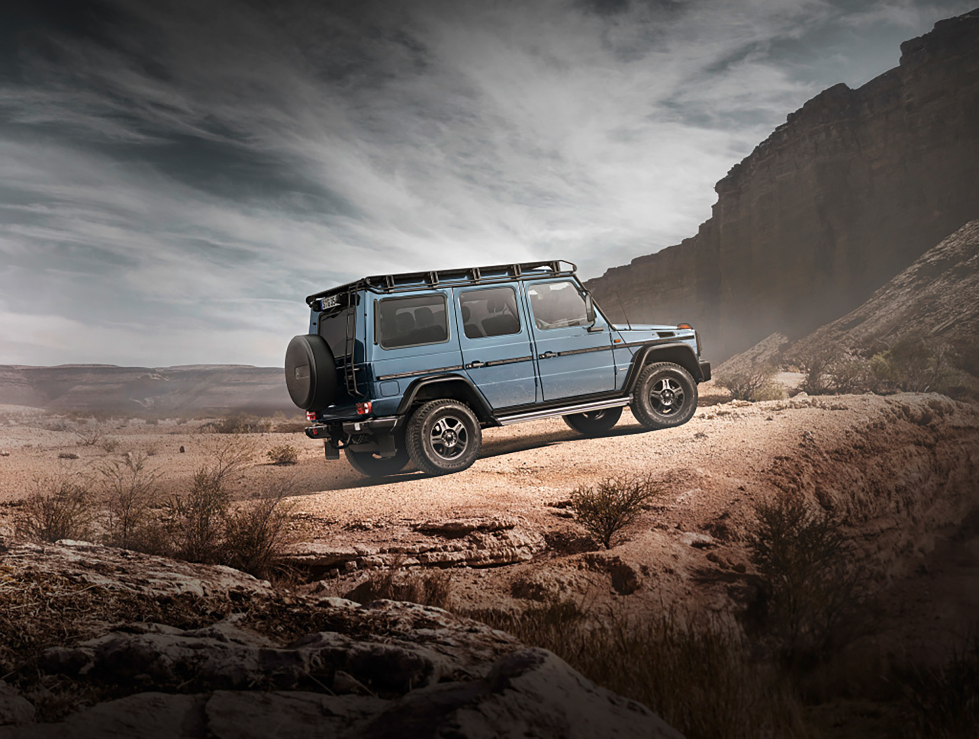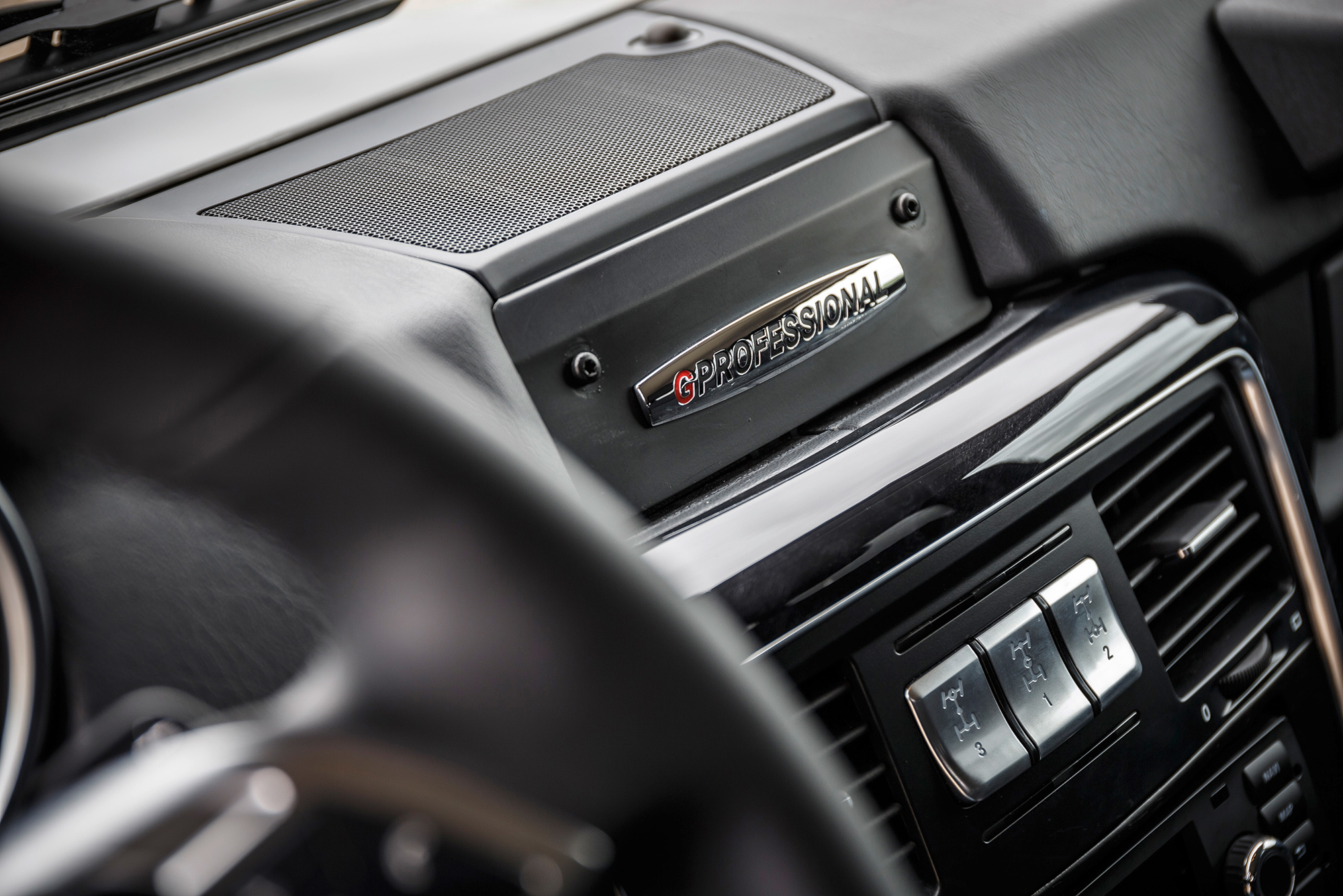Клиренс тут больше, чем у базового автомобиля, — 245 мм вместо 235, угол въезда равен 36 градусам, съезда — 39 (у обычного G 350 d — 30 и 30 градусов). Машина преодолевает брод глубиной 600 мм и 100-процентный (45 градусов) подъём, перевозит до 592 кг и тянет прицеп массой до 3,2 т. Ещё к машине можно докупить стальной передний бампер с подготовкой под лебёдку. В виде опции предложен пакет Professional Off-Road: защитная решётка на биксеноновых фарах, тонированные задние стёкла, деревянная отделка грузового отсека, подготовка под систему hands-free, багажник на крыше с лестницей. Ещё есть набор Load Protection (сетка в багажнике, крышка отсека и фиксированное буксирное устройство).