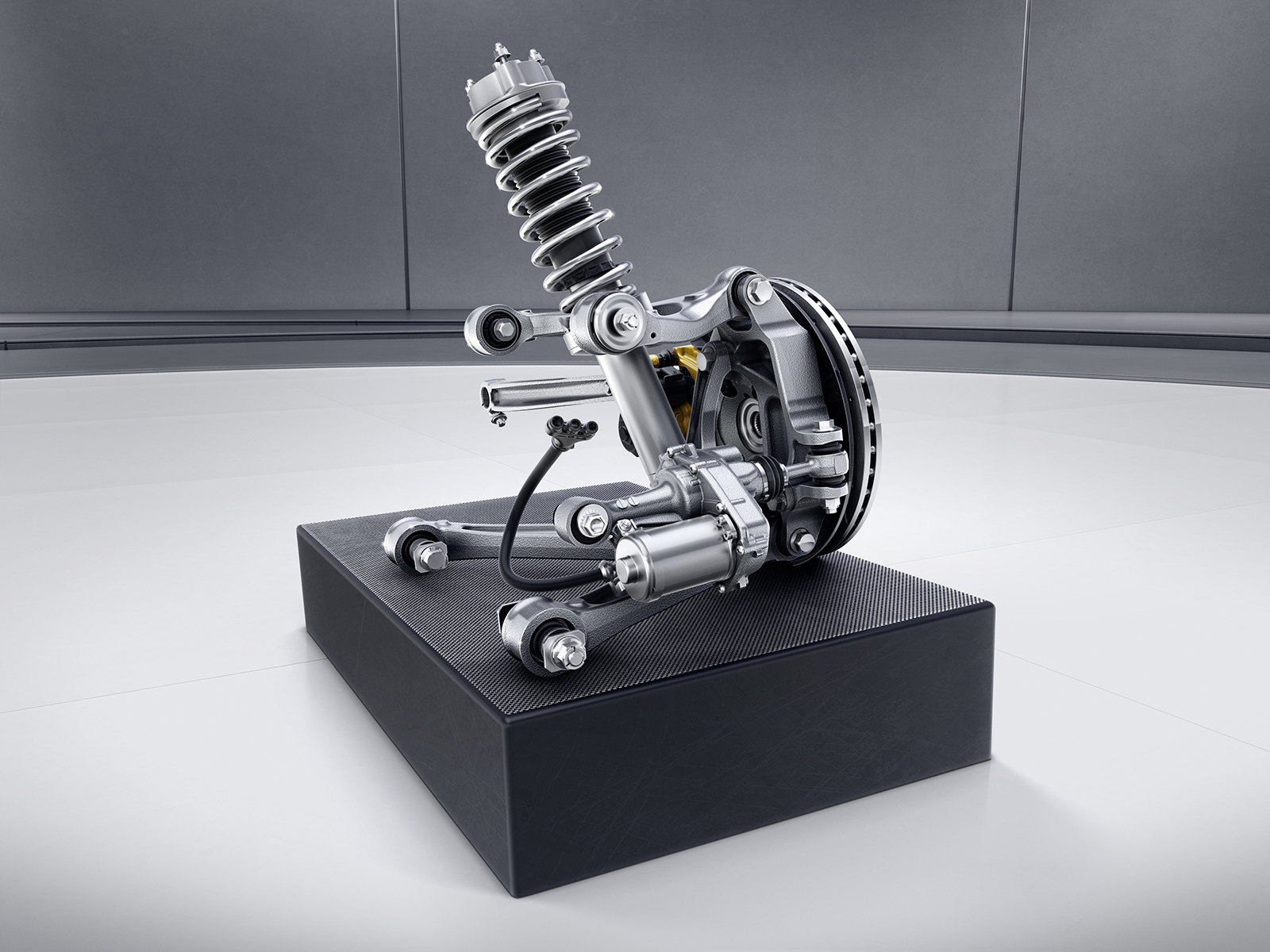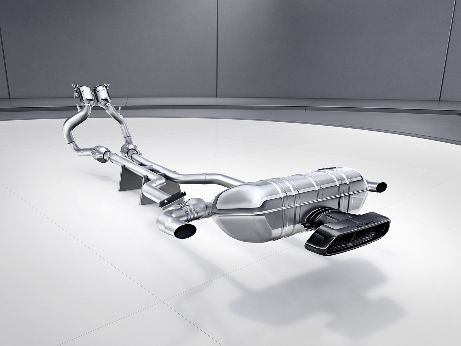 Впервые на Мерседесах-AMG внедрено полноуправляемое шасси. Как и в других похожих системах, на малой скорости (до 100 км/ч) задние колёса поворачиваются в сторону, противоположную передним, чтобы сократить радиус разворота, а на высокой — на небольшой угол в ту же сторону, что и передние, ради лучшей стабильности. За отклонение отвечает электромеханический привод. Кстати, подвески существенно перекроены. Они получили оригинальные детали из кованого алюминия, новые опорные подшипники, регулируемые под трассу блоки амортизатор-пружина типа coil-over, спроектированные специально под данную модель. При этом сохранено и электронное управление амортизаторами с режимами Comfort, Sport и Sport Plus.
