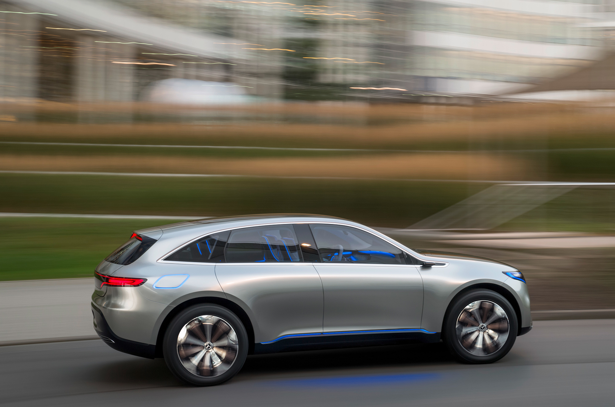 В движение паркетник приводится двумя электромоторами, которые установлены по одному на передней и задней оси. Суммарная отдача — 300 кВт (408 л.с.) и 700 Н•м крутящего момента. Питаются они от блока литий-ионных батарей энергоёмкостью 70 кВт•ч. По уверению производителя, с места до 100 км/ч Mercedes Generation EQ способен разгоняться менее чем за пять секунд.