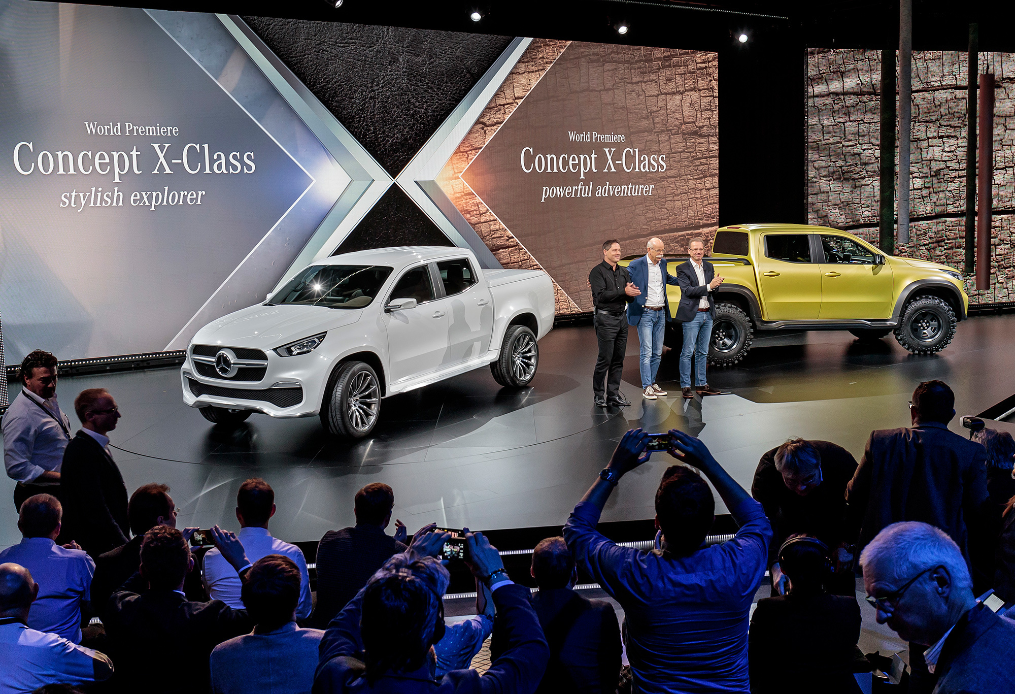 В рамках закрытого мероприятия в Стокгольме компания Mercedes наконец-то представила первый в своей истории пикап (формально он не первый, раньше немцы выпускали пикапы на базе легковушек). Сюрпризом стало то, что на сцену выкатили сразу два автомобиля — stylish explorer, представляющий собой городской вариант модели, а также powerful adventurer — подготовленную машину для бездорожья. Оба — концепты. В серийное производство пикапы, получившие имя X-Class, пойдут в следующем году.