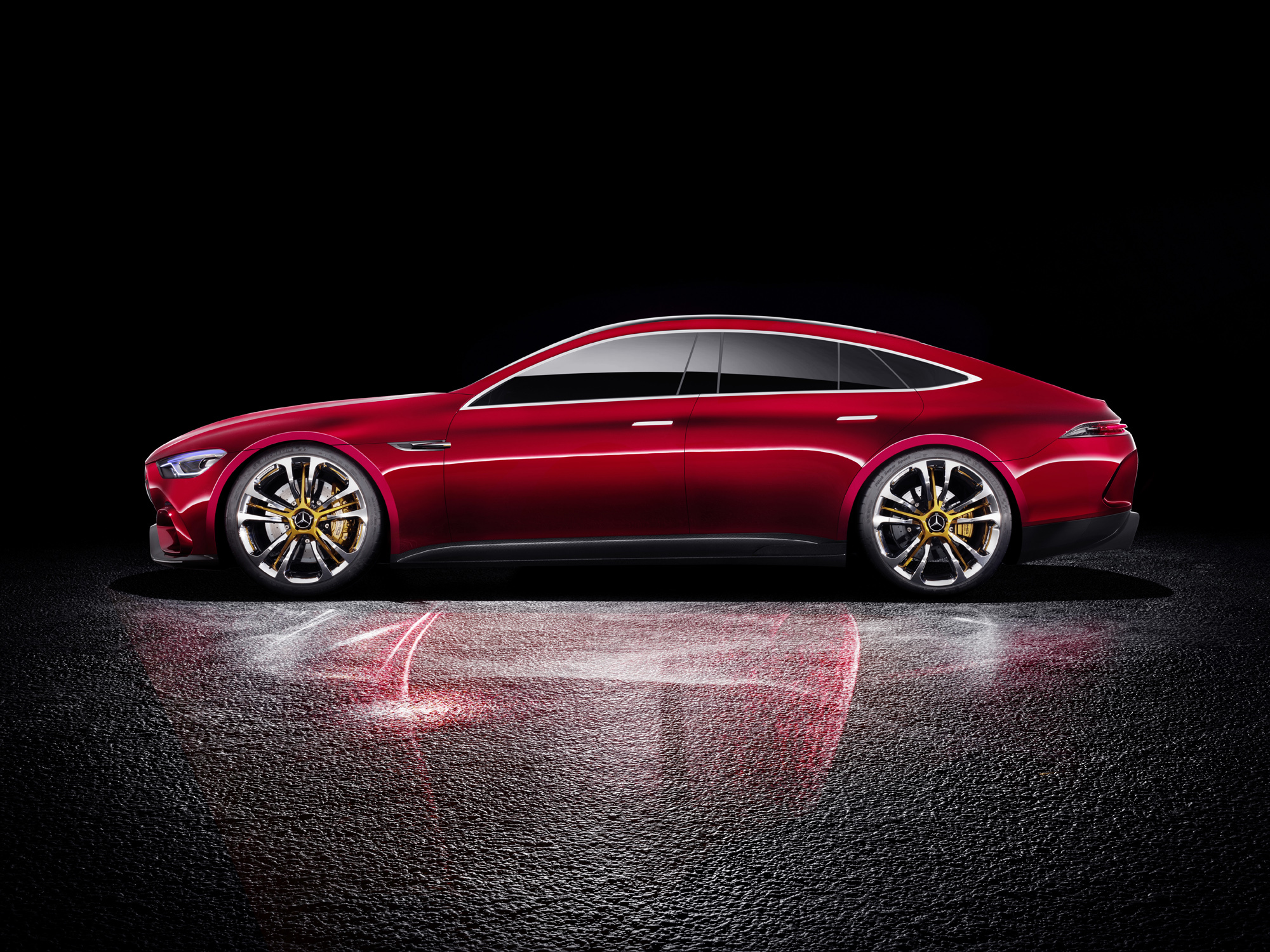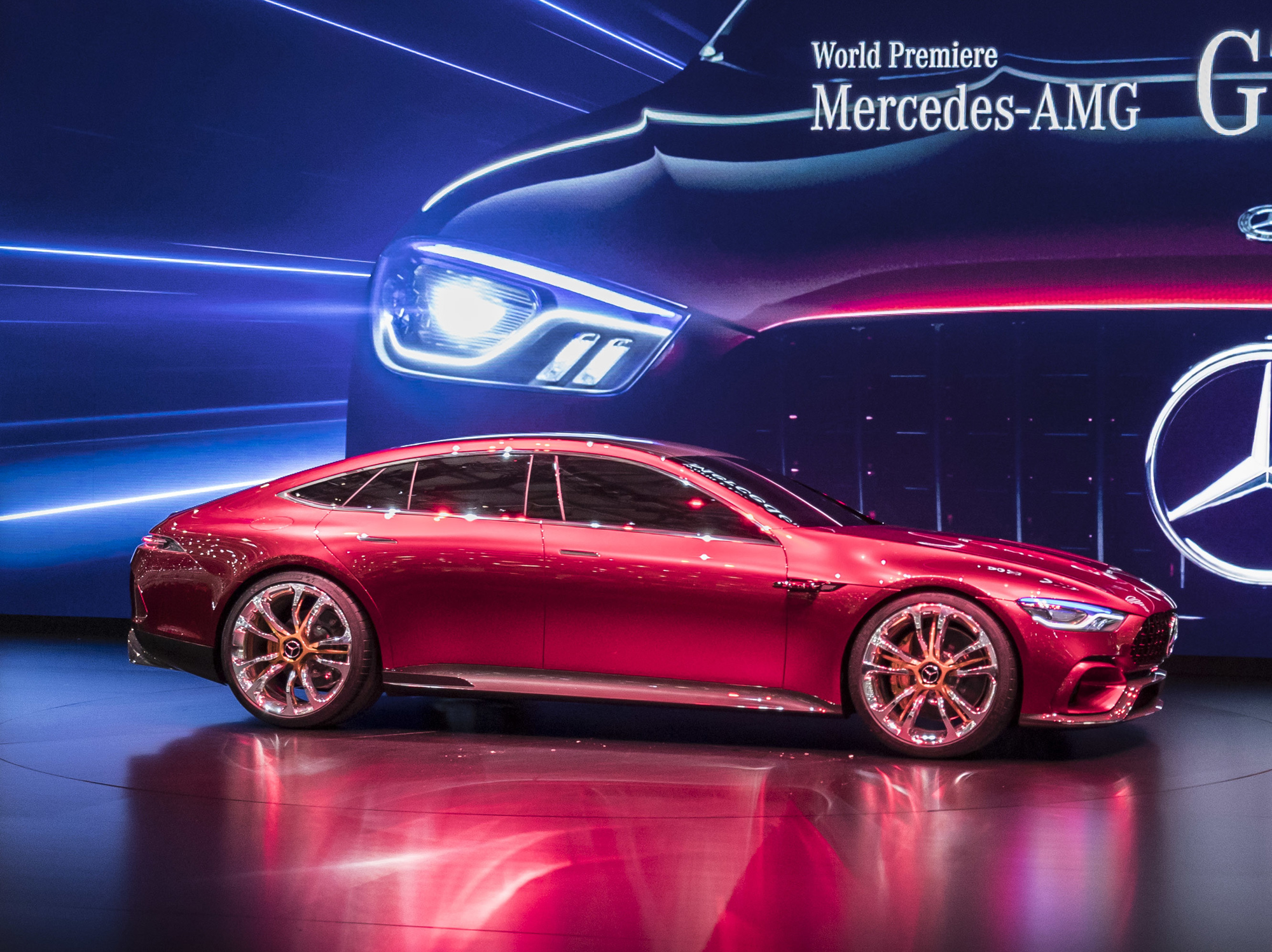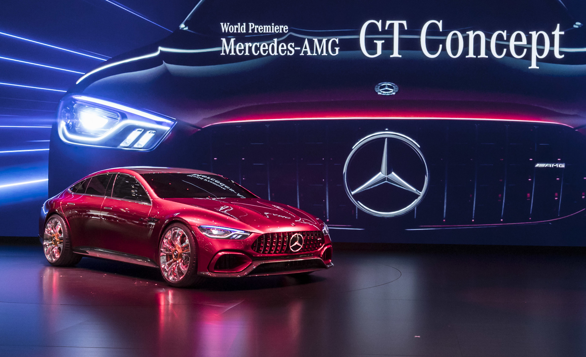 Производитель использует для обозначения шоу-кара Mercedes-AMG GT Concept оксюморон «четырёхдверное купе». Впервые его публично применили в 2003 году к седану CLS, а теперь прижившимся кривоватым термином маскируют хэтчбек, который должен занять ту же нишу. Концепт со временем превратится в модель бизнес-класса, стилизованную под спорткар GT. Однако по данным инсайдеров, по шасси машина — родственник Е-классу.