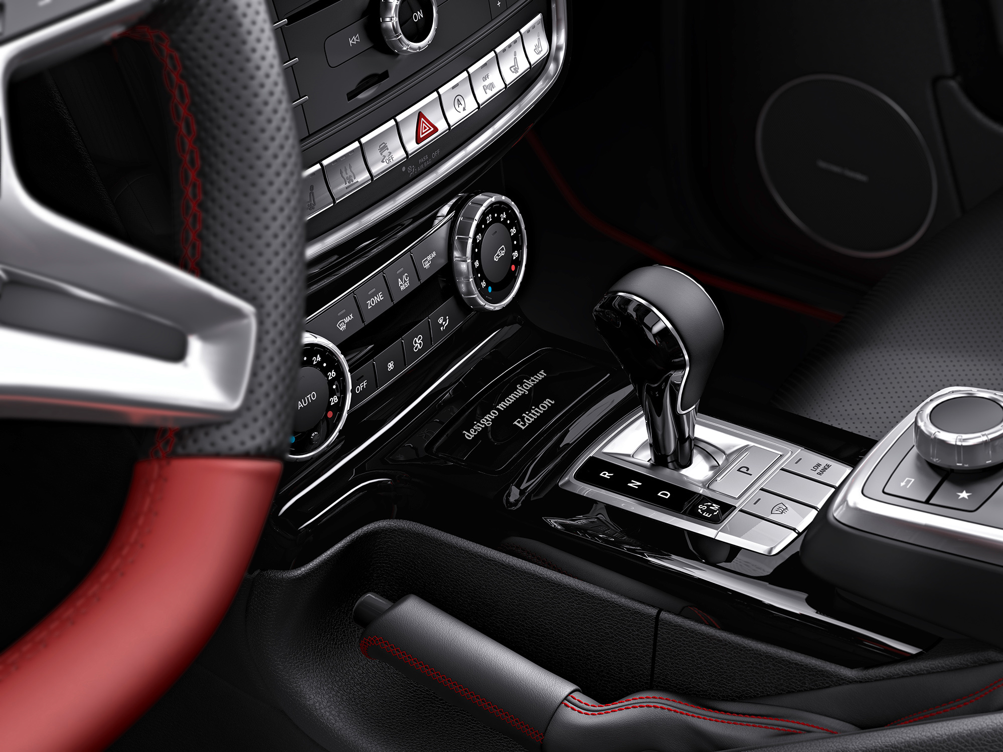 Исполнение designo manufaktur Edition доступно для модификаций G 350 d и G 500. Такие машины окрашивают в один из трёх цветов ― Designo Magma Red, Designo Mystic White и Obsidian Black. При этом решётка радиатора, 19-дюймовые пятиспицевые колёса, боковые молдинги, корпуса зеркал заднего вида и чехол запасного колеса всегда окрашены в чёрный. В салоне ― дорогущая чёрная кожа nappa с прострочкой красными нитками, двухцветный руль, чёрные потолок и красные ремни безопасности. В базовое оснащение спецверсии входят мультиконтурные передние кресла с подогревом и вентиляцией, а также кожаная отделка передней панели.