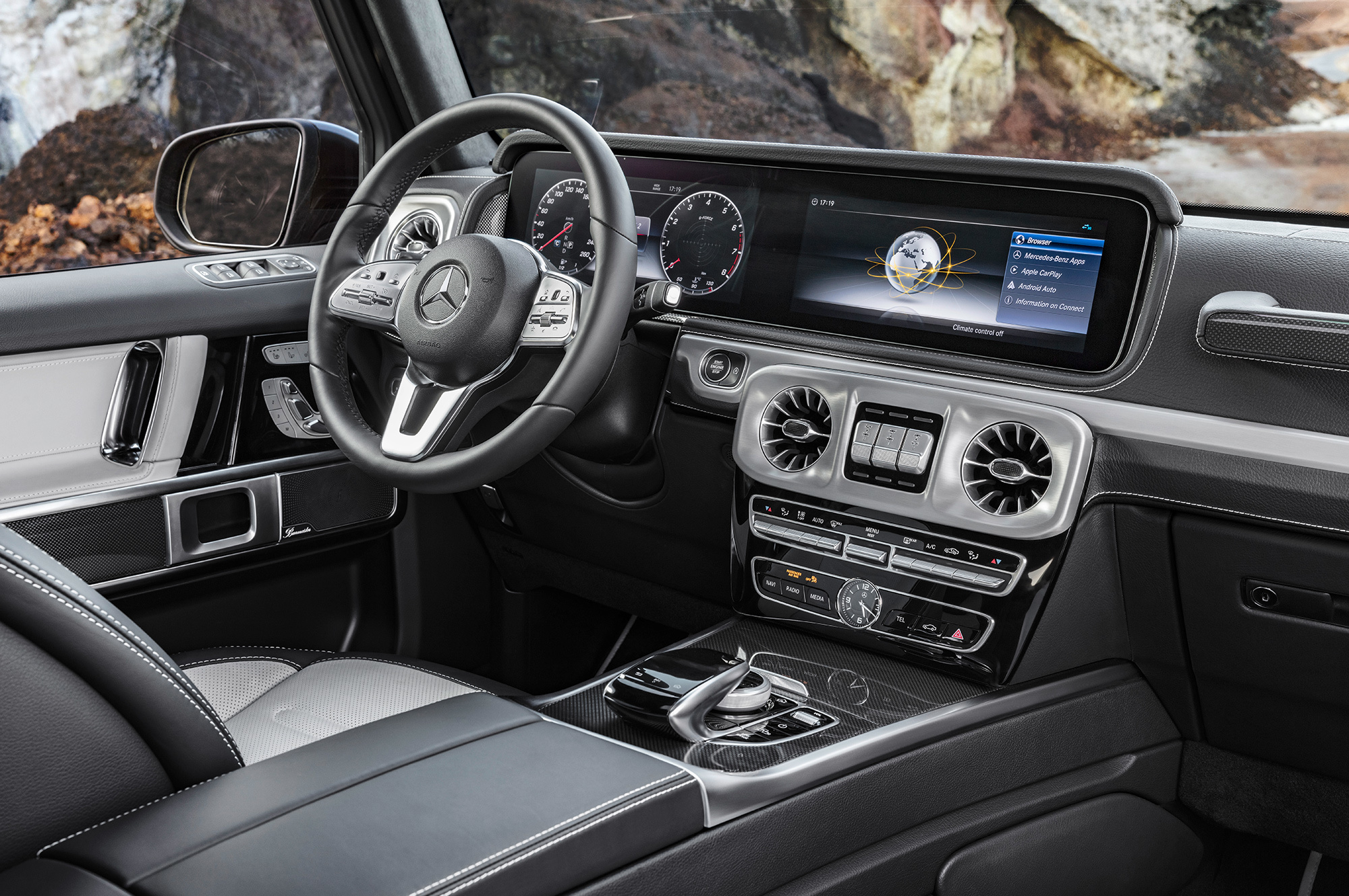 Производство привычного G-класса серии W463 началось в 1990 году. Интерьер был облагорожен наподобие легковых Мерседесов с помощью традиционных для тех лет приборов, клавиш-рычажков, а также отделки деревом и кожей. Поручень на передней панели стал родовой отметиной. Полный привод был сделан постоянным, раздатка по-прежнему управлялась рычагом. На передней панели появились культовые кнопки блокировок, тогда ещё расположенные в столбик. Со временем G-ваген обзавёлся круиз-контролем и передними подушками безопасности.