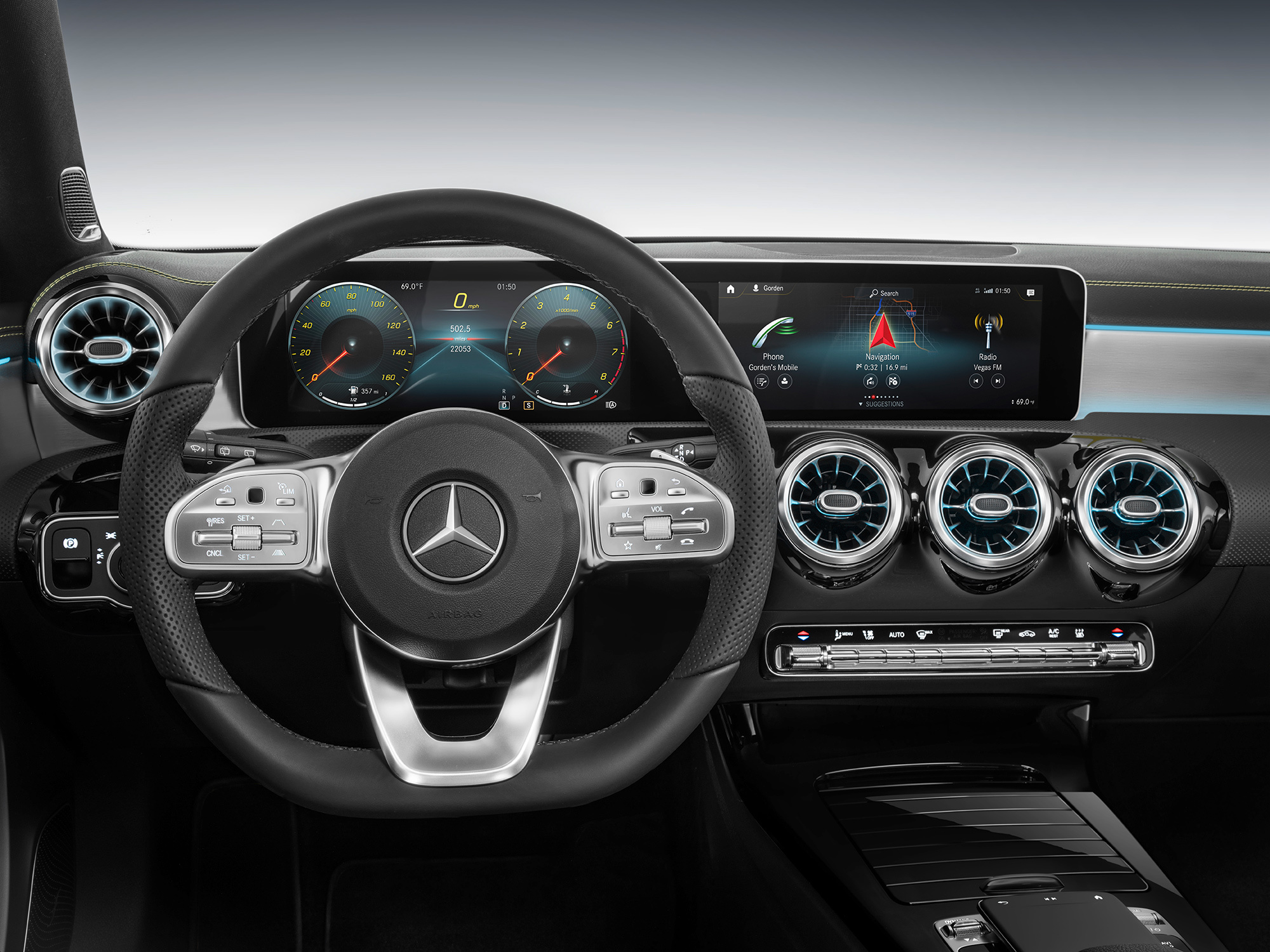Увеличилась полочка под центральной консолью, стали больше подстаканники и карманы в дверях, на 29 л вырос объём багажника, помимо спортивных сидений теперь можно заказать мультиконтурные с вентиляцией и массажем, среди опций появился проекционный экран. Но главное в интерьере — новый интерфейс мультимедийной системы. Прощай, Comand, здравствуй, Mercedes User Experience, или MBUX.