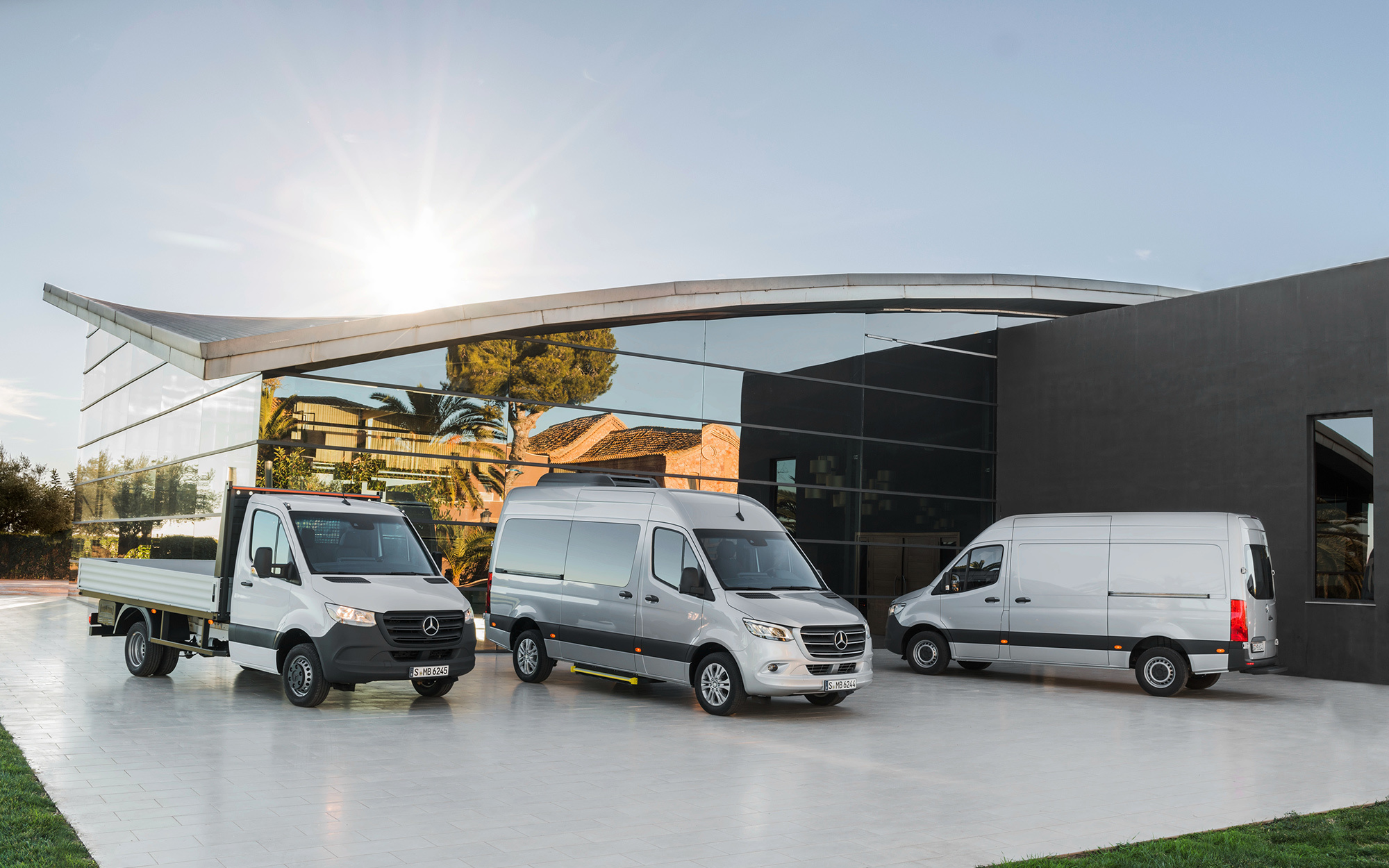 Новый Mercedes Sprinter предлагается клиентам во множестве вариациях, коих насчитывается аж 1700! В гамме есть панельный фургон, микроавтобус, пикап и голое шасси с одинарной либо двойной кабиной. Плюс три типа привода, пять вариантов увеличившийся колёсной базы (от 3250 до 4325 мм) и максимальной массой от трёх до пяти с половиной тонн. И это мы ещё не дошли до силовых агрегатов. На Спринтеры устанавливаются турбодизели с четырьмя или шестью цилиндрами, которые трудятся в паре с механическими и автоматическими коробками передач. Последние представлены двумя видами.