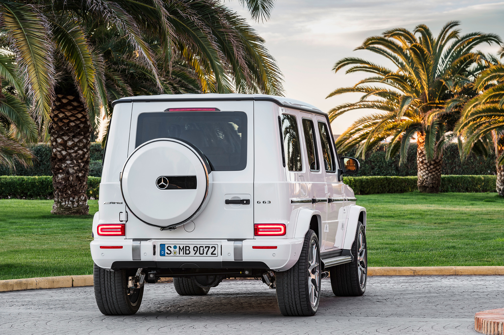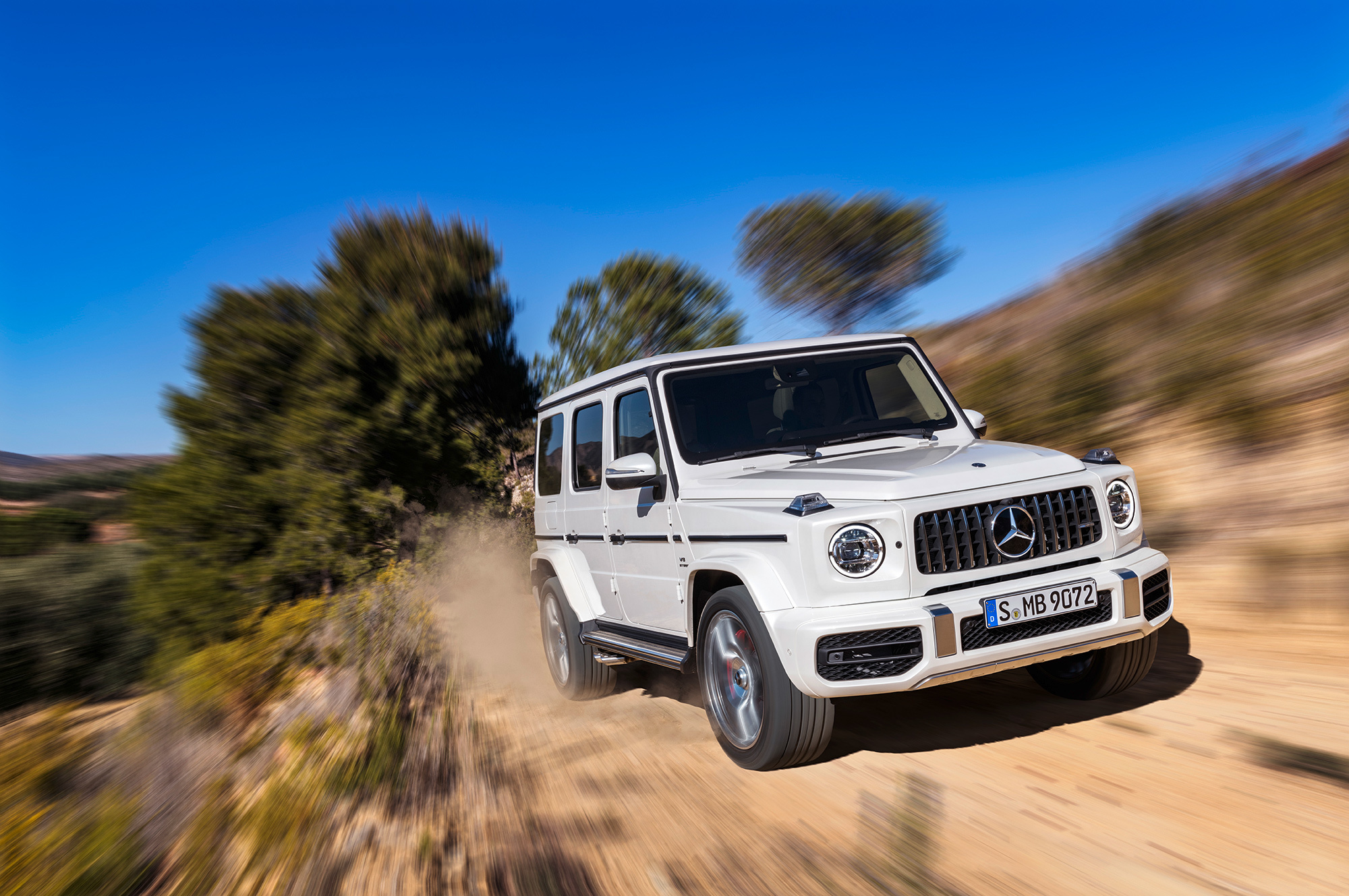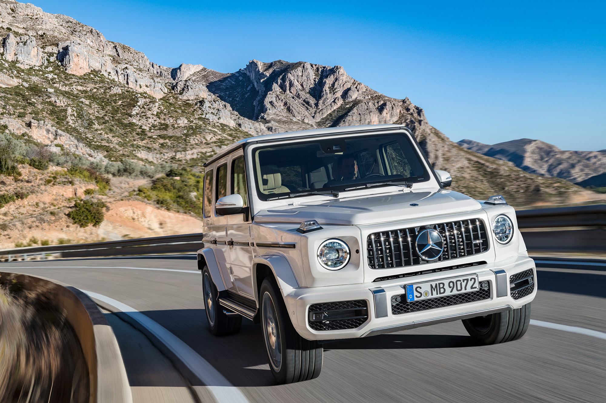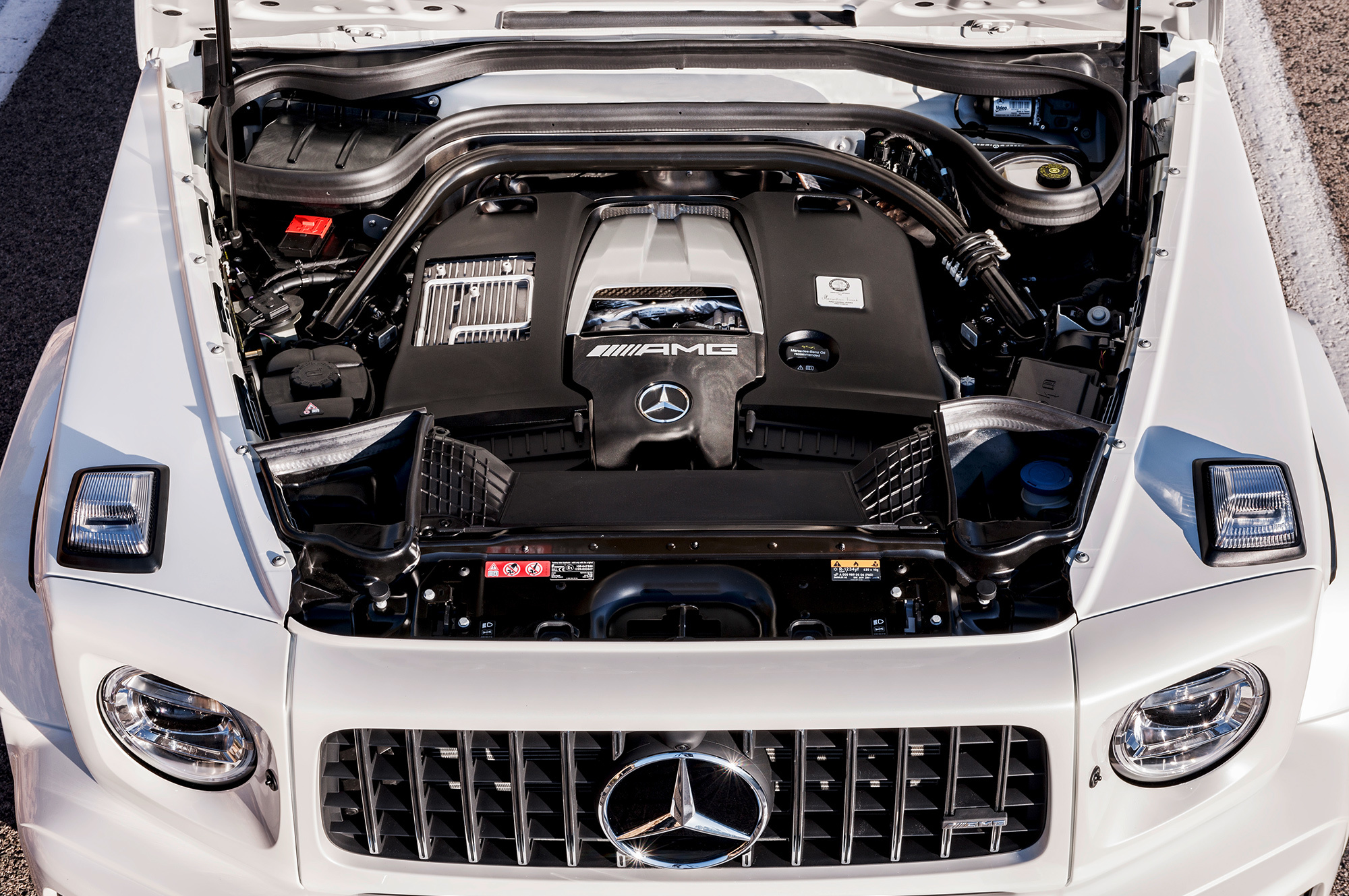 Вслед за базовой версией нового G-класса представлена «заряженная». Вместо двигателя V8 5.5 (571 л.с., 760 Н•м) «горячий» Mercedes-AMG G 63 получил «битурбовосьмёрку» 4.0. Она выдаёт 585 л.с. при 6000 об/мин, а впечатляющий максимум тяги (870 Н•м) развивает при 2500–3500 оборотов. Семиступенчатый «автомат» уступил место девятидиапазонной коробке AMG Speedshift TCT 9G. Внедорожник набирает сотню за 4,5 с и достигает предельных 220 км/ч. За счёт пакета опций электронный ошейник можно ослабить, чтобы разогнаться до 240 км/ч. Полный привод AMG Performance 4Matic и адаптивные амортизаторы AMG Ride Control идут «в базе».
