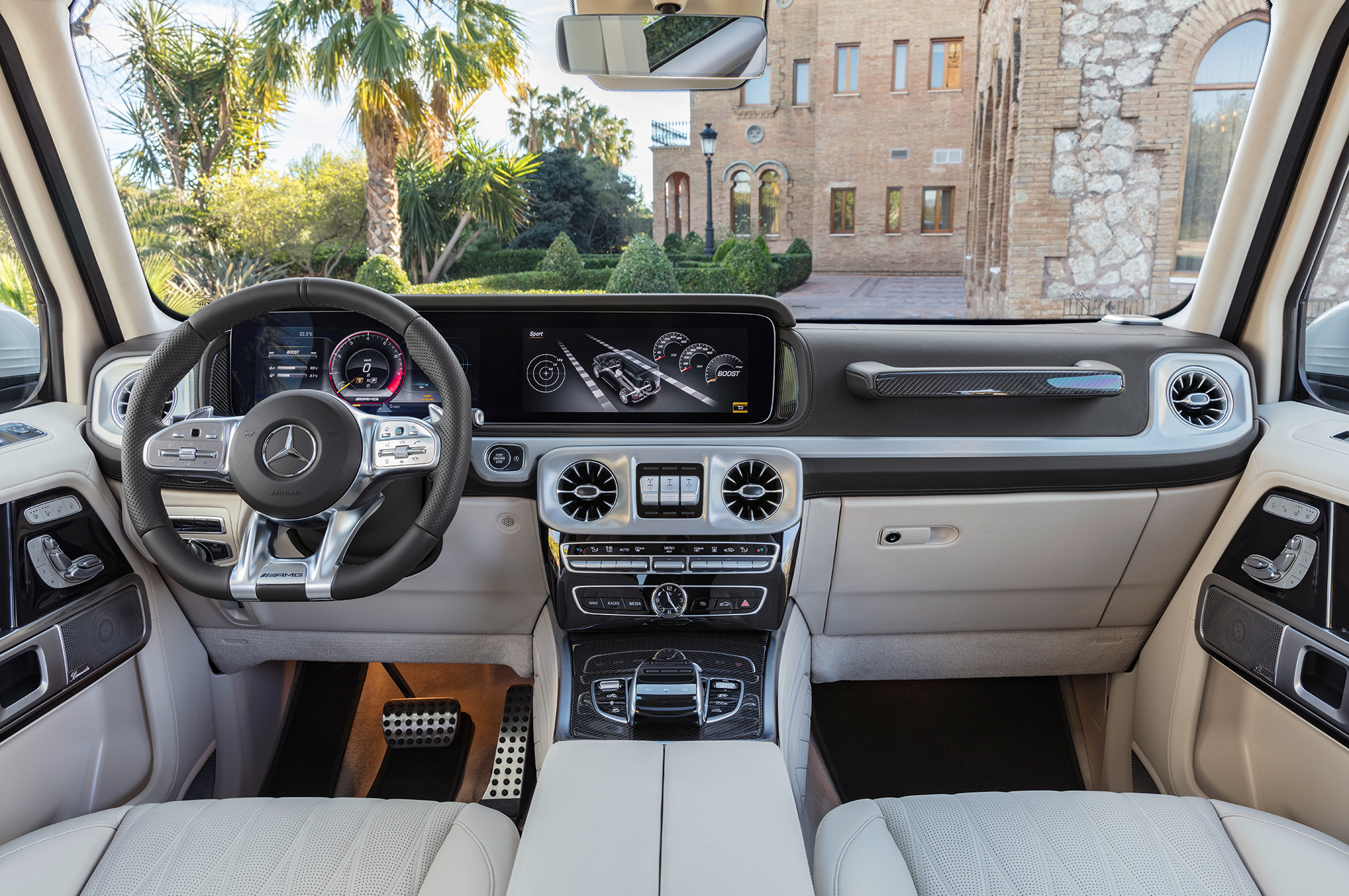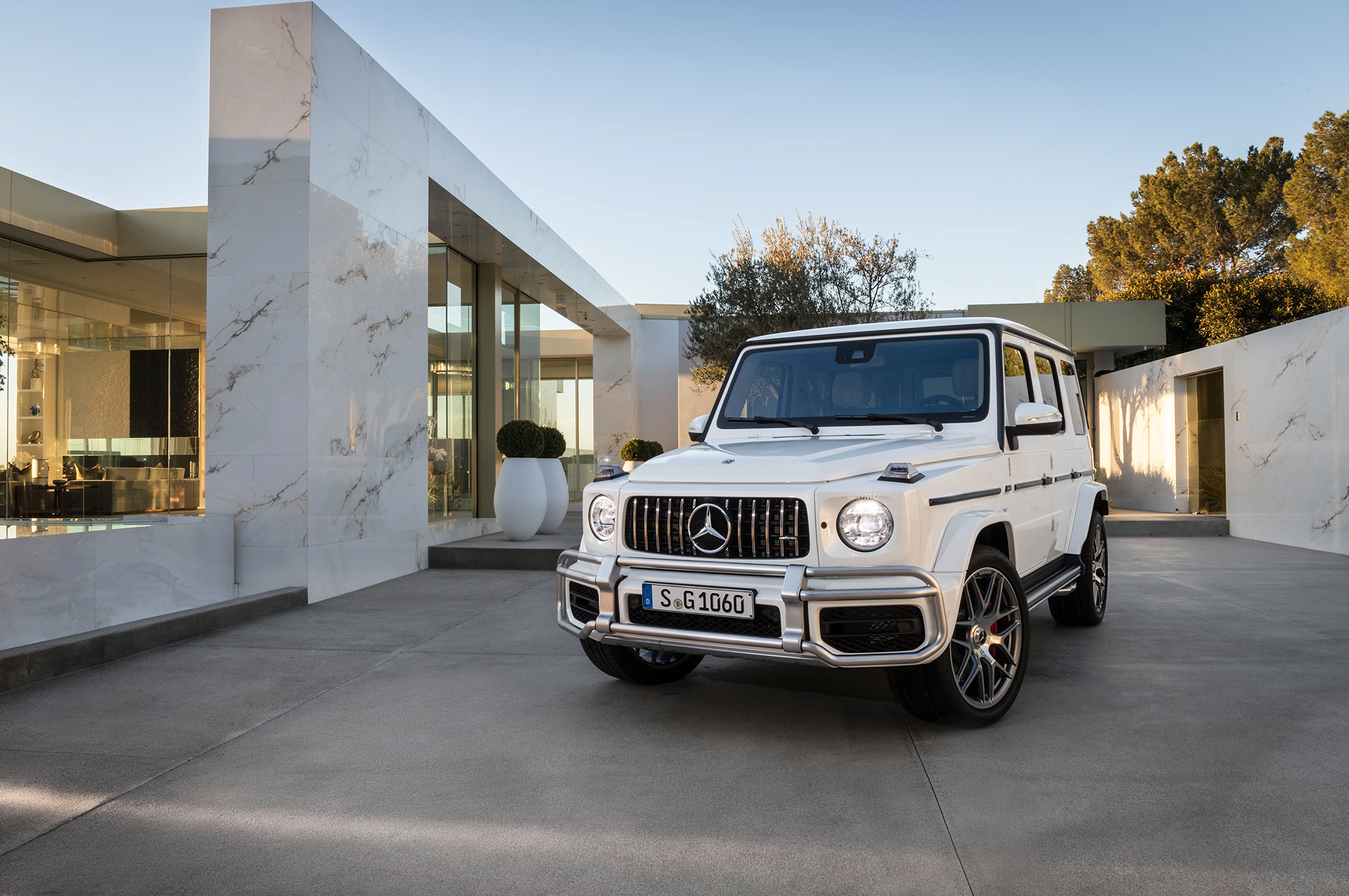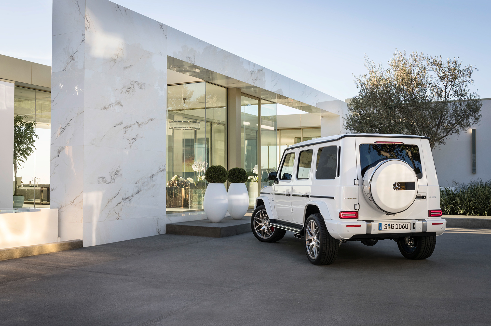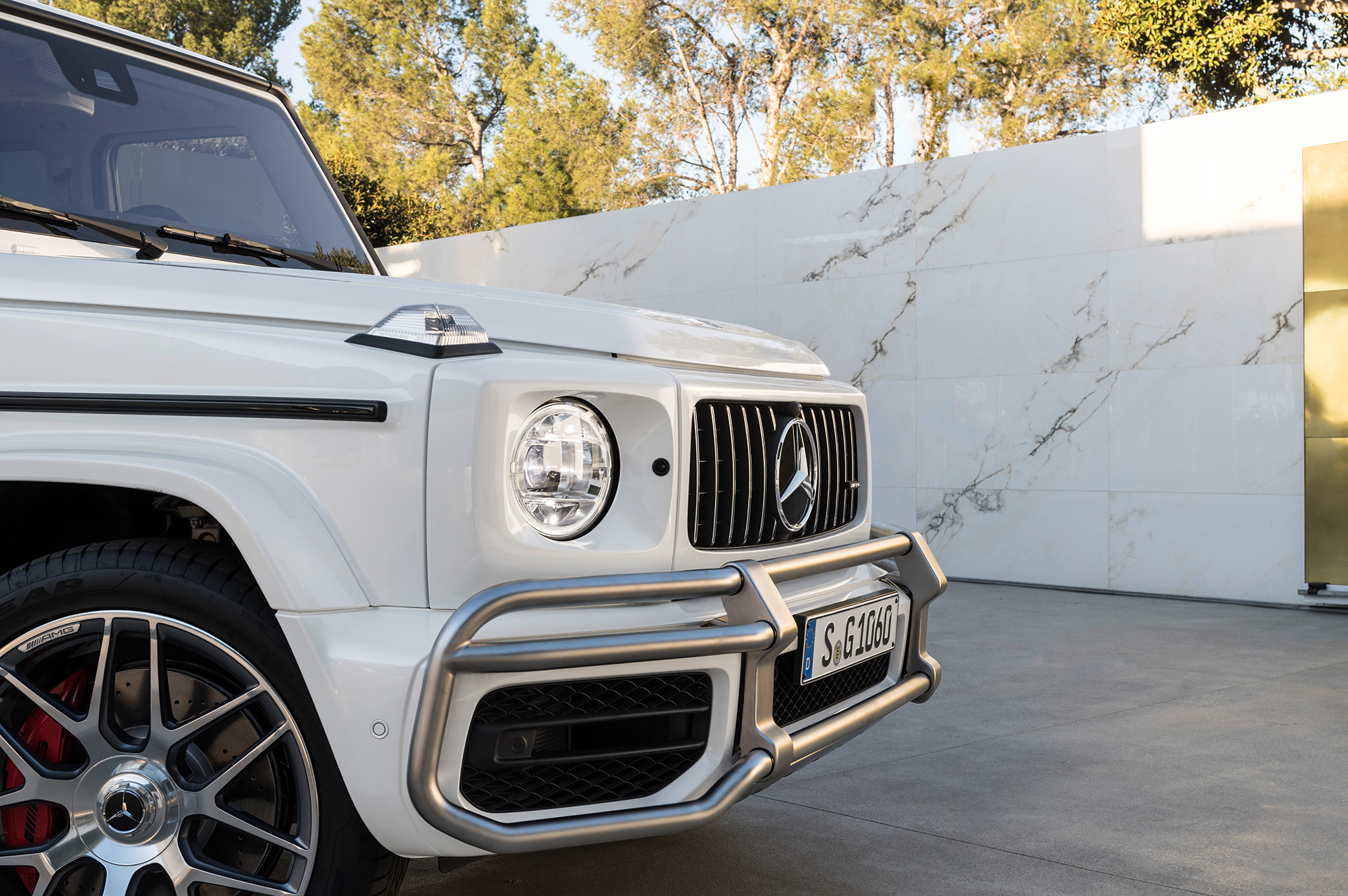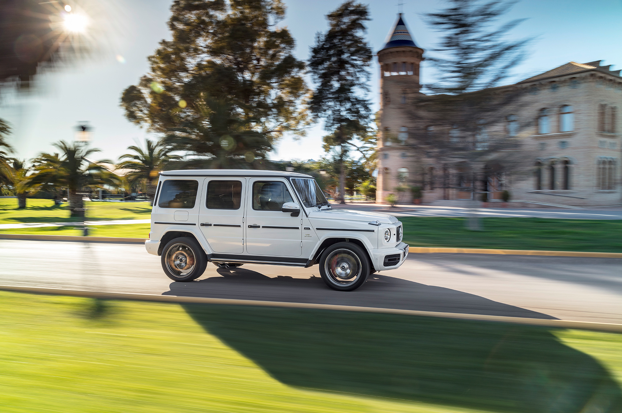 Вслед за базовой версией нового G-класса представлена «заряженная». Вместо двигателя V8 5.5 (571 л.с., 760 Н•м) «горячий» Mercedes-AMG G 63 получил «битурбовосьмёрку» 4.0. Она выдаёт 585 л.с. при 6000 об/мин, а впечатляющий максимум тяги (870 Н•м) развивает при 2500–3500 оборотов. Семиступенчатый «автомат» уступил место девятидиапазонной коробке AMG Speedshift TCT 9G. Внедорожник набирает сотню за 4,5 с и достигает предельных 220 км/ч. За счёт пакета опций электронный ошейник можно ослабить, чтобы разогнаться до 240 км/ч. Полный привод AMG Performance 4Matic и адаптивные амортизаторы AMG Ride Control идут «в базе».