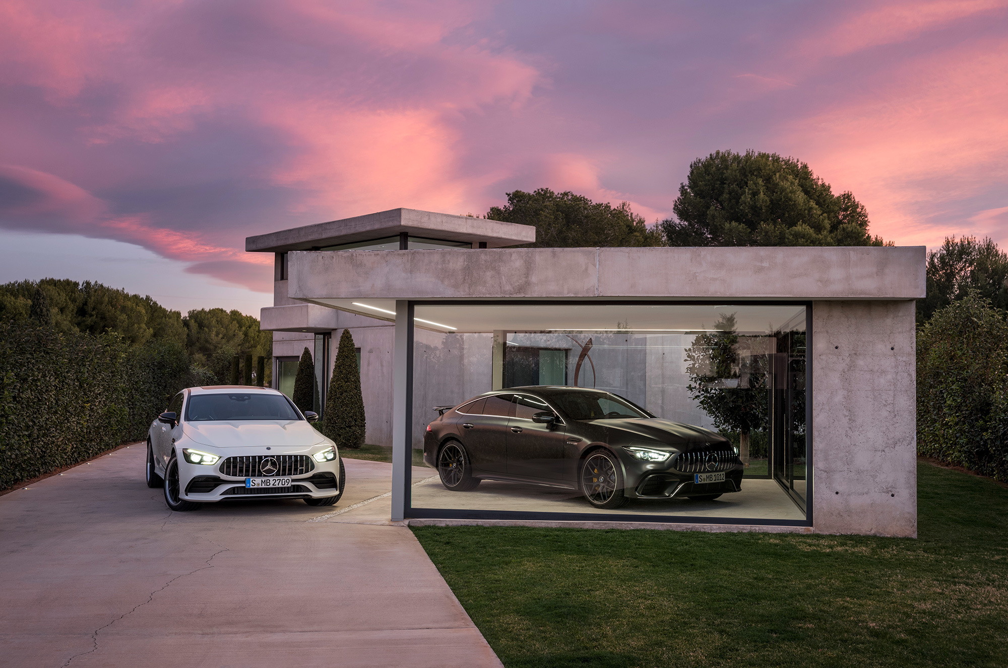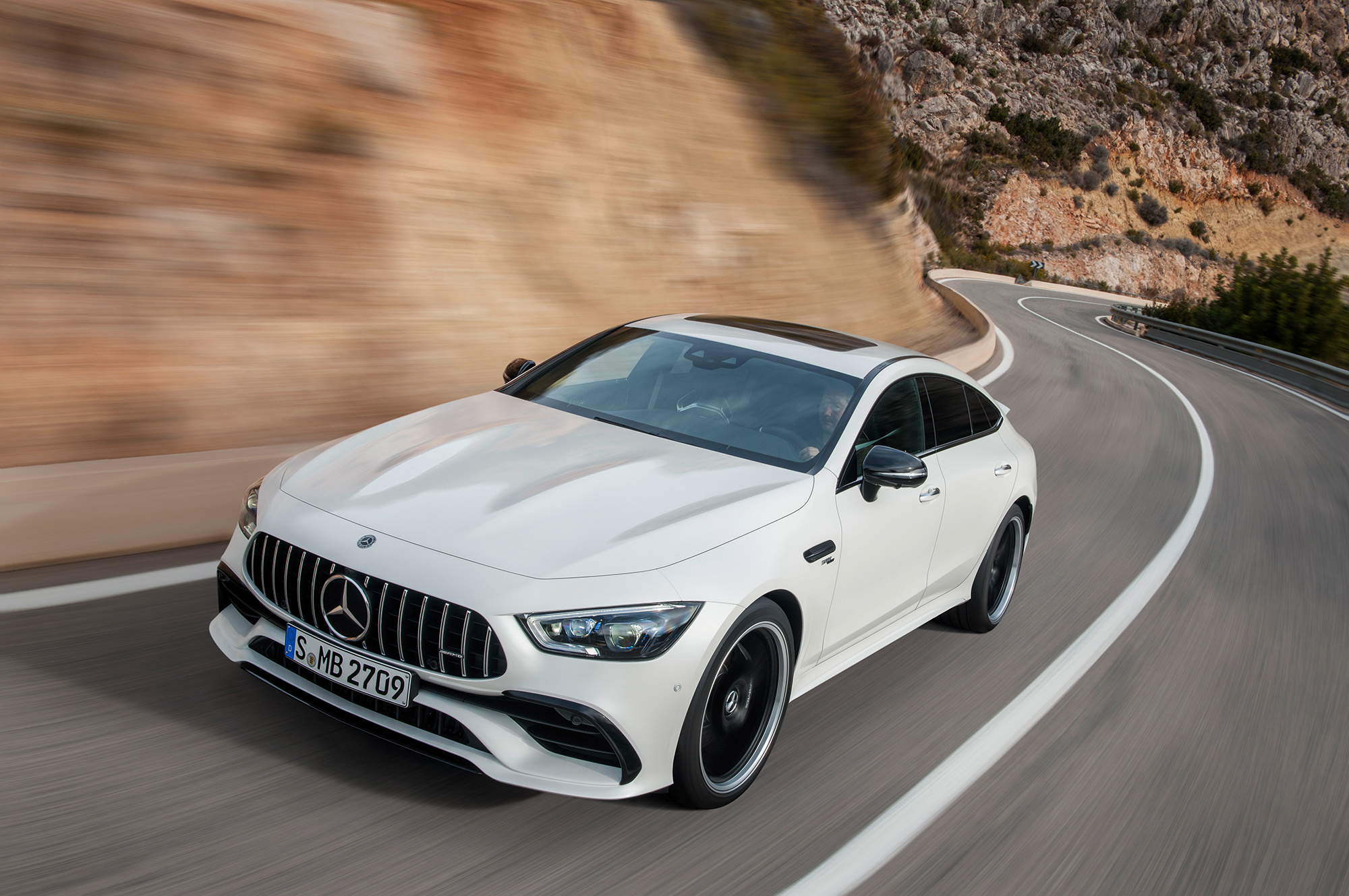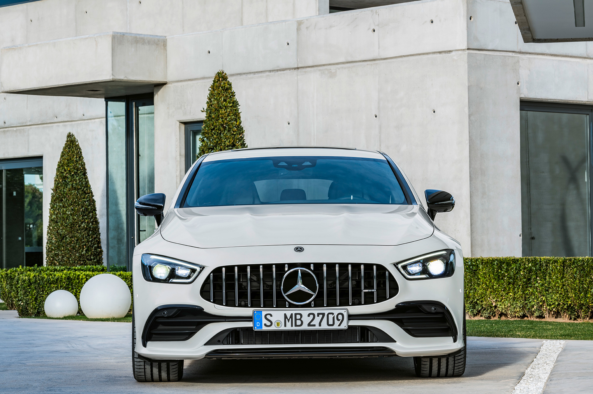 Если у чистокровного спорткара AMG GT различные модификации обозначаются буквами (S, C, R), то у семейной модели индексы цифровые. Базовое исполнение ― Mercedes-AMG GT 53. Ему достался рядный шестицилиндровый турбомотор 3.0, выдающий 435 л.с. и 520 Н•м. Но «пятьдесят третий» представляет собой так называемый мягкий гибрид: на разгоне хэтчу снаряжённой массой 1970 кг помогает стартер-генератор, развивающий 22 л.с. и 250 ньютон-метров и работающий от 48-вольтовой сети. Ускорение до сотни занимает 4,5 с, максимальная скорость достигает 285 км/ч. Коробка передач ― традиционный девятиступенчатый «автомат» AMG Speedshift TCT 9G, привод ― подключаемый полный с многодисковой муфтой на передке.