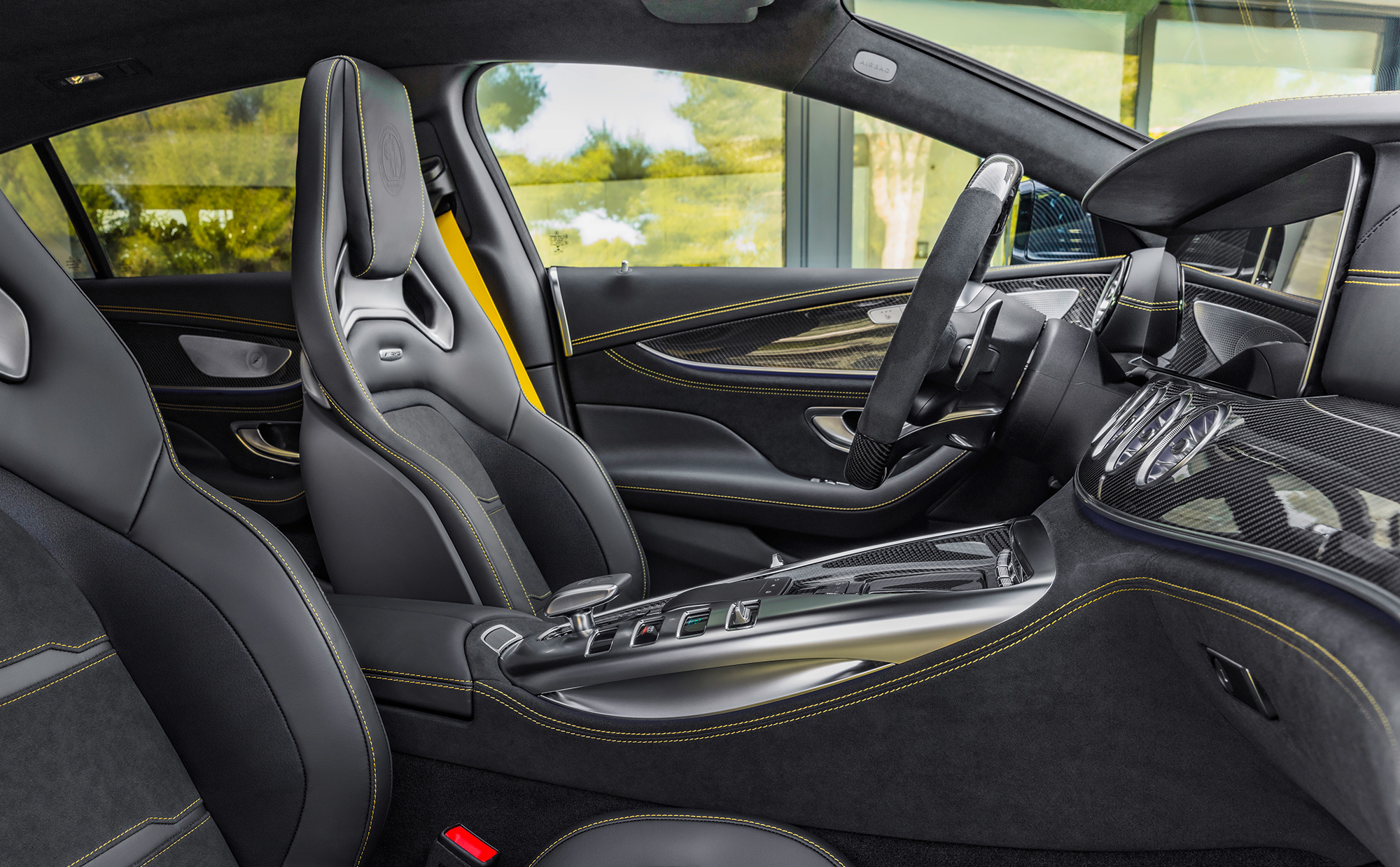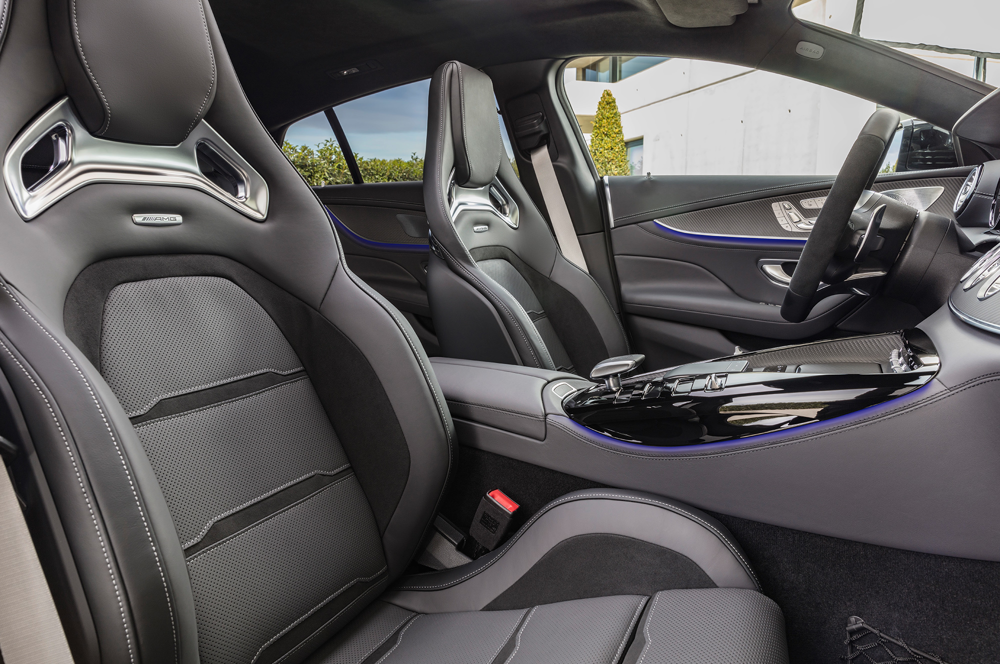 Стальными пружинами комплектуется только Mercedes-AMG GT 53, а восьмицилиндровые машины по умолчанию оснащены пневмоподвеской. Зато при покупке базовой модификации не нужно доплачивать за адаптивные амортизаторы, как и на хэтчбеках с V8. Также на «пятьдесят третий» можно заказать трансмиссию с дрифт-режимом, самоблокирующийся дифференциал с электронным управлением, полноуправляемое шасси (стандартное оборудование для 63 и 63 S) и углеродокерамические тормоза с золотистыми шестипоршневыми моноблочными суппортами на передней оси. В общем, почти никакой дискриминации между начальной машиной и вариантами подороже.