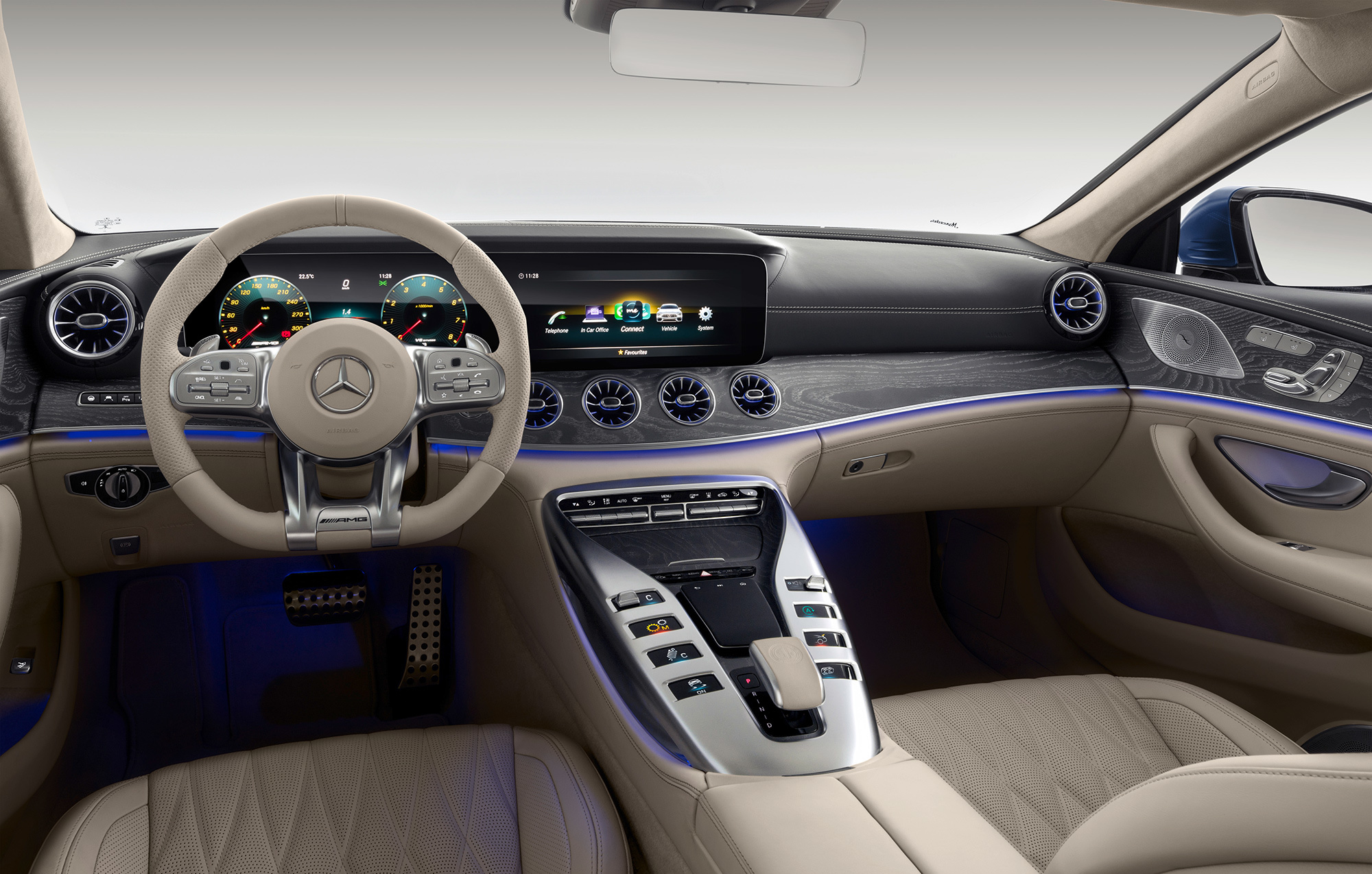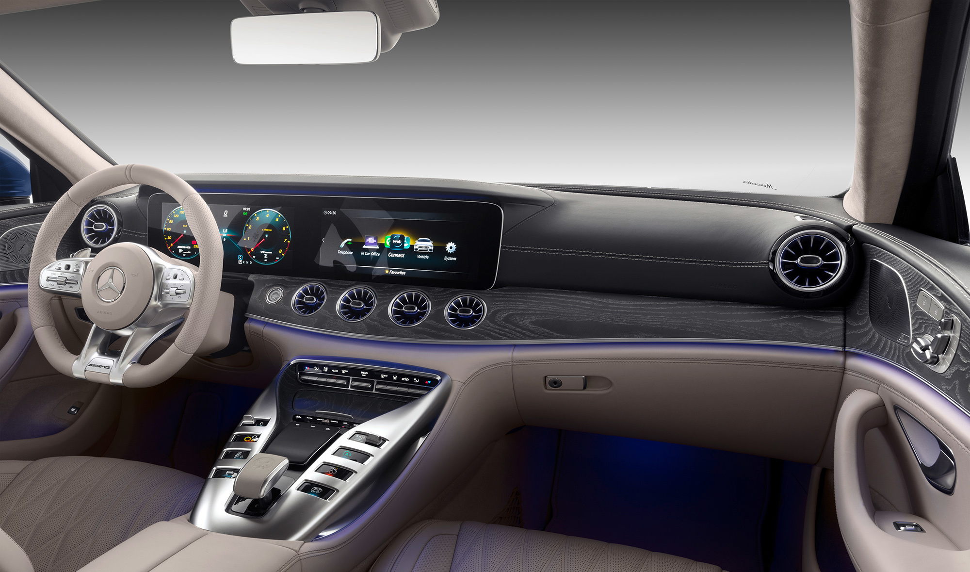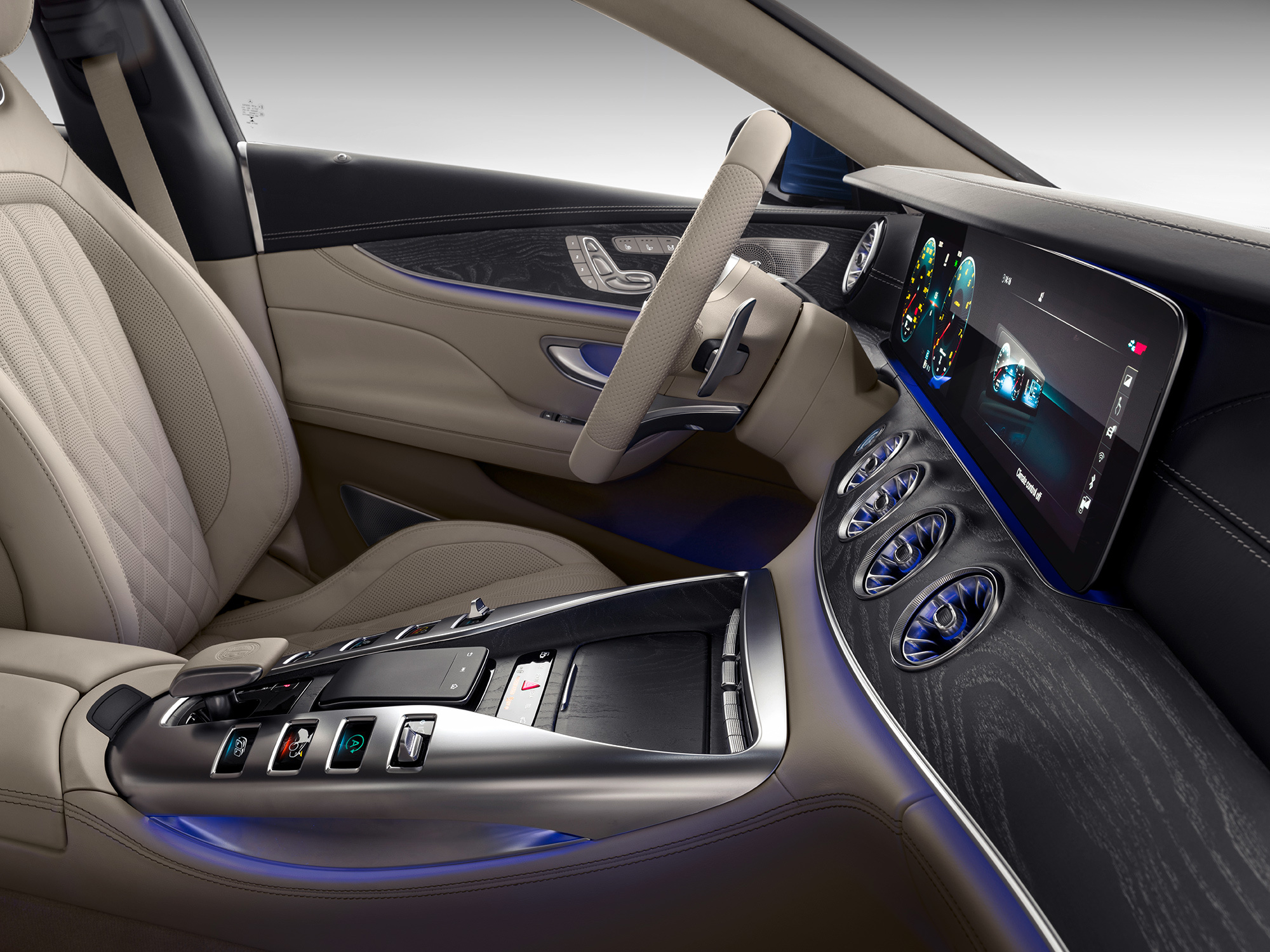 Теперь в мерседесовской гамме есть две модели Mercedes-AMG GT. Обе очень мощные, быстрые, и изначально над ними работали спецы AMG-отделения. На этом сходство и заканчивается. Ведь одна из них ― потрясающий двухместный спорткар, построенный на платформе купе SLS AMG по схеме transaxle. А вторая ― пятидверный хэтчбек с четырёх- или пятиместным салоном, складывающимся задним диваном и довольно вместительным багажником. Построен автомобиль на модульной «тележке» MRA, на которой базируется новый Mercedes CLS, но в отличие от него у дебютанта Женевского автосалона не будет маломощных и заднеприводных версий.