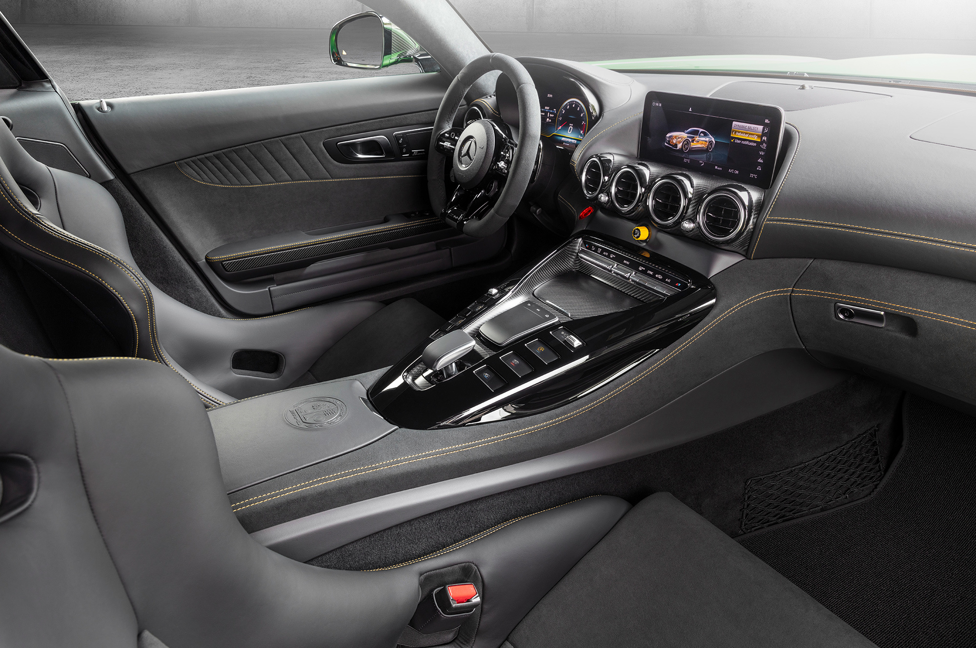 Позаботились конструкторы о снижении массы (хотя сумма экономии не названа). Её обеспечили и новые компоненты кузова из углеволокна, и облегчённая «керамическая» тормозная система, и каркас сидений из углепластика (кроме США, Канады и Китая, где сохранятся стандартные кресла AMG Performance). Помимо того, на купе Pro установлены новые кованые колёсные диски с пятью двойными спицами, титаново-серой окраской и полированным ободом. А заднее антикрыло получило новые опоры из фрезерованного алюминия.