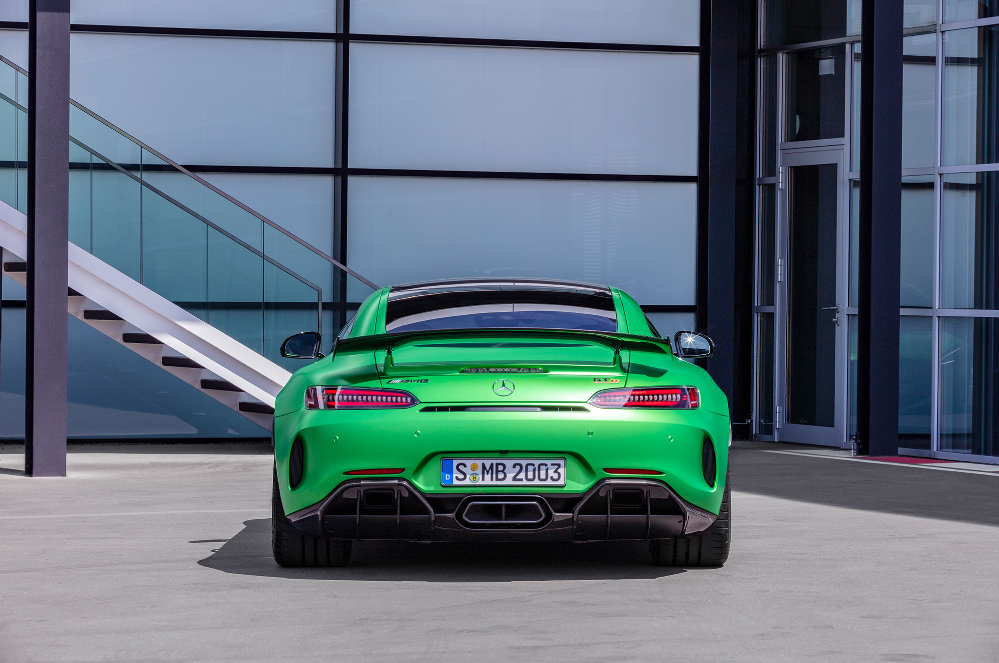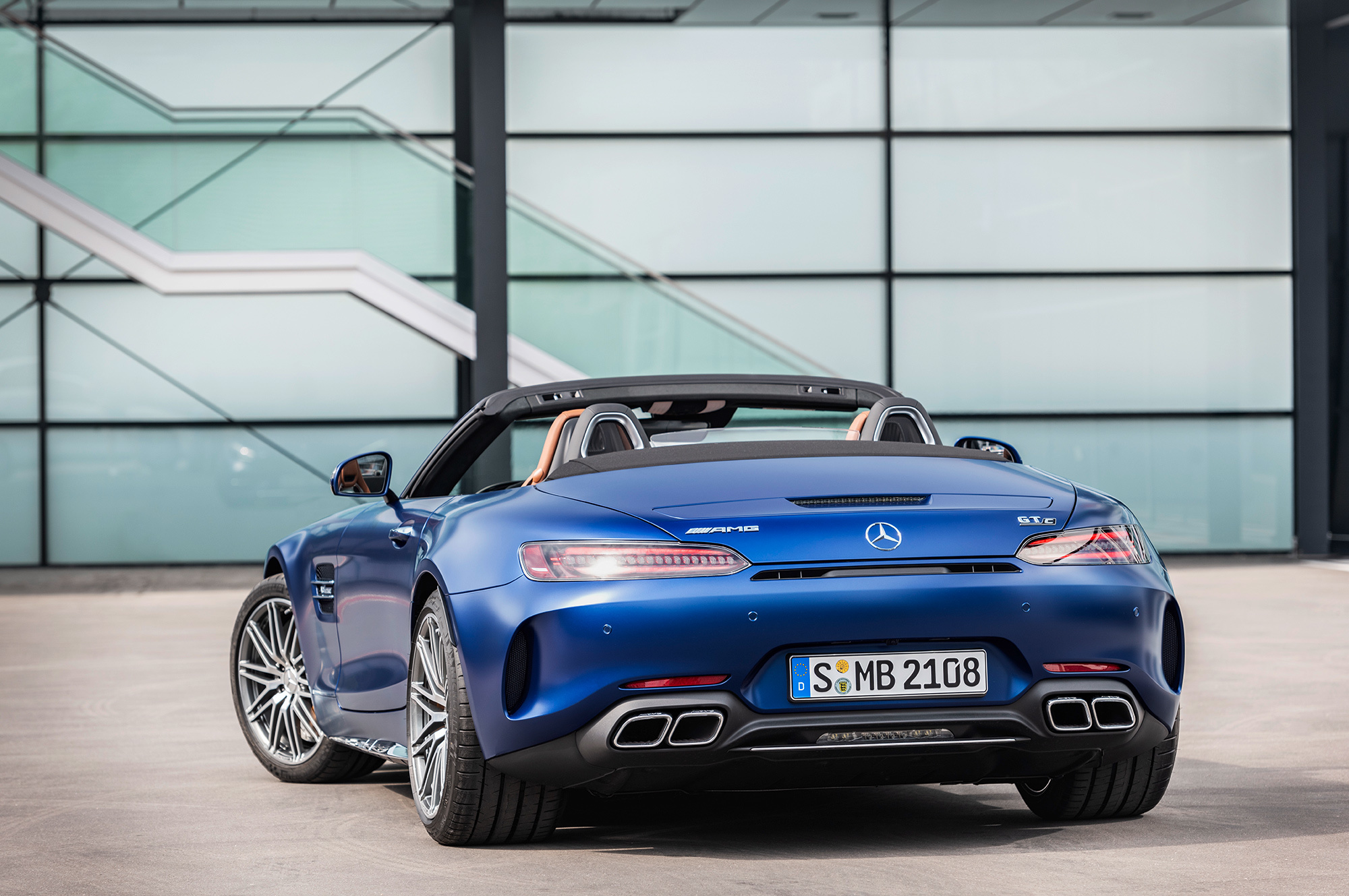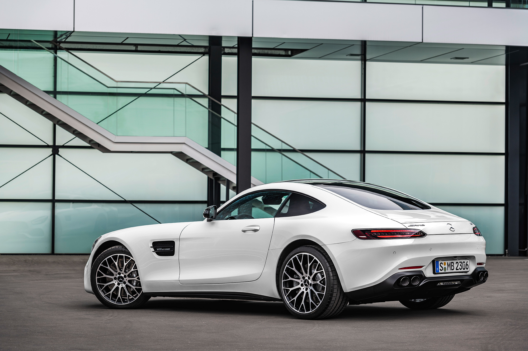 Помимо скорректированной оптики у AMG GT, AMG GT S и AMG GT C оказался изменён задний бампер. Помимо того, у GT теперь четвёрка круглых выхлопных патрубков, у GT S и GT C они сдвоенные трапециевидные, а вот версия GT R сохранила прежний дизайн и выхлопа, и бампера. Ещё одно внешнее изменение: чёрный порог на модификациях GT и GT S. Также для AMG GT дизайнеры придумали новые опциональные колёсные диски и добавили ещё один колер для кузова (Brilliant Blue Magno).