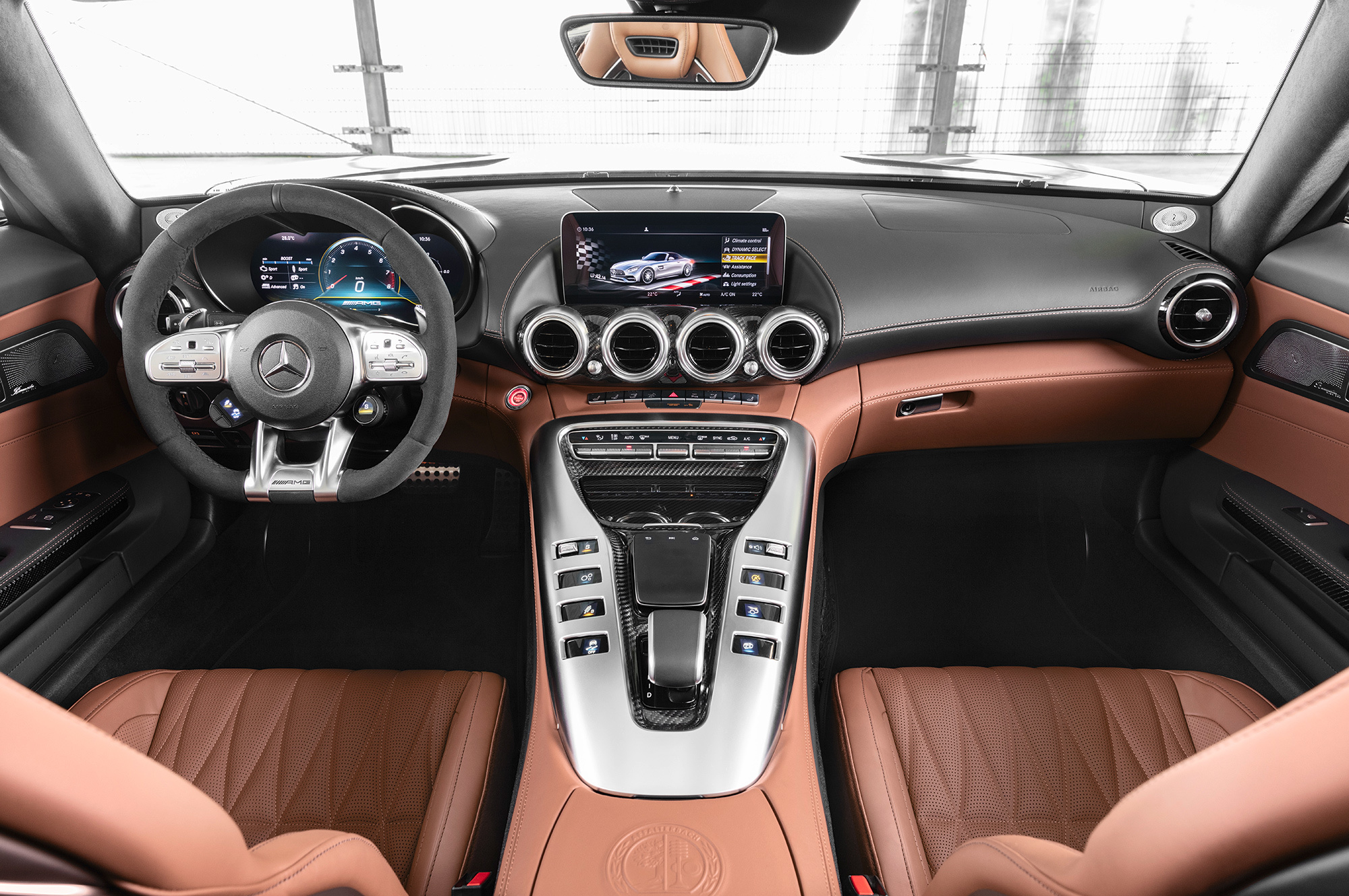 В ходе обновления всего семейства были добавлены опции, например, «парковочный пакет», совмещающий ассистент Parktronic c задней и передней камерами, а ещё новые сочетания цветов отделки в интерьере. С мультимедийной системой Comand Online в комплекте идёт бортовой регистратор AMG Track Pace. Купе и родстеры обзавелись функцией AMG Dynamics как частью селектора режимов AMG Dynamic Select (режимы Slippery, Comfort, Sport, Sport Plus, RACE и Individual). Переключатель AMG Dynamics влияет на настройки системы стабилизации и обладает позициями Basic, Advanced, Pro и Master (последний только в GT C, GT S и GT R).