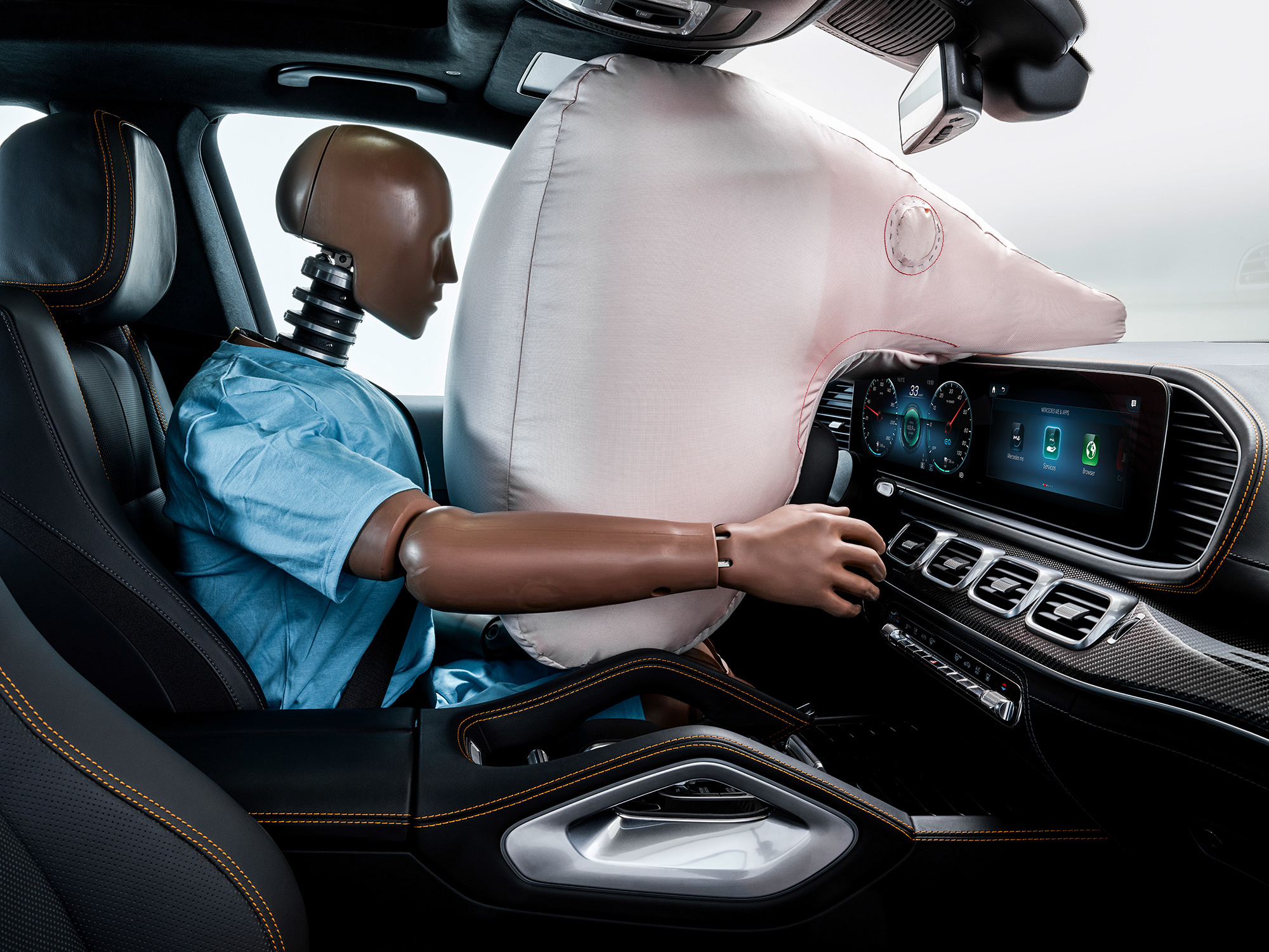 Для задних пассажиров придумана новая подушка с цилиндрическими секциями, которые быстро надуваются сжатым газом и образуют каркас почти как у палатки. А чтобы задние седоки пристёгивались, Mercedes предусмотрел подогрев ремней, более совершенные механизмы их подачи, подсветку замка и USB-пряжку.