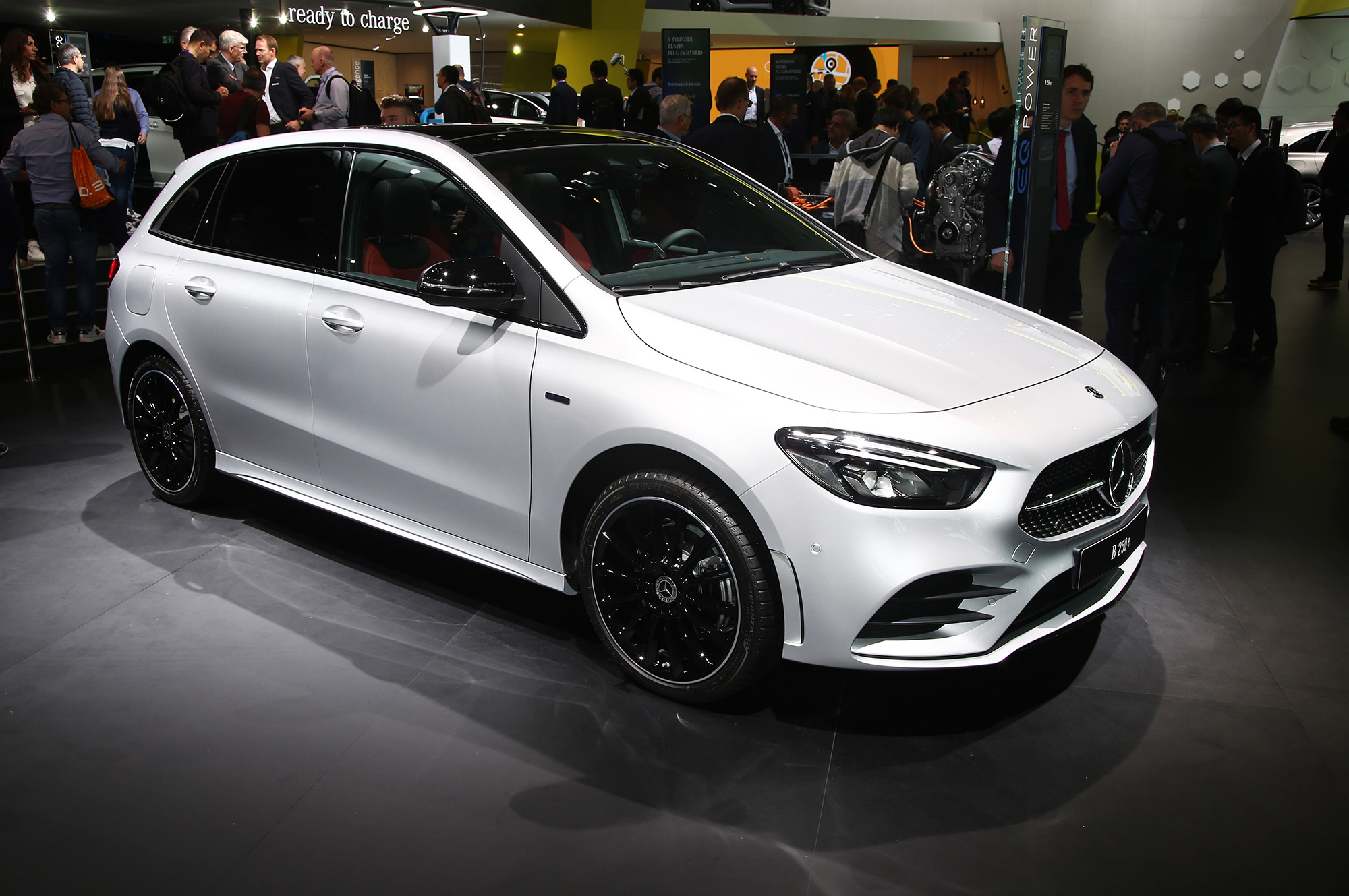 Установка EQ Power, делающая из ДВС-машин подключаемые к розетке гибриды, одновременно добралась до семейства A-класса и компактвэна B-класса. Новая версия 250 e означает бензиновую турбочетвёрку 1.3 (160 л.с., 250 Н•м), электромотор на 75 кВт (102 л.с., 300 Н•м), встроенный в восьмидиапазонный «робот» 8F-DCT с двумя сцеплениями, и батарею ёмкостью 15,6 кВт•ч. В сумме получается 218 л.с., 450 Н•м и запас хода на электротяге в 70–77 км по циклу NEDC.