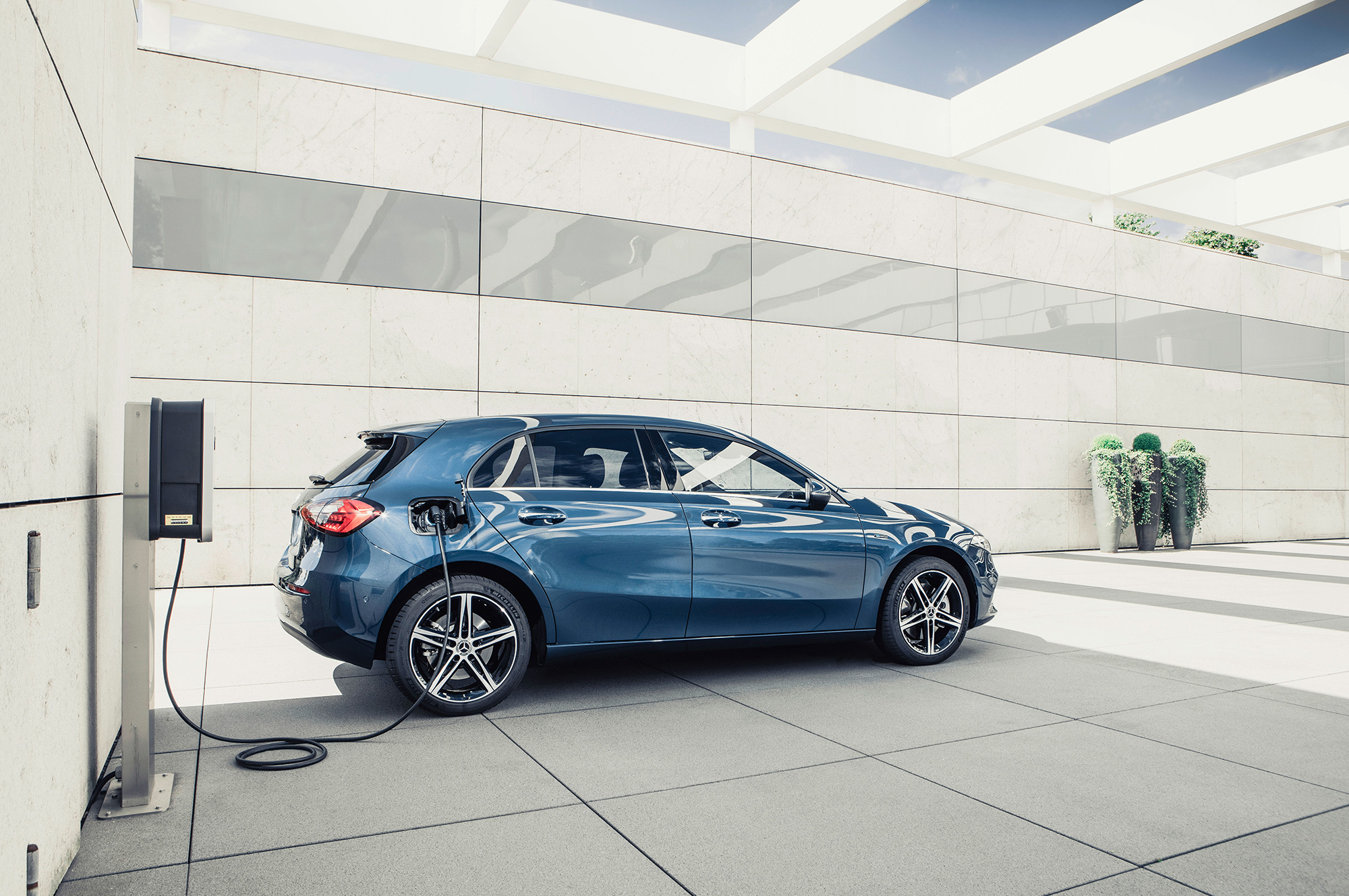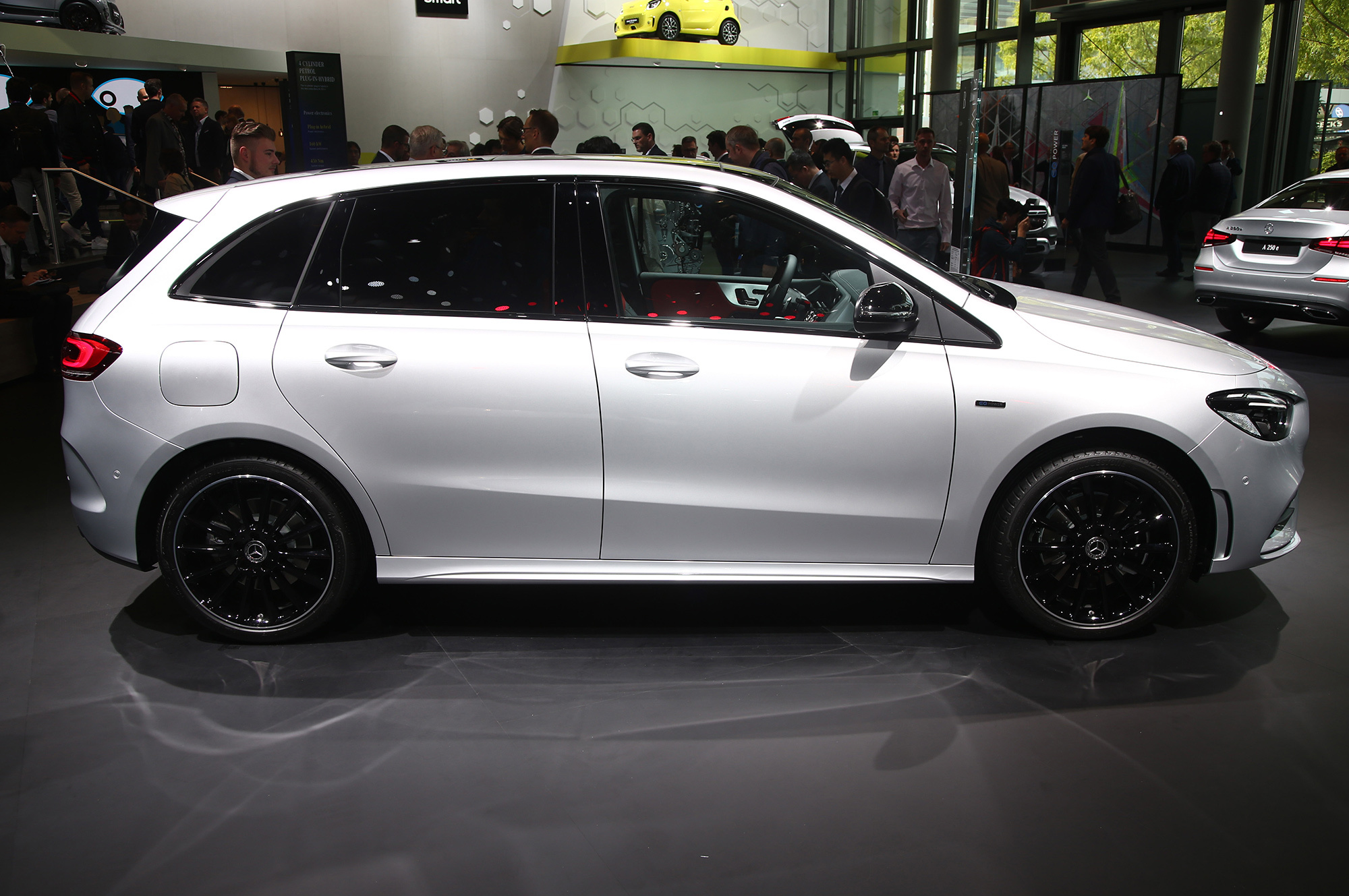 Установка EQ Power, делающая из ДВС-машин подключаемые к розетке гибриды, одновременно добралась до семейства A-класса и компактвэна B-класса. Новая версия 250 e означает бензиновую турбочетвёрку 1.3 (160 л.с., 250 Н•м), электромотор на 75 кВт (102 л.с., 300 Н•м), встроенный в восьмидиапазонный «робот» 8F-DCT с двумя сцеплениями, и батарею ёмкостью 15,6 кВт•ч. В сумме получается 218 л.с., 450 Н•м и запас хода на электротяге в 70–77 км по циклу NEDC.