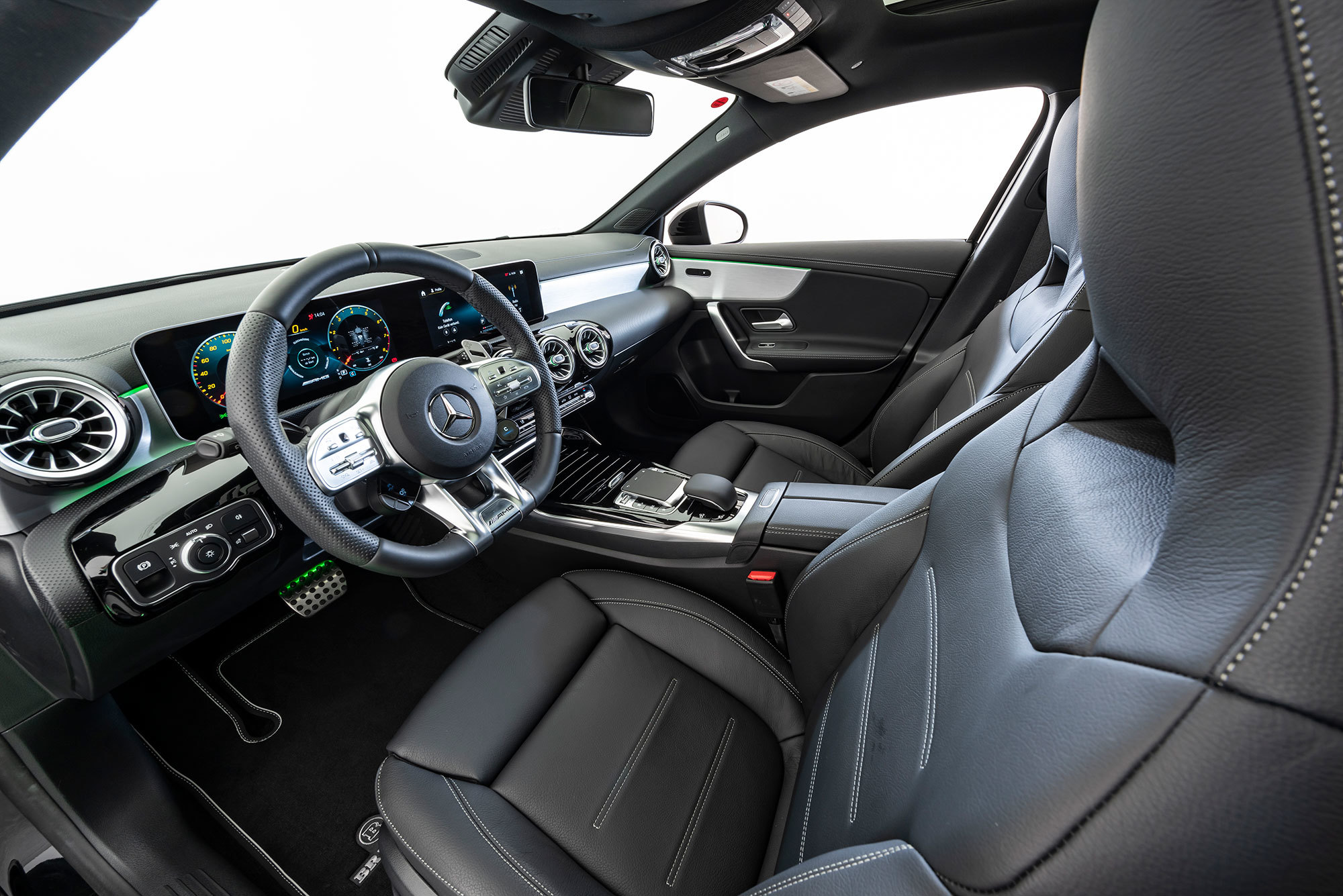 В программу семиступенчатого «робота» AMG SpeedShift спецы из Боттропа не вмешивались, но поставили свои подрулевые переключатели Brabus Race, покрытые алюминием. Про обвес сказано мало. Двухсекционный сплиттер крепится на заводской передний бампер, новое антикрыло на крыше заменяет собой задний спойлер. Проект B35S будет «живьём» представлен публике 10 сентября на мотор-шоу во Франкфурте. Заметим, в России вариант A 35 не продаётся, а в Германии он «начинается» с 47 796 евро (3,52 млн рублей).