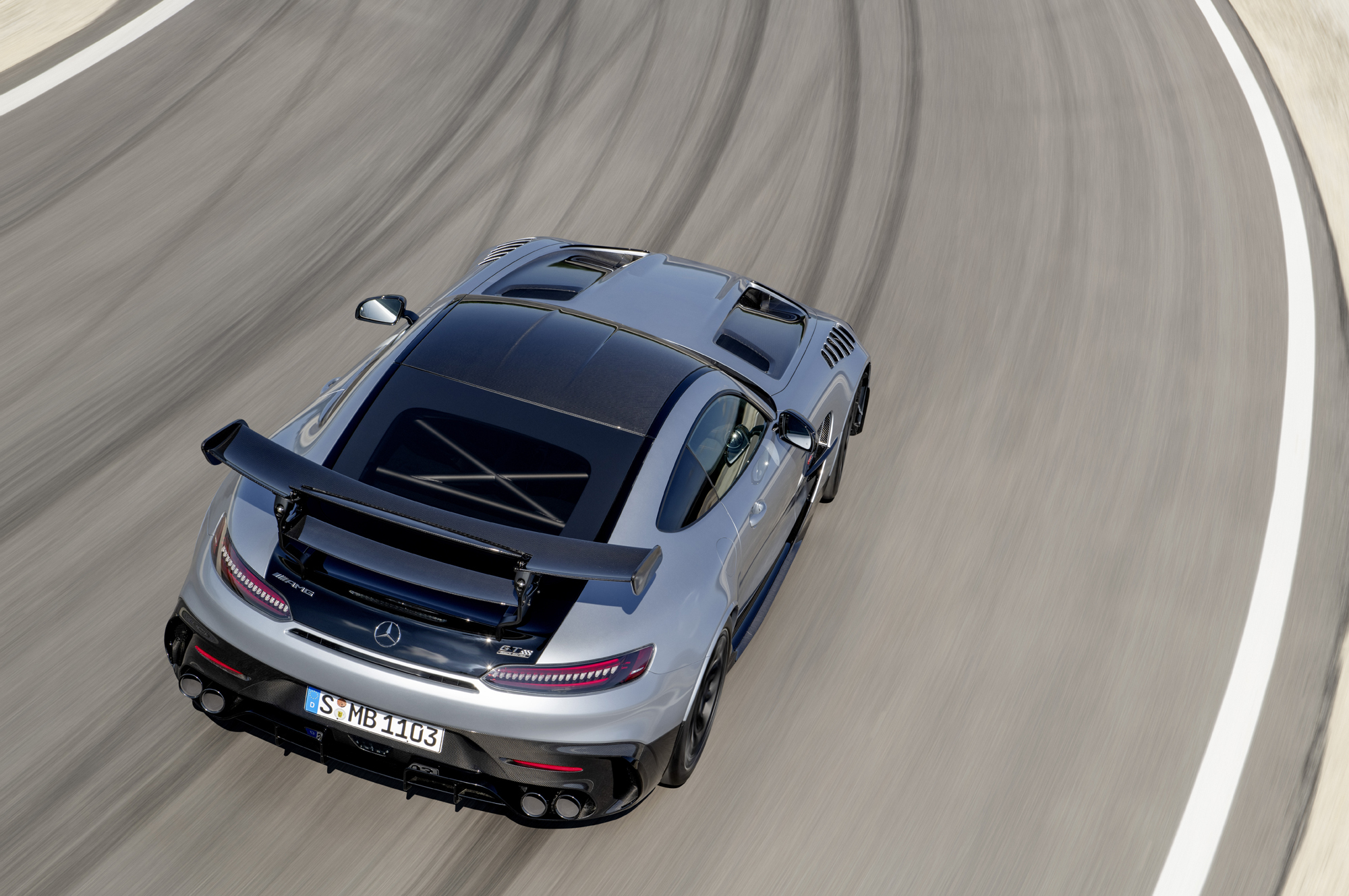 У семиступенчатого «робота» AMG Speedshift DCT 7G изменена программа работы, переключения сделаны более быстрыми, и он адаптирован под возросший крутящий момент. Силовая труба, соединяющая мотор и коробку передач, в Black Series углепластиковая вместо алюминиевой, как на обычных AMG GT. Она весит всего 13,9 кг, примерно на 40% меньше исходной. Углепластик наличествует и в карданном валу.
