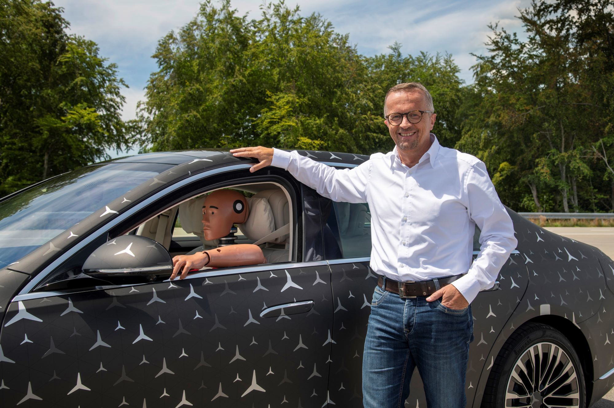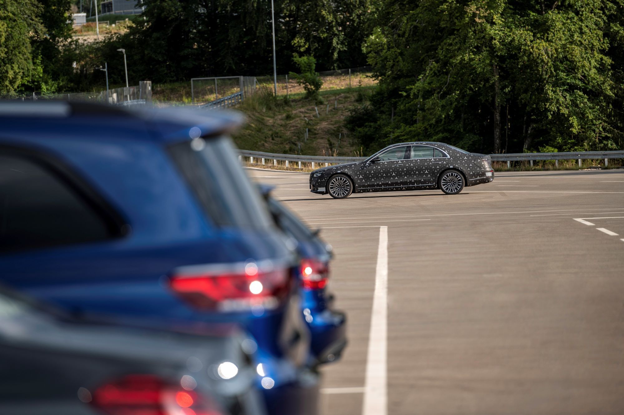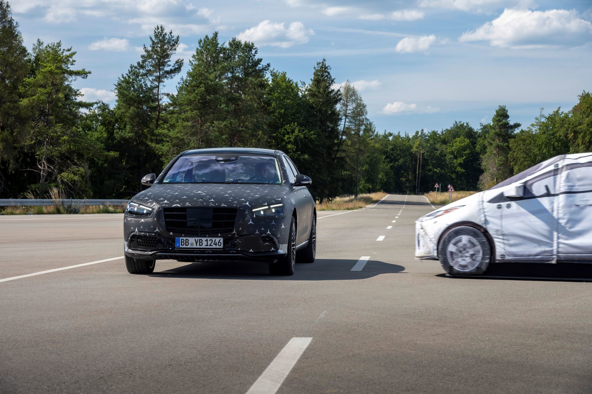 Как и внедорожники Mercedes GLE и GLS, «эска» обзаведётся активной гидропневматической подвеской E-Active Body Control, работающей от 48-вольтовой бортовой сети. Она способна контролировать степень упругости пружин и сопротивление амортизаторов на каждом колесе по отдельности, потому лучше противостоит неровностям, кренам и клевкам, а также может приподнять кузов перед боковым ударом (привет, A8!). А вот реальная инновация в индустрии — фронтальные подушки безопасности для пассажиров второго ряда, зашитые в спинки передних кресел. Плюс для «эски» подготовят ещё и эйрбэг между сиденьями первого ряда, не дающий седокам удариться головами.