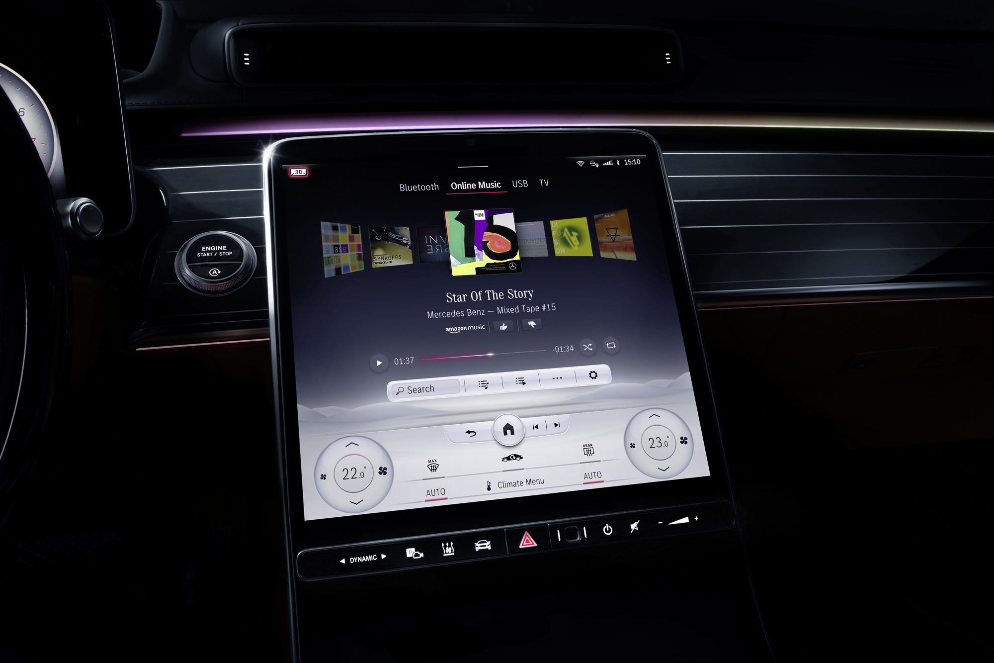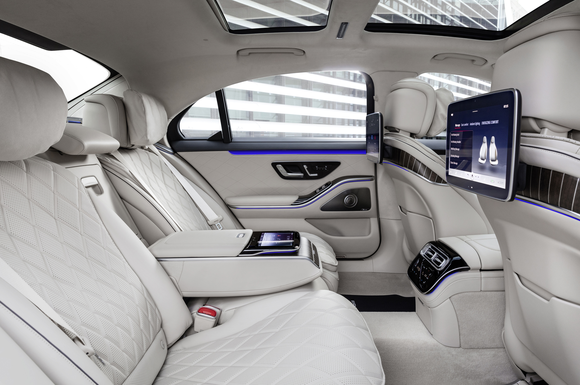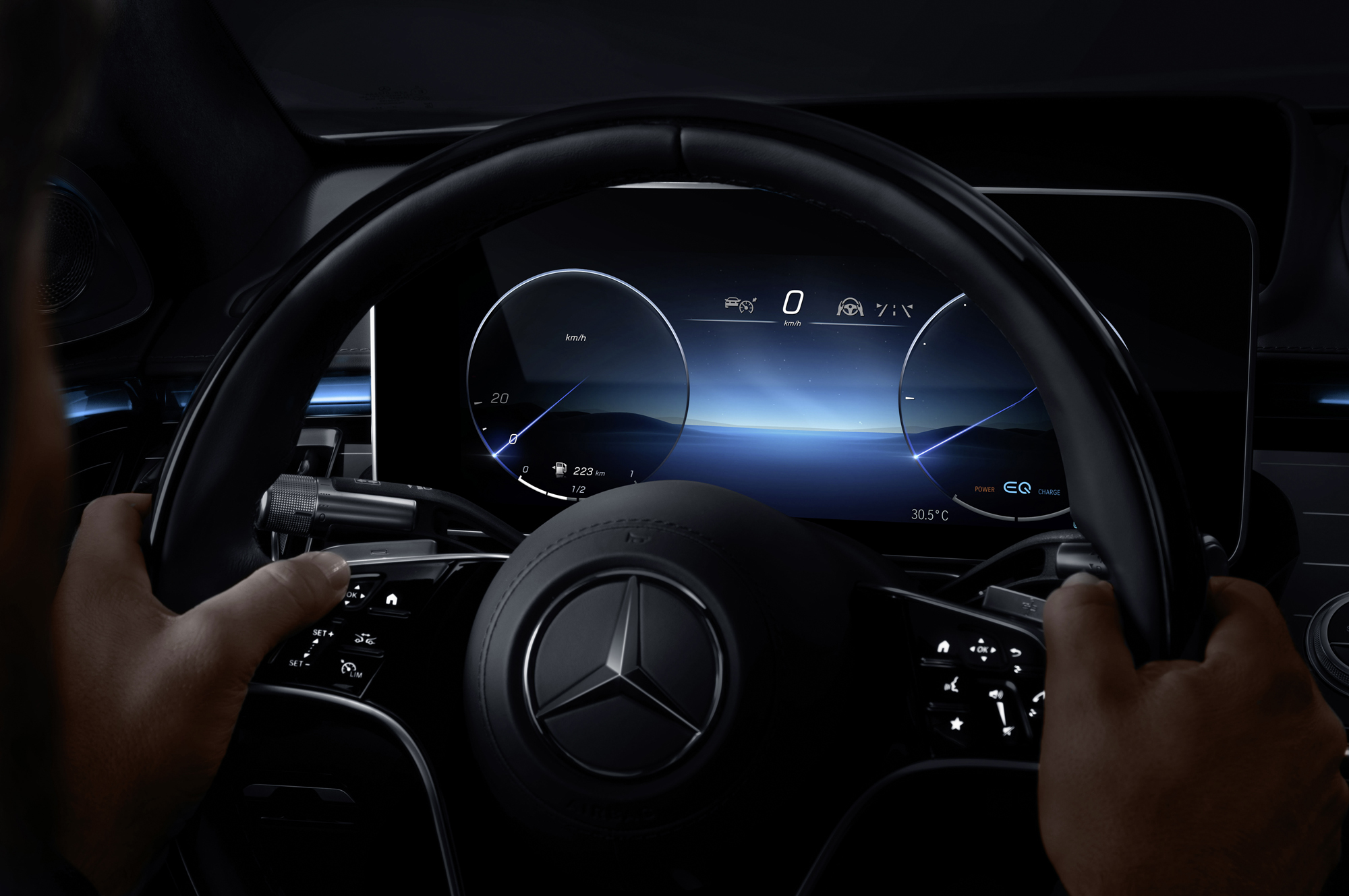 Интерфейс MBUX нового поколения обладает большими, чем прежде, возможностями по персонализации настроек. Он распознаёт хозяина по лицу, голосу и отпечатку пальца, беседует с ним. При этом ему доступны жесты и движения не только водителя, но и пассажиров. Седан может принимать данные с фитнес-браслета владельца и учитывать качество сна для подбора настроек систем комфорта. Обладателю S-класса не нужно подгонять кресла, зеркала и руль под себя: следует сообщить цифровому ассистенту свой рост, а машина установит оптимальные параметры. Всё направлено на удобство использования автомобиля, на превращение его в интеллектуального заботливого компаньона.