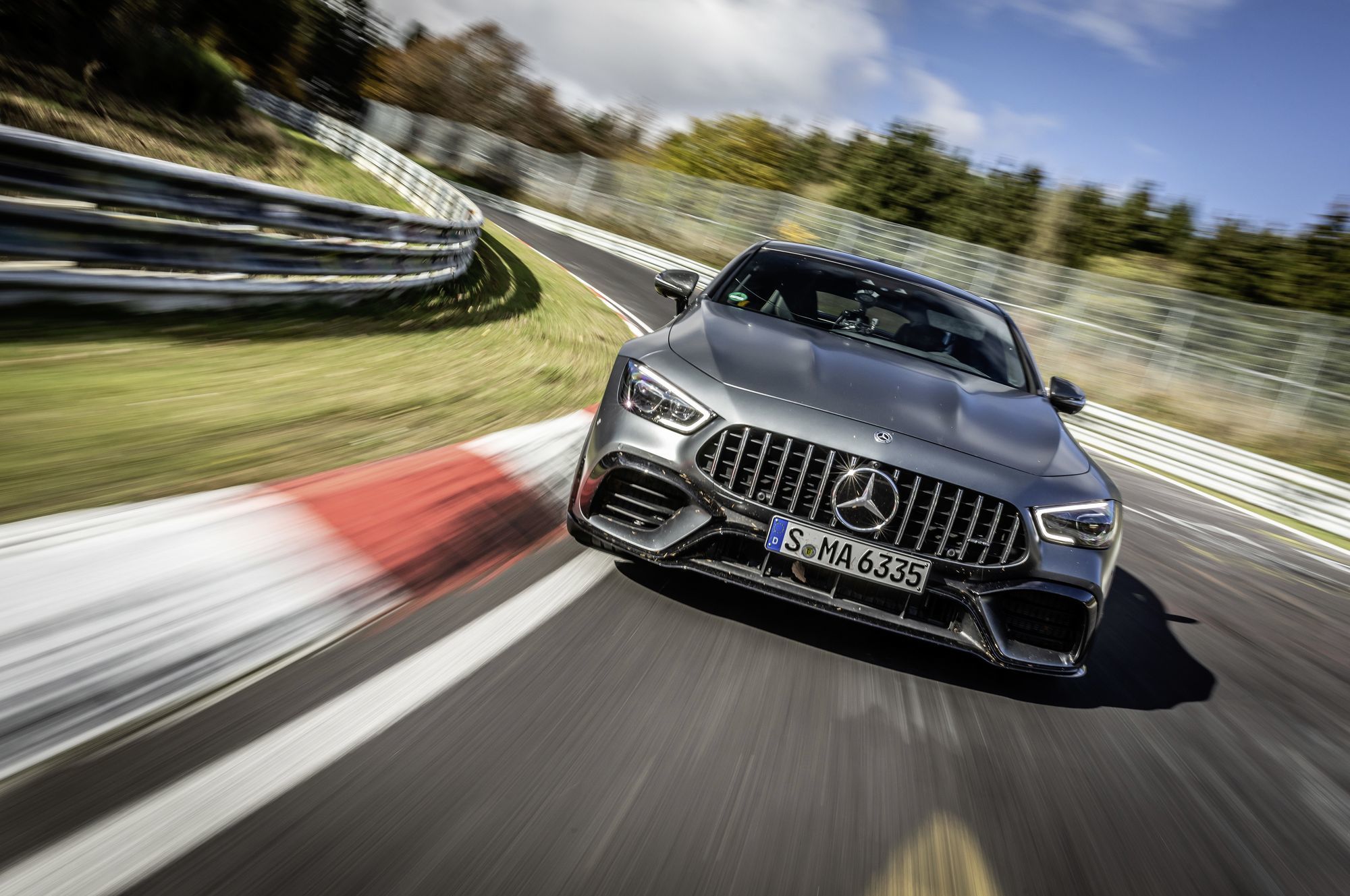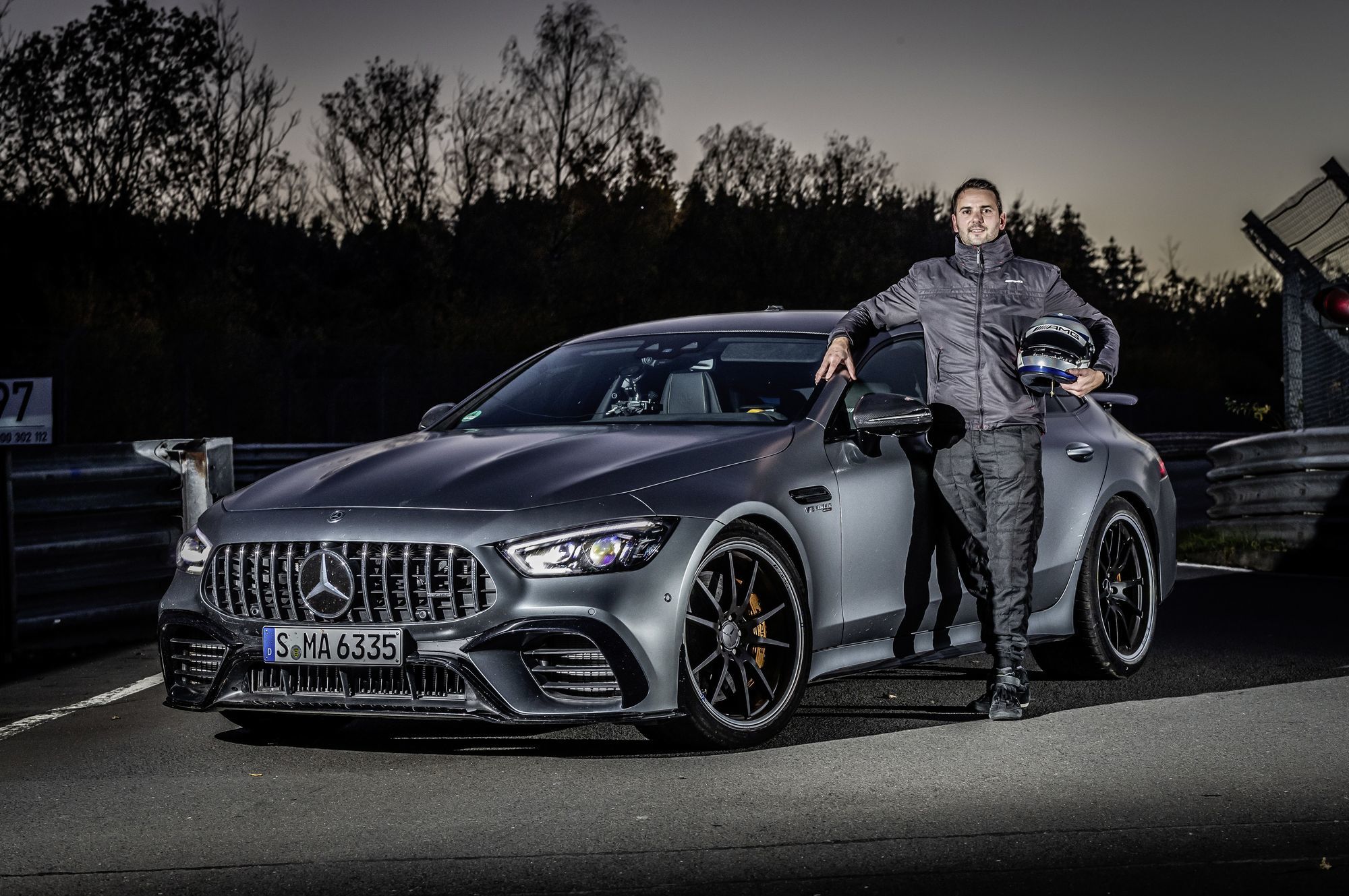 Штутгарт превратился в столицу гонки вооружений. Осенью 2018 года Mercedes-AMG GT 63 S 4Matic+ под управлением бывшего гонщика и инженера отделения Mercedes-AMG Дэмиана Шафферта побил рекорд Нордшляйфе в классе «executive cars», проехав круг длиной 20,832 км за 7:30.11. Это время держалось почти два года, и летом 2020-го самым быстрым автомобилем в этой категории стал хэтч Porsche Panamera Turbo S. Пилот-испытатель Ларс Керн осилил то же расстояние за 7:29.81. Но покой мерседесовцам после этого только снился. А потому спустя три месяца Дэмиан Шафферт вновь вывел Mercedes-AMG GT 63 S 4Matic+ на Нордшляйфе. Итог — 7:27.80!