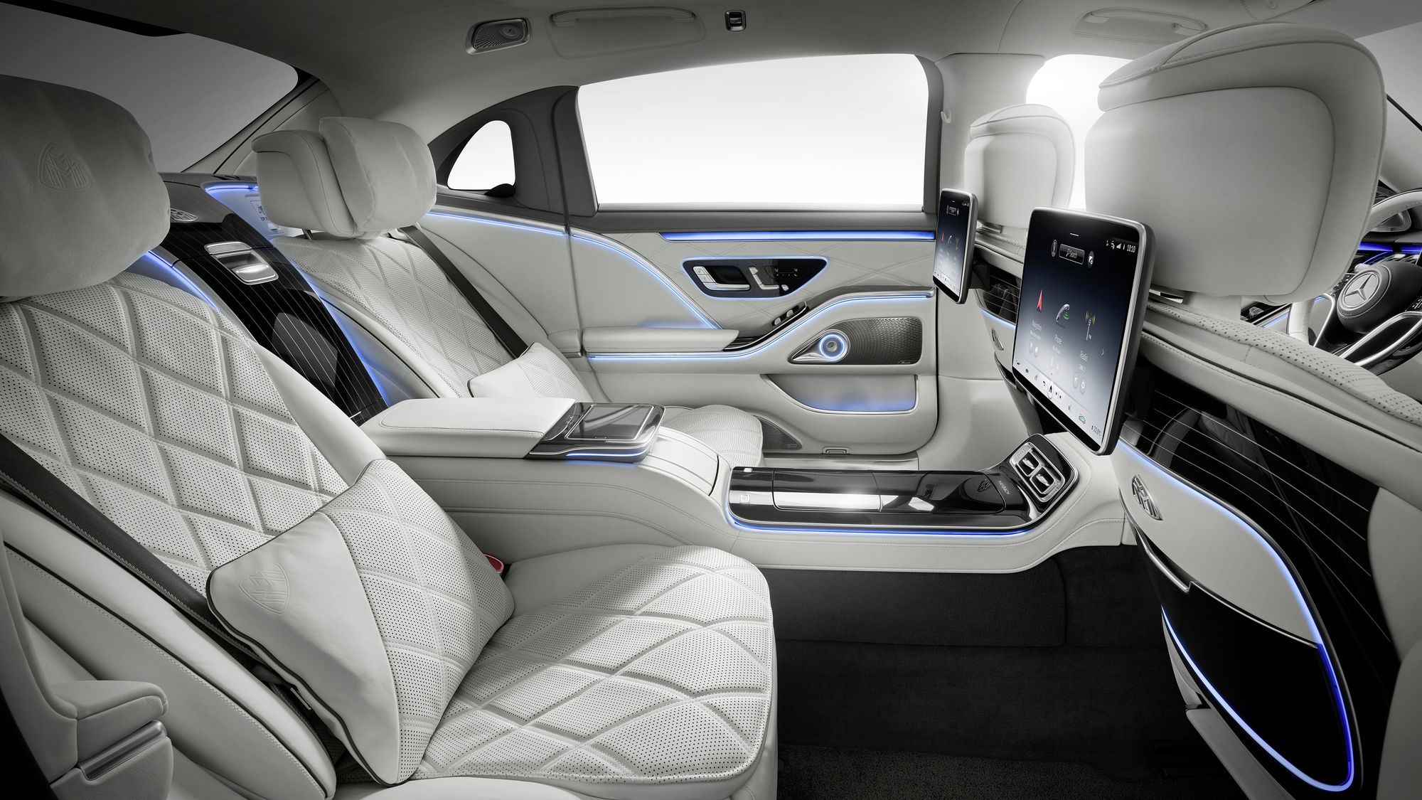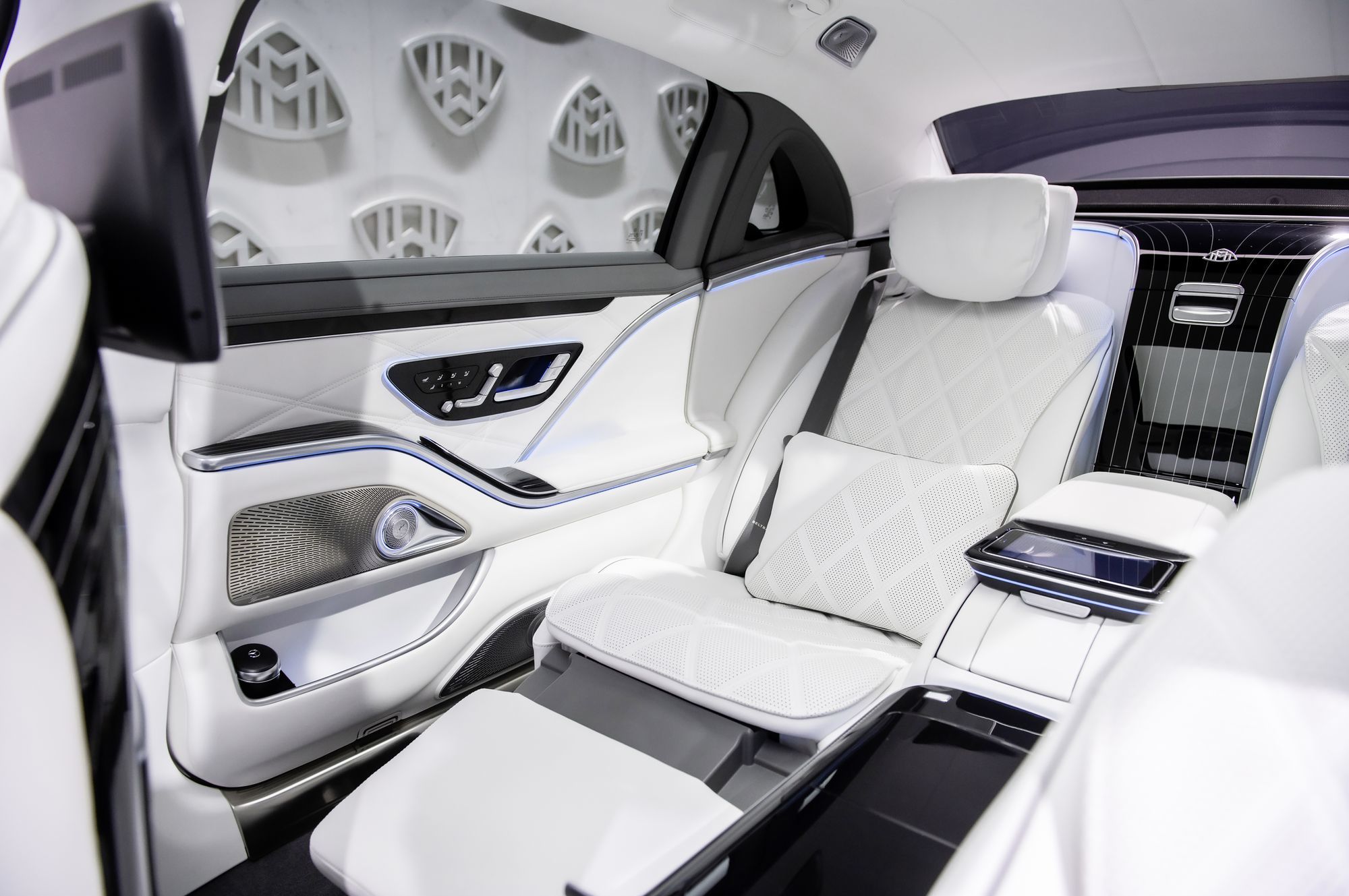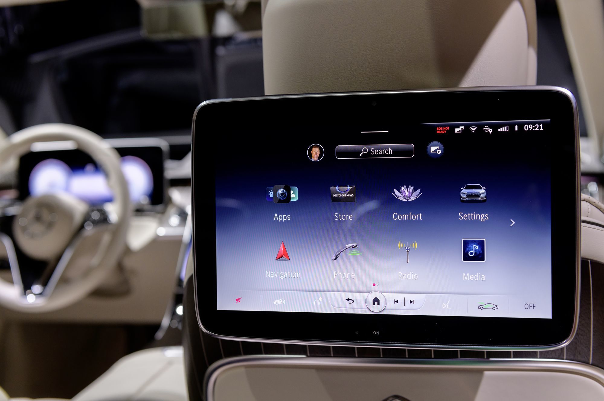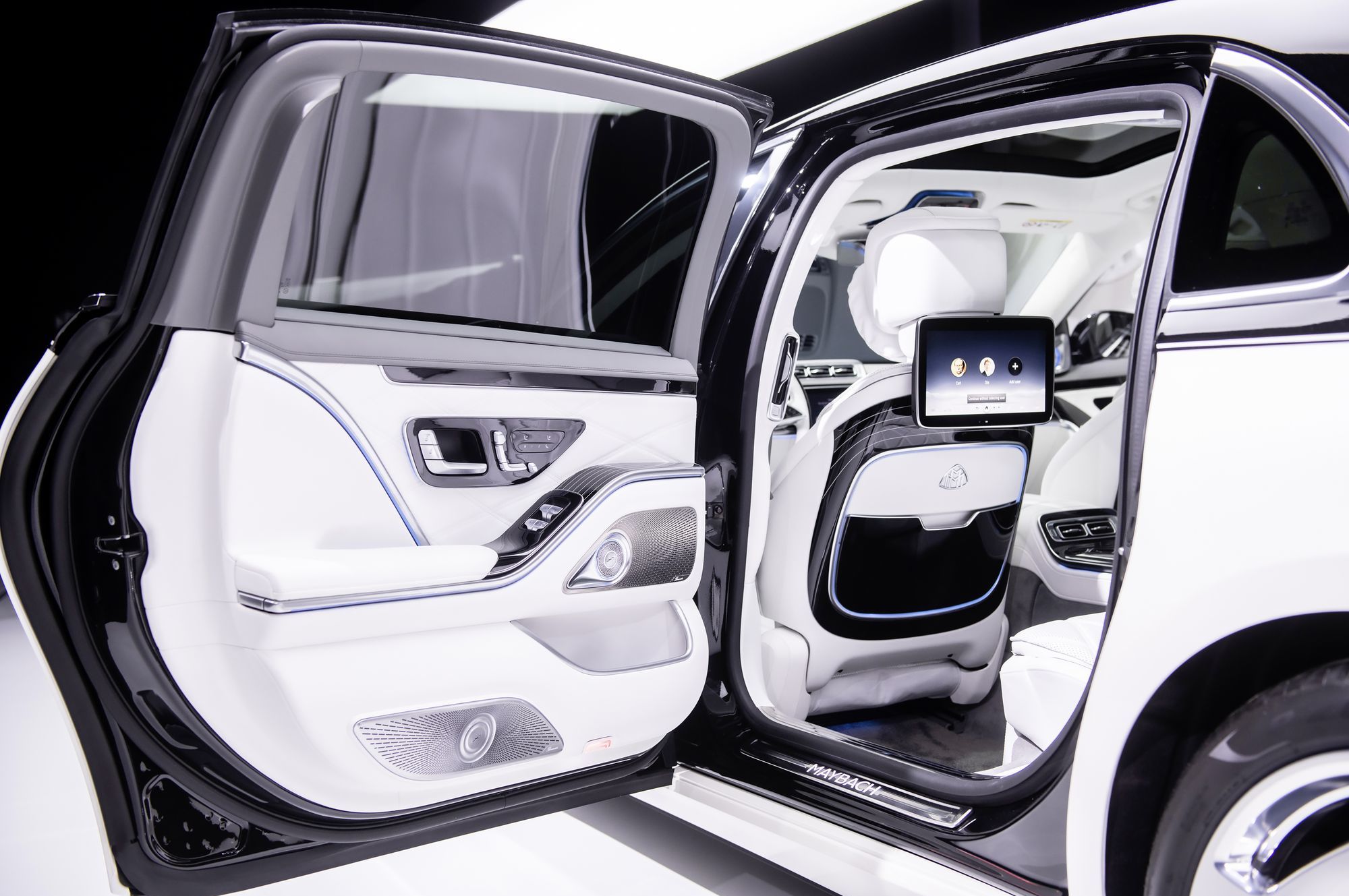 При опции First-Class в машине появляется несколько примечательных деталей на втором ряду вроде двойных подстаканников с функцией нагрева и охлаждения, лотка для заднего планшета управления развлекательной системой MBUX, выдвижных столиков и других приятных мелочей. Опциональный холодильник в заднем подлокотнике регулируется в диапазоне температур от одного до семи градусов. Задние двери повышенной комфортности с электроприводом (опция) открываются и закрываются не менее чем семью способами (в том числе с места водителя, с передних и задних дисплеев, прикосновением к сенсорной ручке). И этот привод блокируется, если система контроля слепых зон видит приближающийся сзади объект.