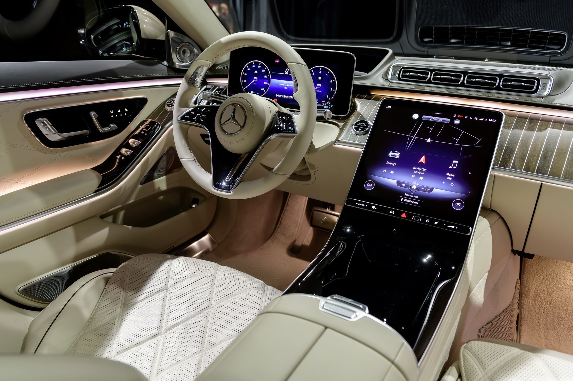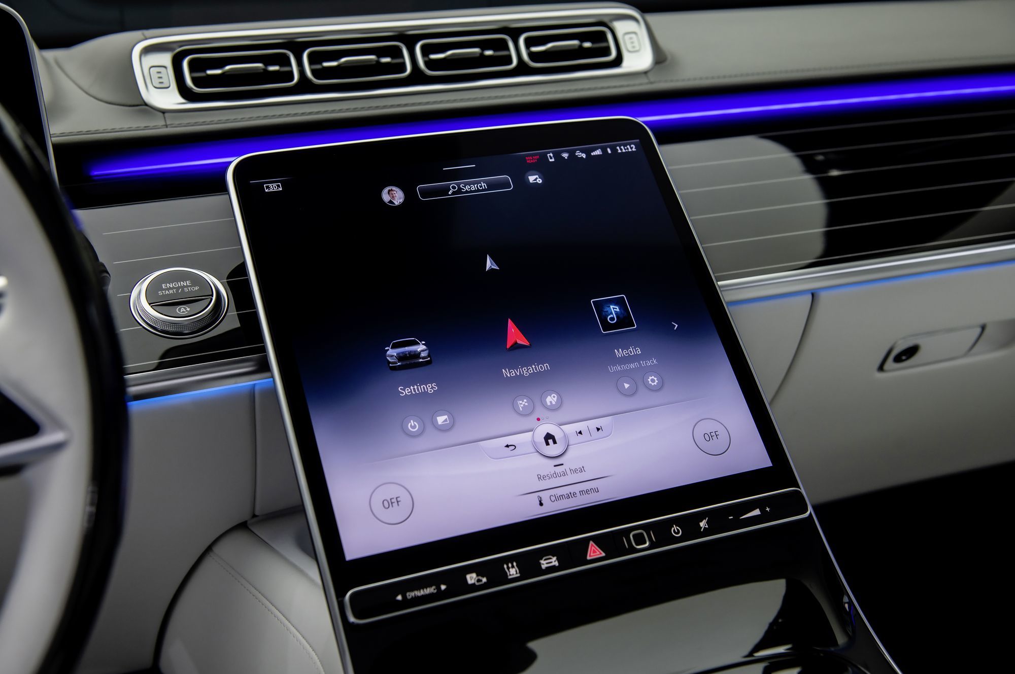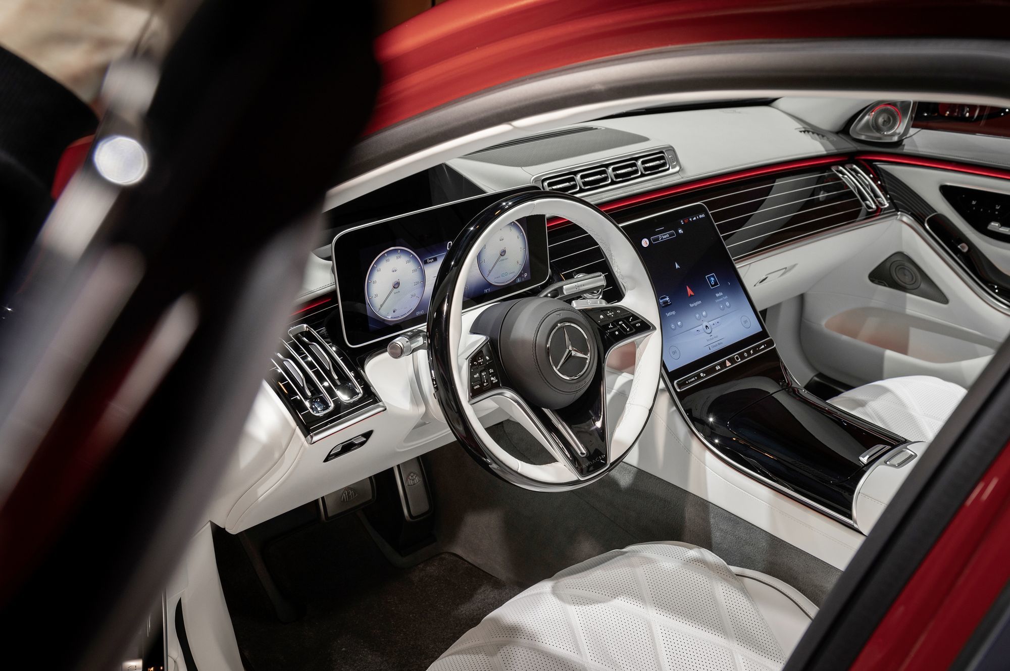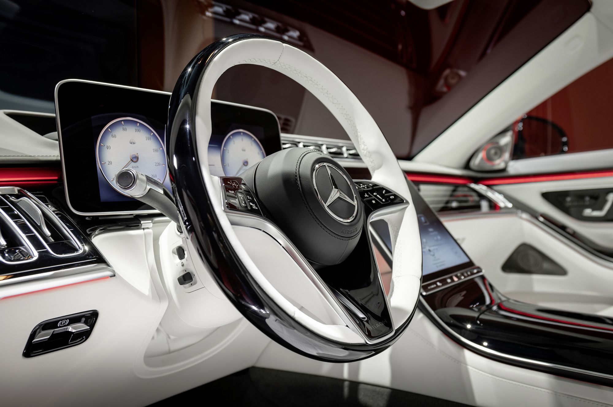 При опции First-Class в машине появляется несколько примечательных деталей на втором ряду вроде двойных подстаканников с функцией нагрева и охлаждения, лотка для заднего планшета управления развлекательной системой MBUX, выдвижных столиков и других приятных мелочей. Опциональный холодильник в заднем подлокотнике регулируется в диапазоне температур от одного до семи градусов. Задние двери повышенной комфортности с электроприводом (опция) открываются и закрываются не менее чем семью способами (в том числе с места водителя, с передних и задних дисплеев, прикосновением к сенсорной ручке). И этот привод блокируется, если система контроля слепых зон видит приближающийся сзади объект.
