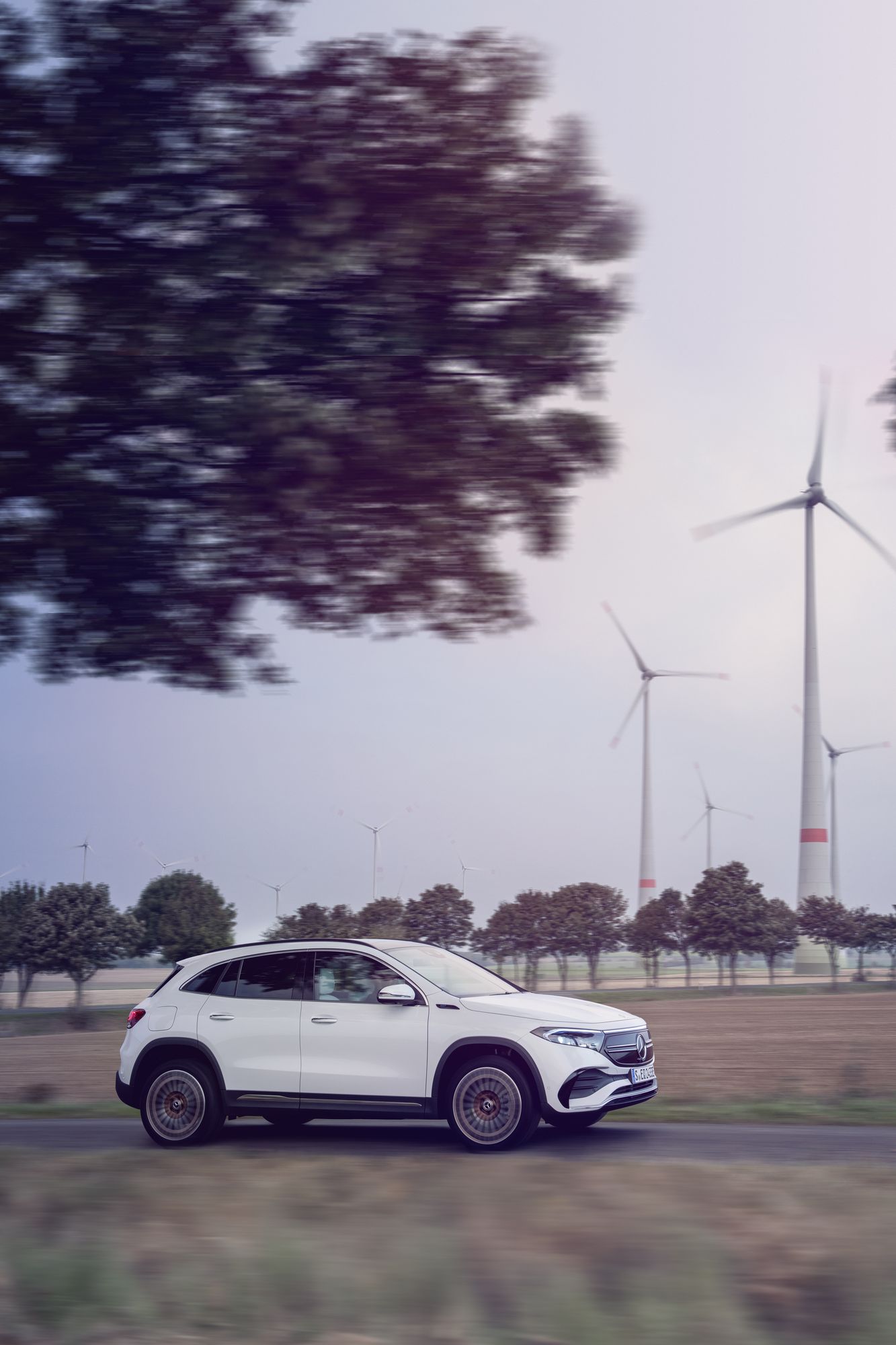 Паркетник Mercedes-Benz EQA, близкий родственник GLA, отпраздновал премьеру в вариации с индексом EQA 250. Он получил электромотор с отдачей 140 кВт (190 л.с.) и 375 Н•м, вращающий передние колёса. Тяговая батарея ёмкостью 66,5 кВт•ч (используемая часть) обеспечивает пробег на одной зарядке в 426 км по циклу WLTP и 486 км по NEDC. Автомобиль расходует в среднем 15,7 кВт•ч/100 км (NEDC), разгоняется до максималки в 160 км/ч, а ускорение с нуля до ста покоряется Мерседесу EQA 250 за 8,9 с.