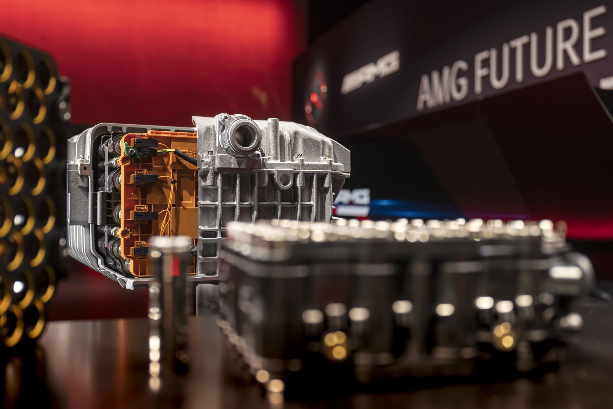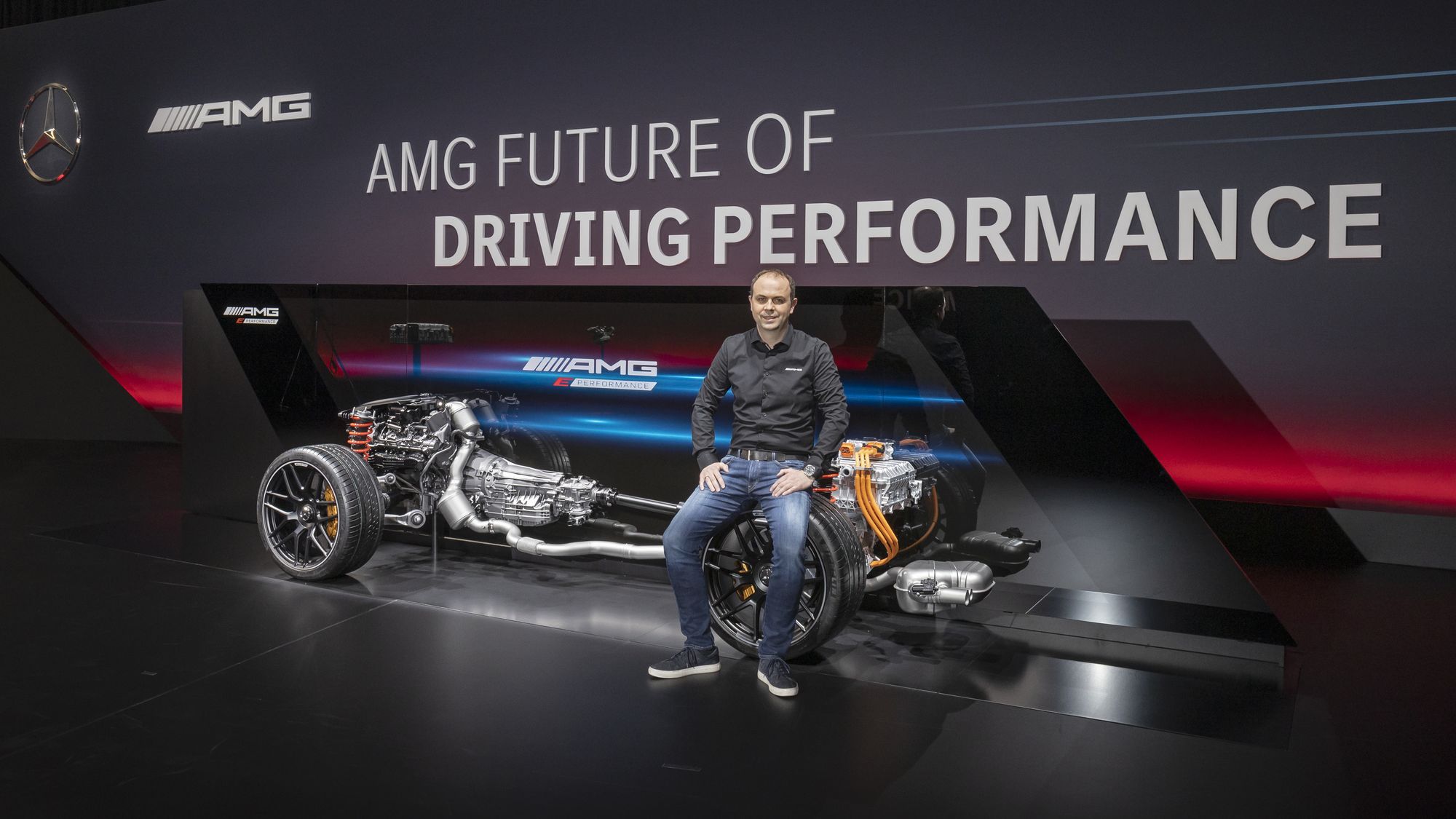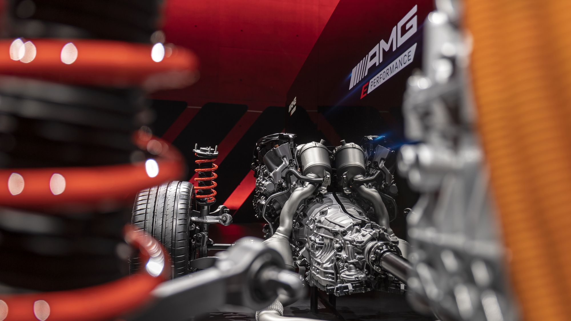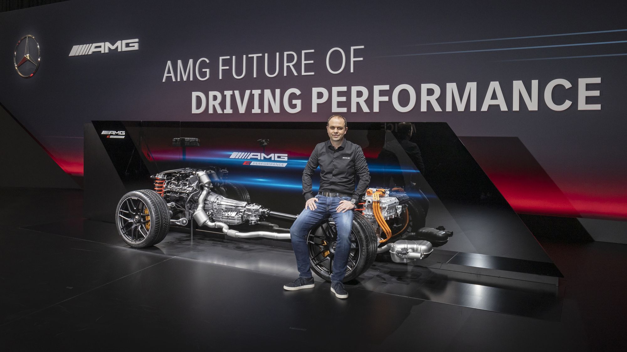 Над электромотором, который по умолчанию приводит задние колёса и никак не связан с девятидиапазонной коробкой передач AMG Speedshift MCT с набором мокрых фрикционов вместо гидротрансформатора, установлена 400-вольтовая тяговая батарея. Она весит 89 кг, а каждая из 560 литий-ионных ячеек получила собственное охлаждение и помещена в отдельную специальную оболочку с толщиной стенок в миллиметр. В блоке аккумуляторов благодаря электрическому насосу циркулирует 14 л охлаждающей жидкости, которая поддерживает оптимальные 45 градусов по Цельсию. Батарея заряжается не только рекуперацией, но и от сети с помощью бортового чарджера на 3,7 кВт.