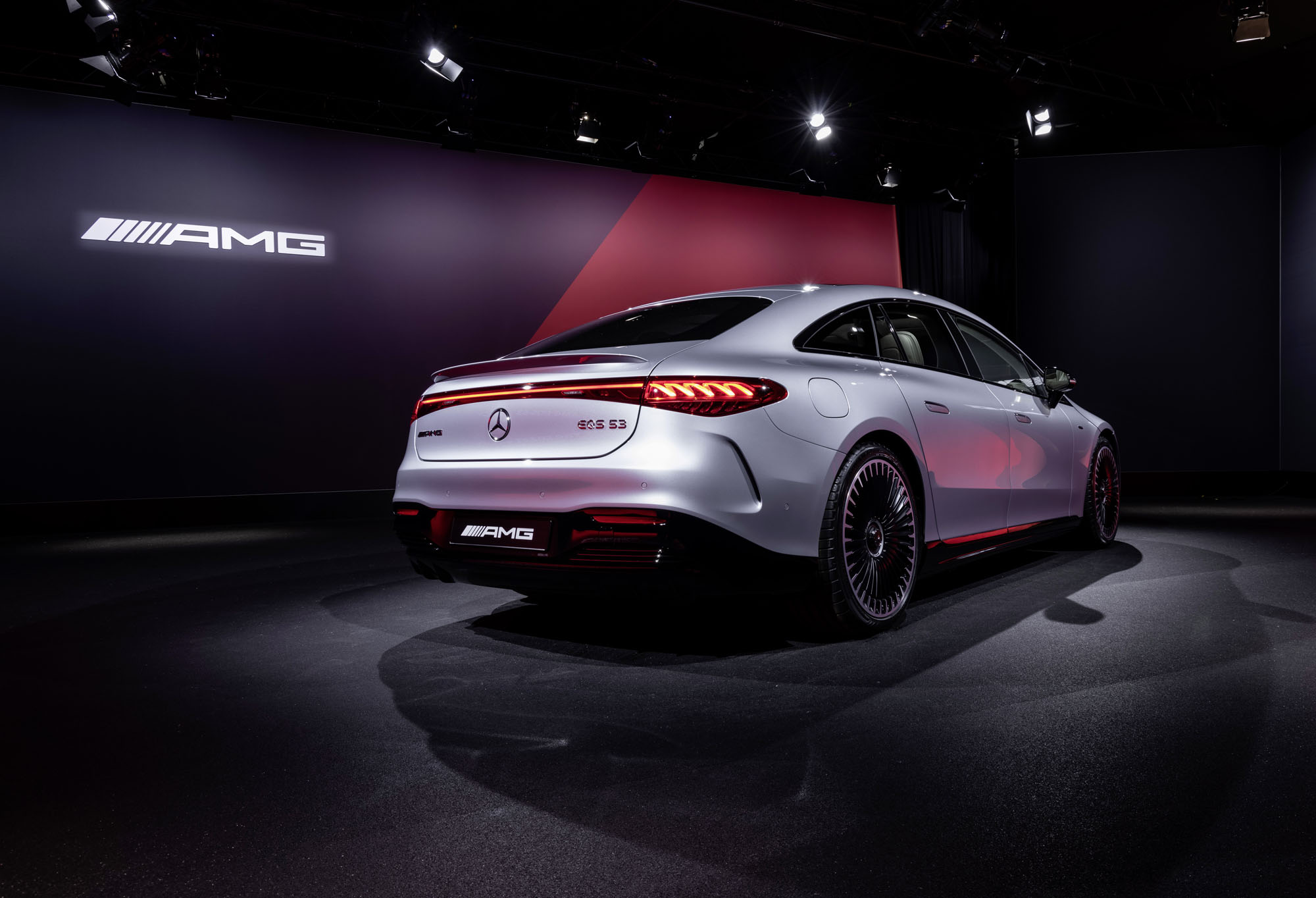 С нуля до сотни AMG EQS 53 4Matic+ ускоряется за 3,8 с в базовой версии и за 3,4 с пакетом AMG Dynamic Plus — неплохо для модели со снаряжённой массой в 2655 кг (с водителем). Максималка равна 220 и 250 км/ч соответственно. Адаптивная пневмоподвеска AMG Ride Control+ получила иные настройки, в сравнении с простыми EQS, и даже новые компоненты (кронштейны, рычаги, стабилизаторы плюс подрамники и опоры силовых модулей). Как в последнем AMG GT, вне амортизаторов установлены бесступенчатые клапаны независимой регулировки сопротивления сжатия и отбоя. Управляемая задняя ось является штатной.