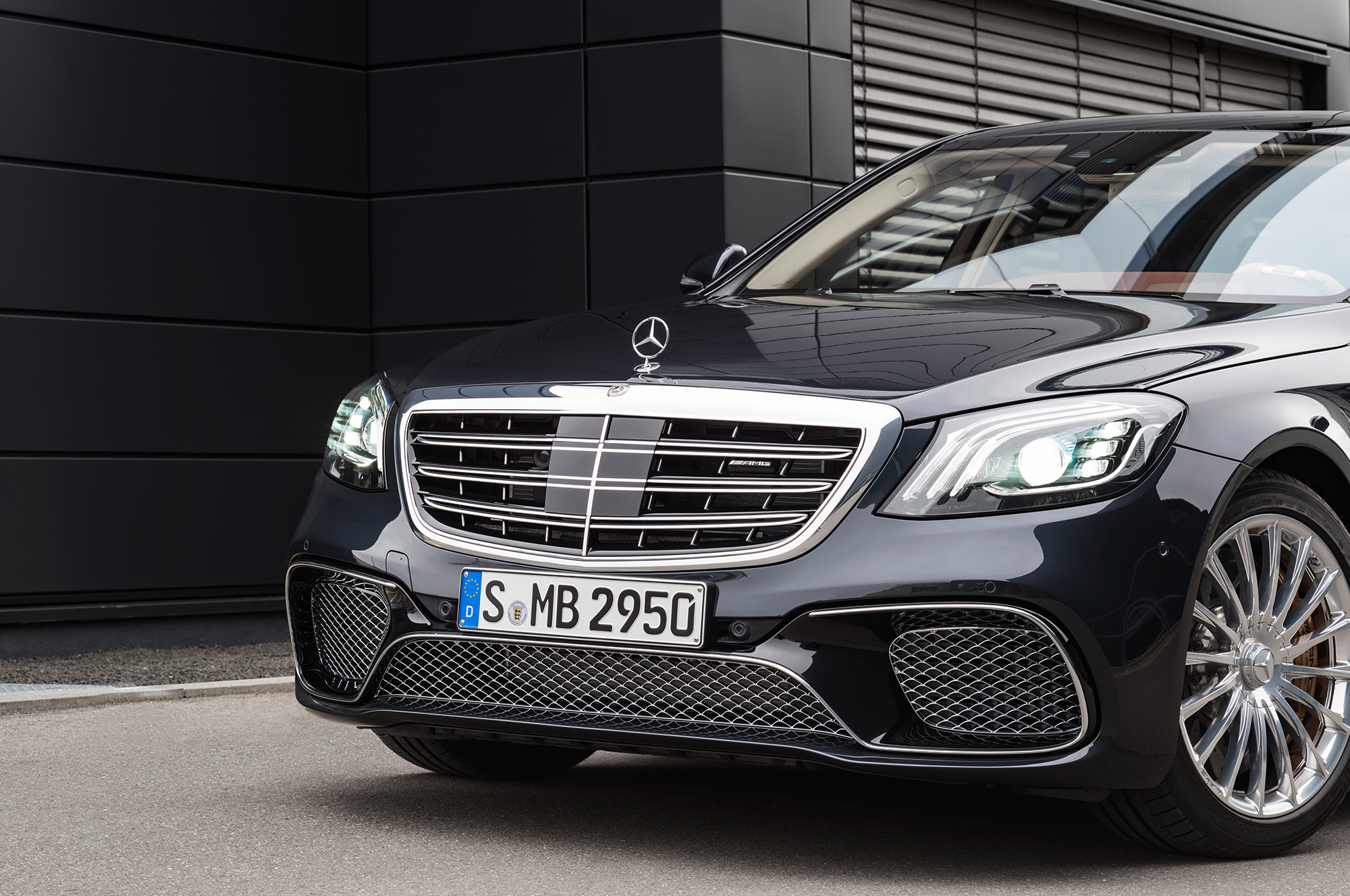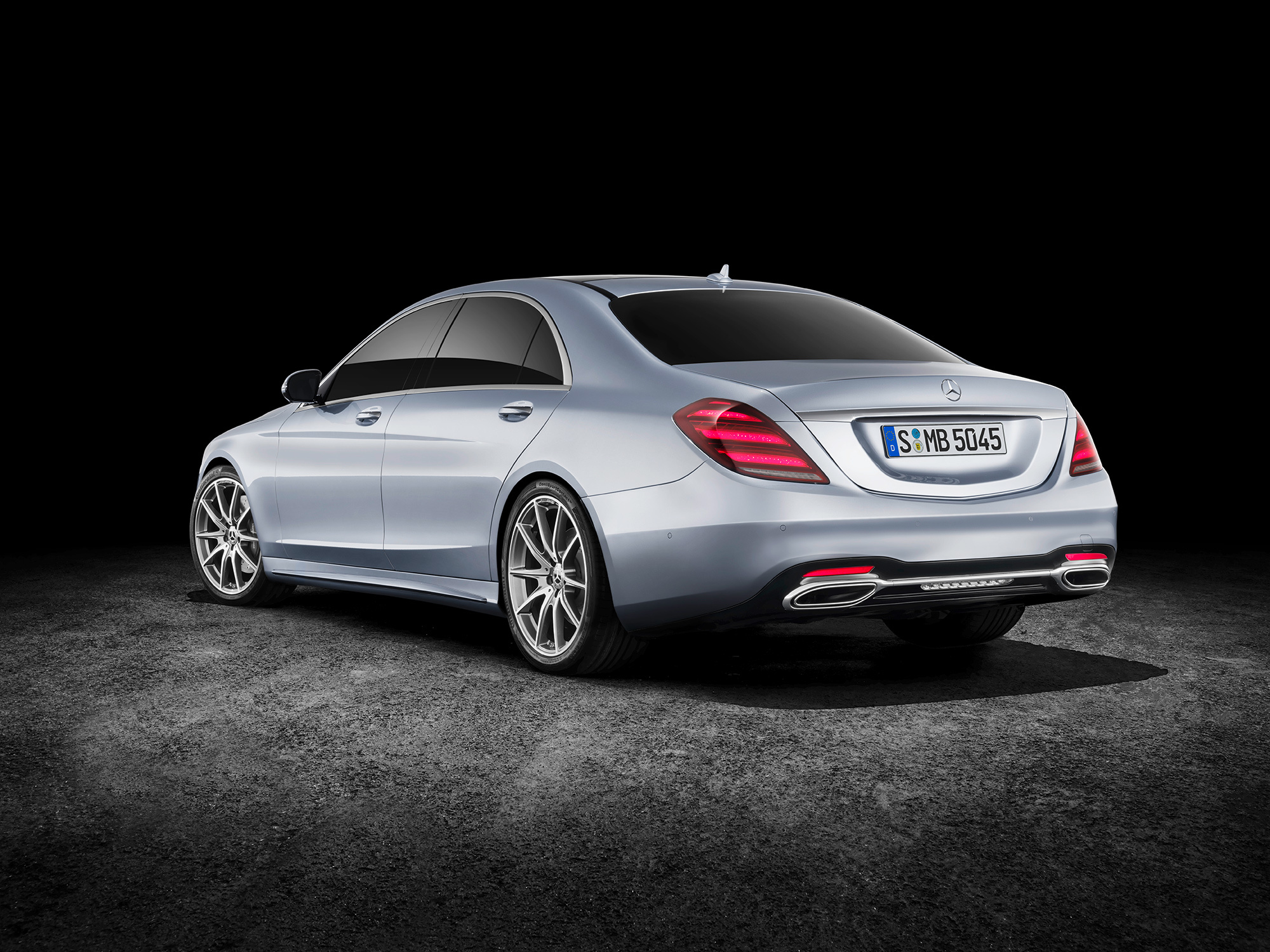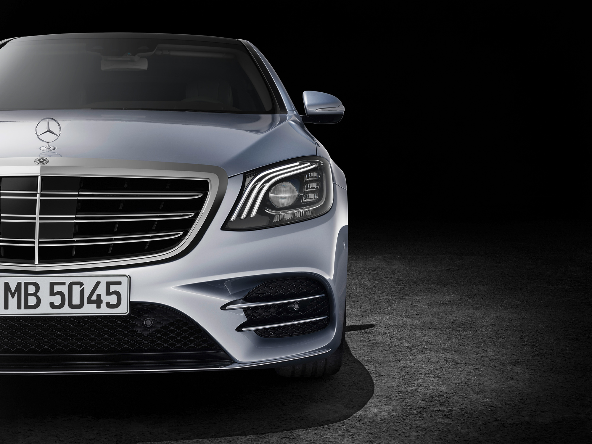 С 2013 года (старт нынешнего поколения) реализовано более 300 000 седанов S-класса. Учитывая армию поклонников, к коррекции облика модели подходить надо было с осторожностью. И правда, при беглом взгляде на машину в потоке не сразу обратишь внимание на перемены. Но тут полно мелких свежих штрихов, к тому же обновление сдобрено аж семью новыми вариантами колёсных дисков (17−20 дюймов). Ещё поклонники «эсок» порадуются ясному ранжированию. Три сдвоенные горизонтальные планки на радиаторной решётке положены шести- и восьмицилиндровым стандартным модификациям, длинная база и 12-цилиндровый мотор добавляют к ним несколько вертикальных хромированных полосок.