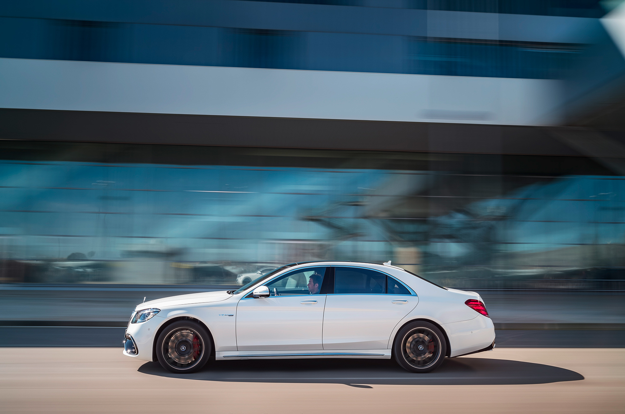 Добавление двух передач по сравнению с предшественником — один из факторов улучшения динамики разгона седана S 63 4Matic+ с места до сотни: с четырёх секунд это время упало до 3,5 с. Такой показатель достигается с новой функцией Race Start. В режиме Sport или Sport+ достаточно одновременно нажать до упора тормоз и газ, как электроника настроит обороты мотора. При этом есть возможность откорректировать стартовые обороты подрулевыми лепестками в зависимости от состояния полотна. Дальше нужно просто бросить тормоз. Максималка S 63 традиционно ограничена на уровне 250 км/ч, но с пакетом AMG Driver's Package она вырастает до 300 км/ч.