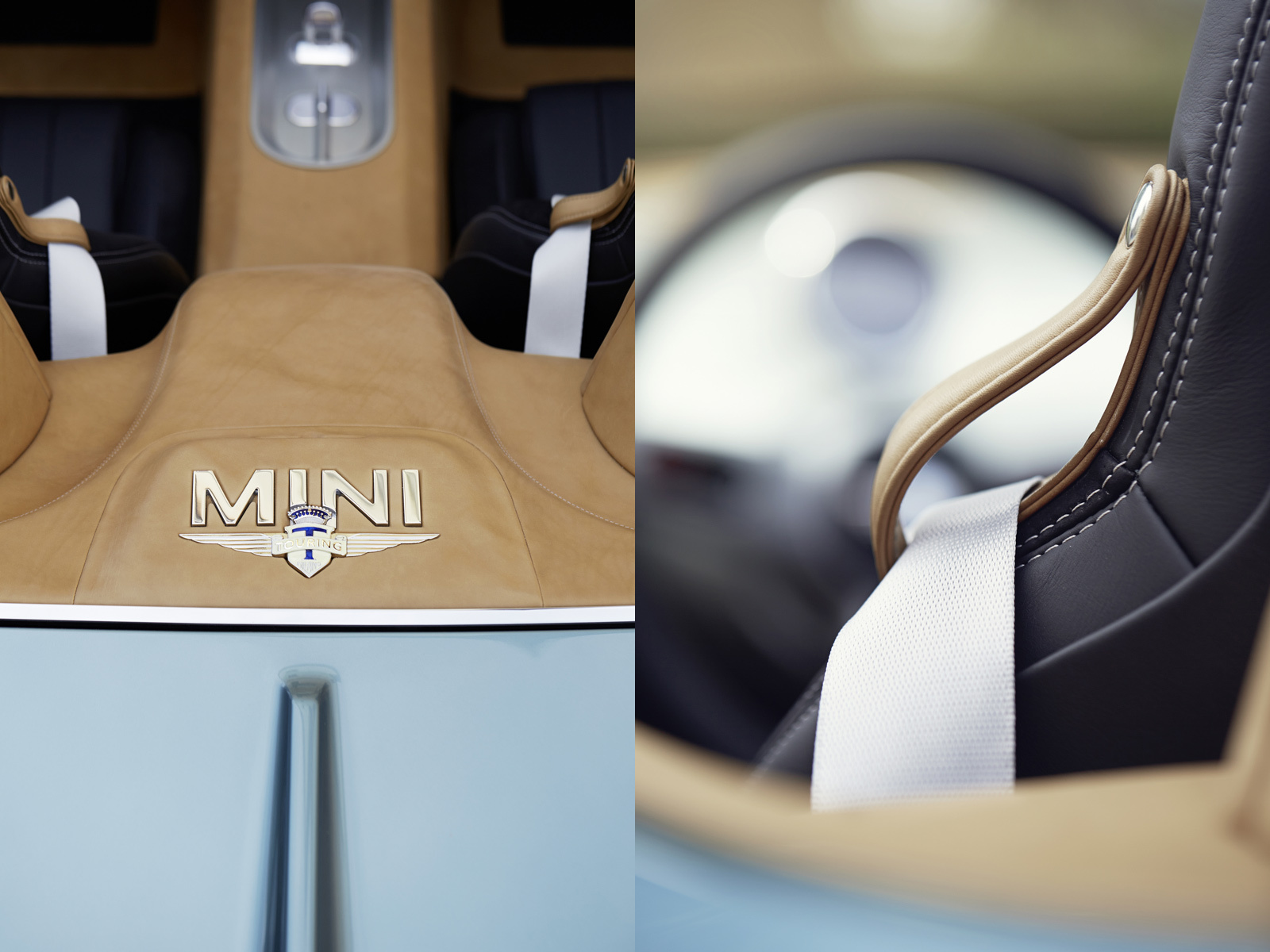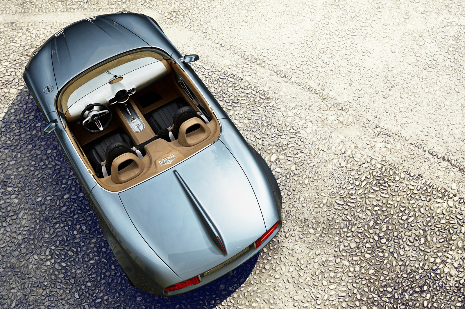 Не один оригинальный Mini вдохновлял дизайнеров Touring Superleggera, но и британские родстеры середины прошлого века. Намёки на них можно найти во внешности: рельефные полосы на капоте, украшенные декоративными элементами из полированного алюминия, киль в задней части двухдверки, да и сами пропорции кузова с удлинённым капотом, относительно малыми свесами, рельефными крыльями.