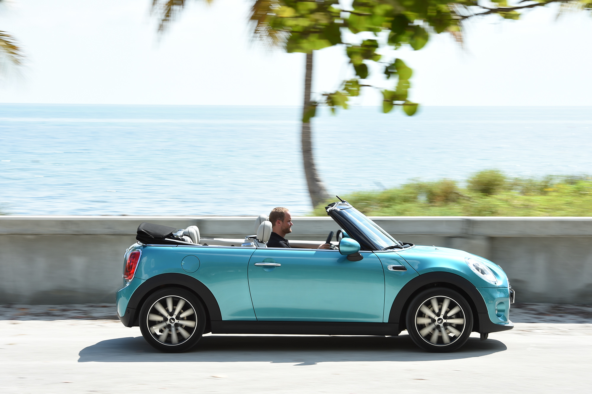Двухлитровый бензиновый агрегат позволяет новинке набирать первую сотню за 7,2 с с шестиступенчатой «механикой» и 7,1 с с шестиступенчатым «автоматом» Steptronic. Максималки в этих случаях равны 230 и 228 км/ч соответственно. Третий вышедший вариант — дизельный Cooper D Convertible (1.5, 116 л.с., 270 Н•м, 300 в режиме overboost). С «механикой» он расходует всего 3,8–4,0 л/100 км, но и разгон самый степенный — 9,9 с с места до ста. В списке вариантов через некоторое время можно ждать пополнения в виде 102-сильной версии One и 170-сильной SD, а позже должна выйти 231-сильная «зажигалка» John Cooper Works.