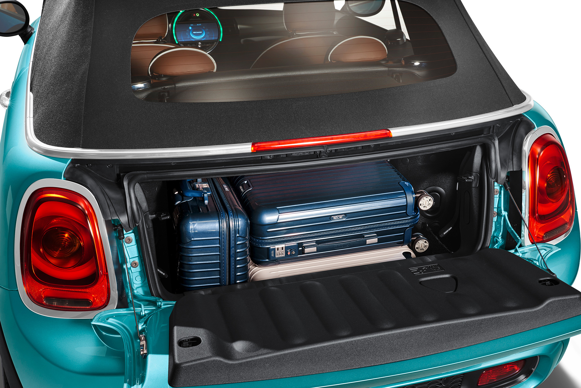 По сравнению с закрытым собратом кабриолет получил чуть иные настройки подвески, а ликвидация жёсткой крыши, конечно же, потребовала добавления ряда усилителей под днищем. «Выстреливающая» при опрокидывании защита теперь практически незаметно интегрирована позади сидений. Разумеется, есть ветрозащитный экран. Вообще создатели модели позаботились о комфорте: салон стал просторнее, полностью автоматический механизм складывания крыши работает тише, обогатилось оснащение (появились светодиодные фары, проекционный дисплей). Из новаций стоит отметить приложение MINI Connected App, предупреждающее водителя о приближении дождя. В Германии стартовая цена новинки уже объявлена: 23 950 евро за Cooper (на 4050 евро дороже трёхдверки с тем же мотором).