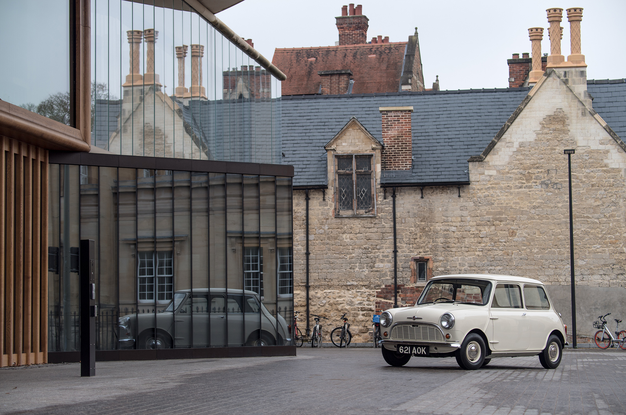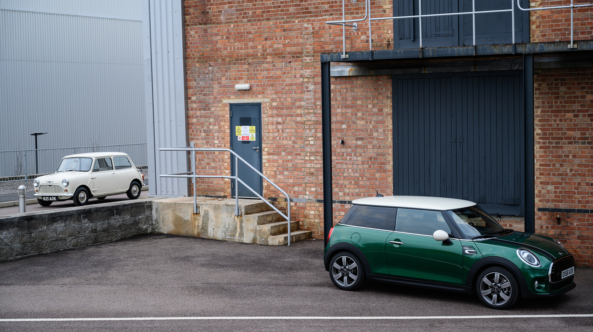 В таком ракурсе особенно хорошо видно, насколько нынешний Mini крупнее, чем самый первый, оригинальный Morris Mini-Minor. В нём насчитывалось 3054 мм от бампера до бампера при колёсной базе в 2036. В современном трёхдверном хэтчбеке — 3821 и 2495 мм соответственно. В зависимости от мотора и ряда особенностей классический Mini весил 580-730 кг, а современный — 1,16-1,25 т.