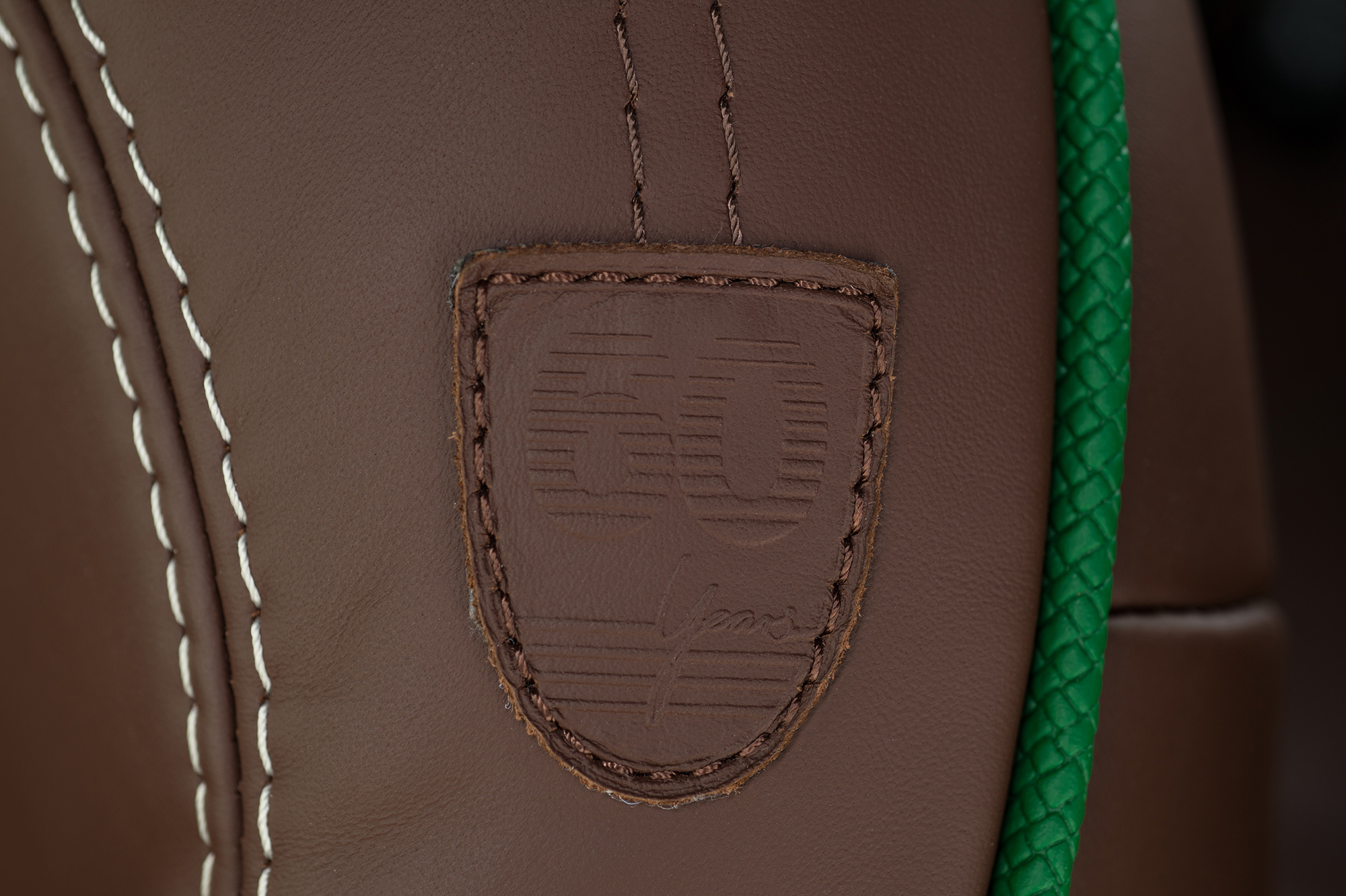 Первое, что бросается в глаза: надписи 60 Years на капоте и крыльях (около повторителей поворотов). Открыв же двери, можно увидеть аналогичные логотипы на порогах и в виде светодиодной проекции на асфальте. Внутри юбилейная серия выделяется спортивными кожаным рулём и сиденьями в необычной дизайнерской отделке MINI Yours Leather Lounge 60 Years с кожей эксклюзивного цвета Dark Maroon.