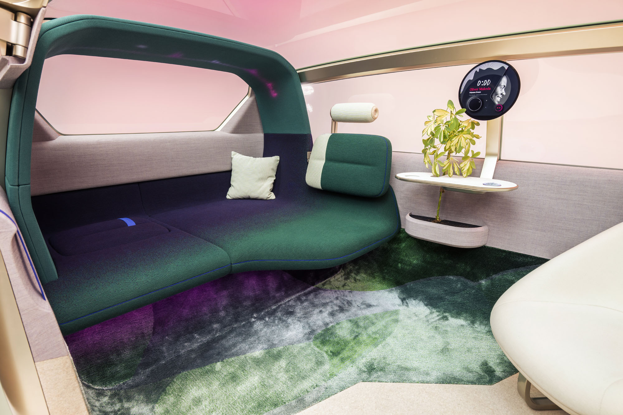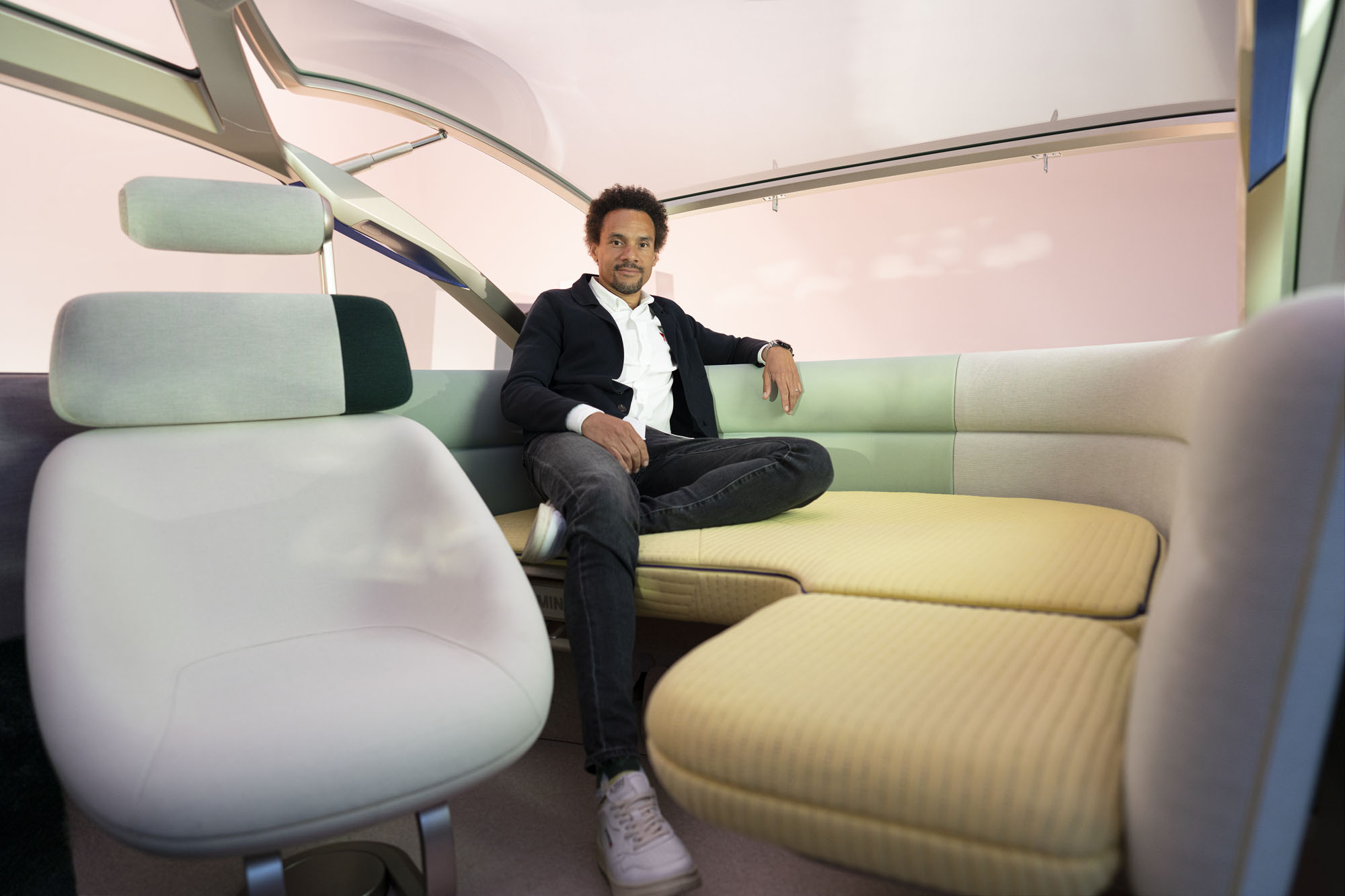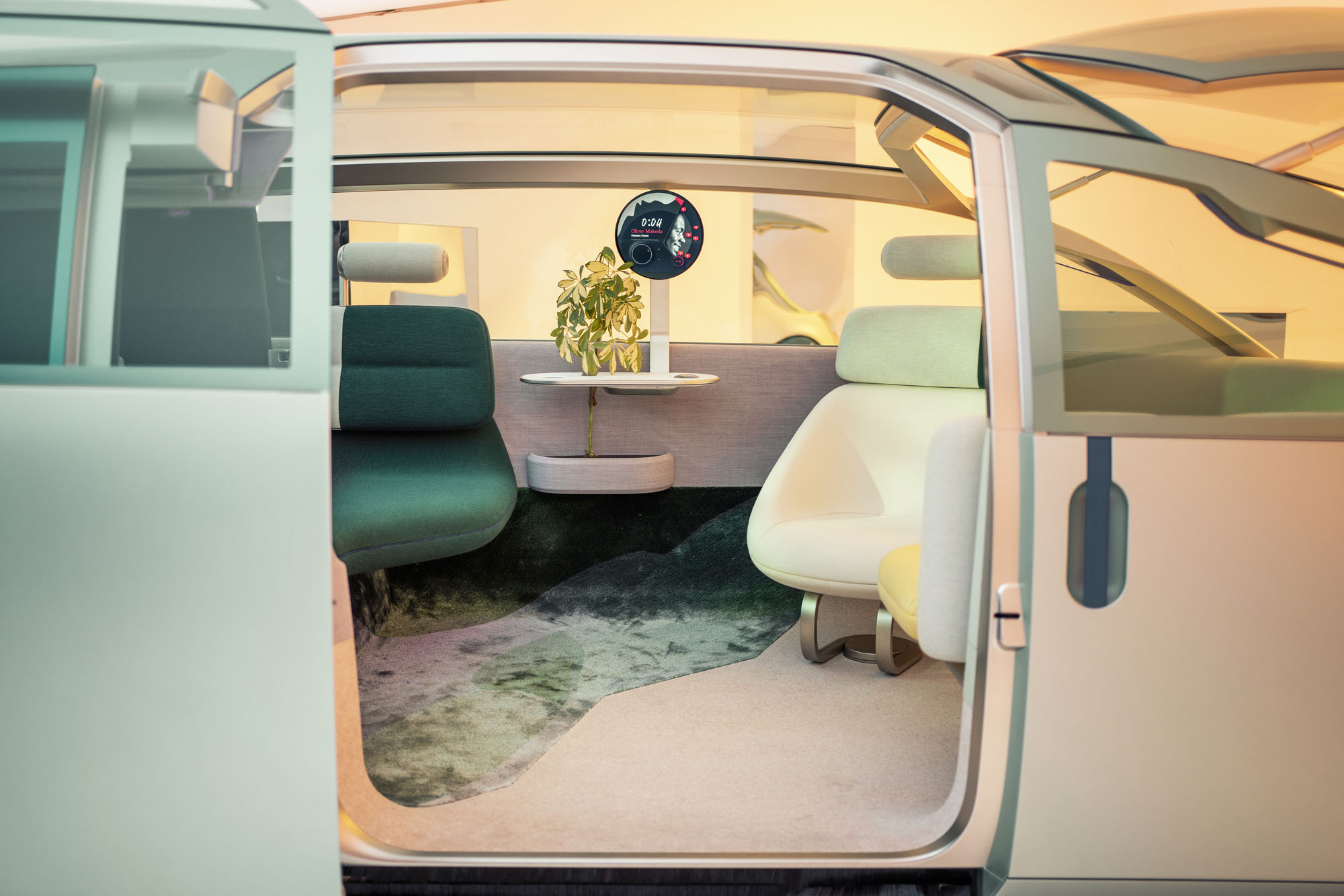 Наконец, режим общения Vibe (на стоянке) предполагает максимальное погружение пассажиров в комфортную обстановку, при этом стирая границу между машиной и окружающим миром. Тут распахивается боковая дверь, открывается лобовое стекло, а центральный круглый экран превращается в пульт управления мультимедийным комплексом. Подсветка на задней дуге, а также диоды в колёсных дисках становятся графическими эквалайзерами, меняясь в такт музыке. А ещё добавлен четвёртый режим салона — My moment — с возможностью индивидуальной настройки работы элементов интерьера.