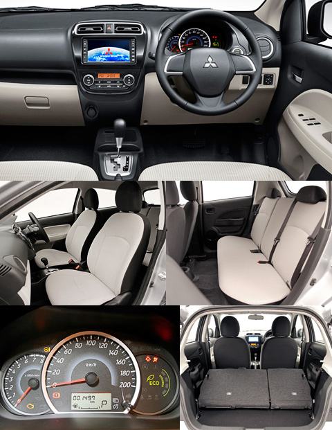 Под этим именем автомобиль будет продаваться на азиатских рынках, в Европе же это будет Colt. По сравнению с нынешним Кольтом новинка станет немного меньше. Габаритные размеры: 3710 мм в длину, 1665 в ширину и 1490 мм в высоту. Но при этом создатели уверяют, что внутри пространства достаточно для того, чтобы без труда рассадить пять человек.