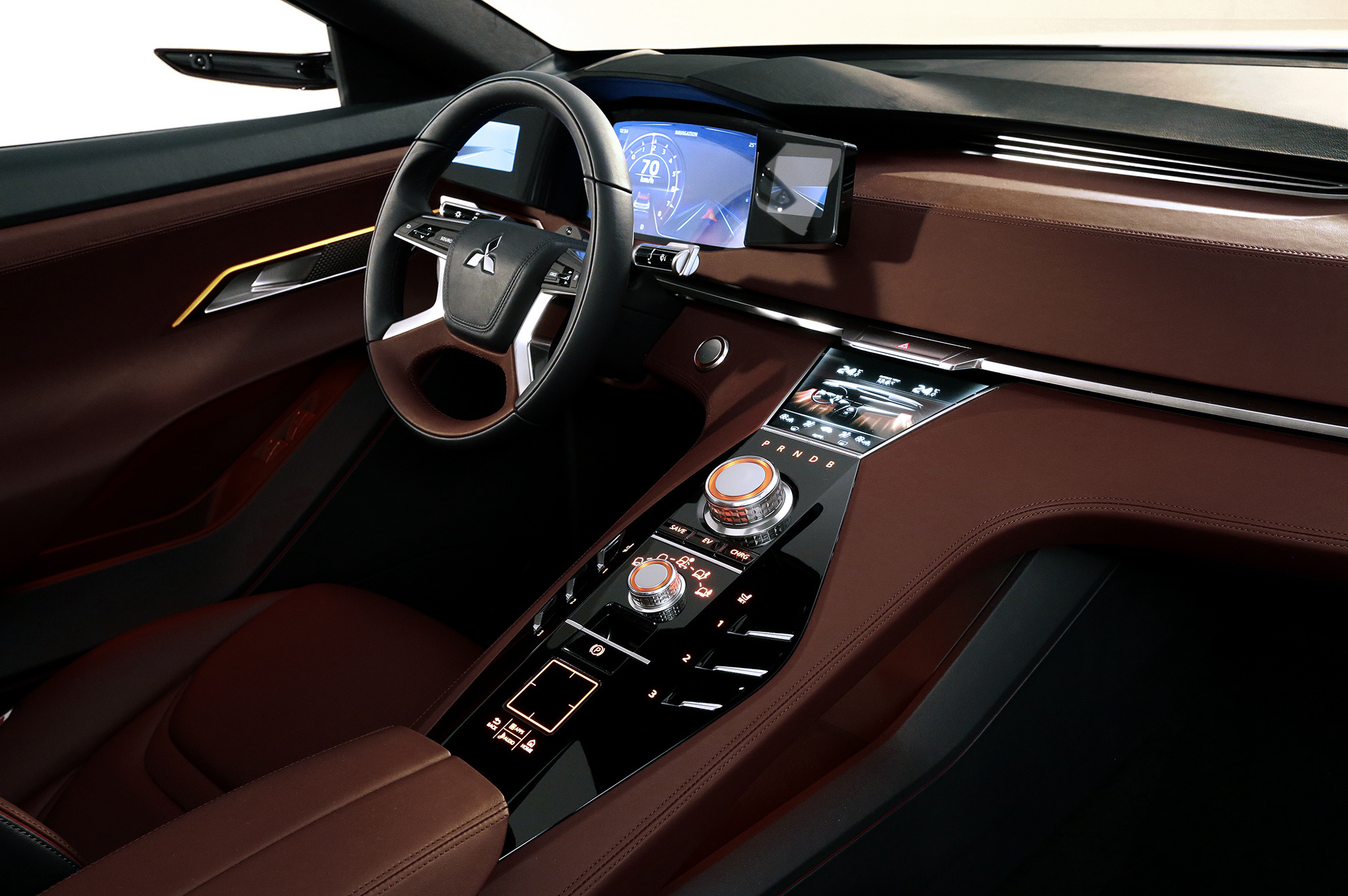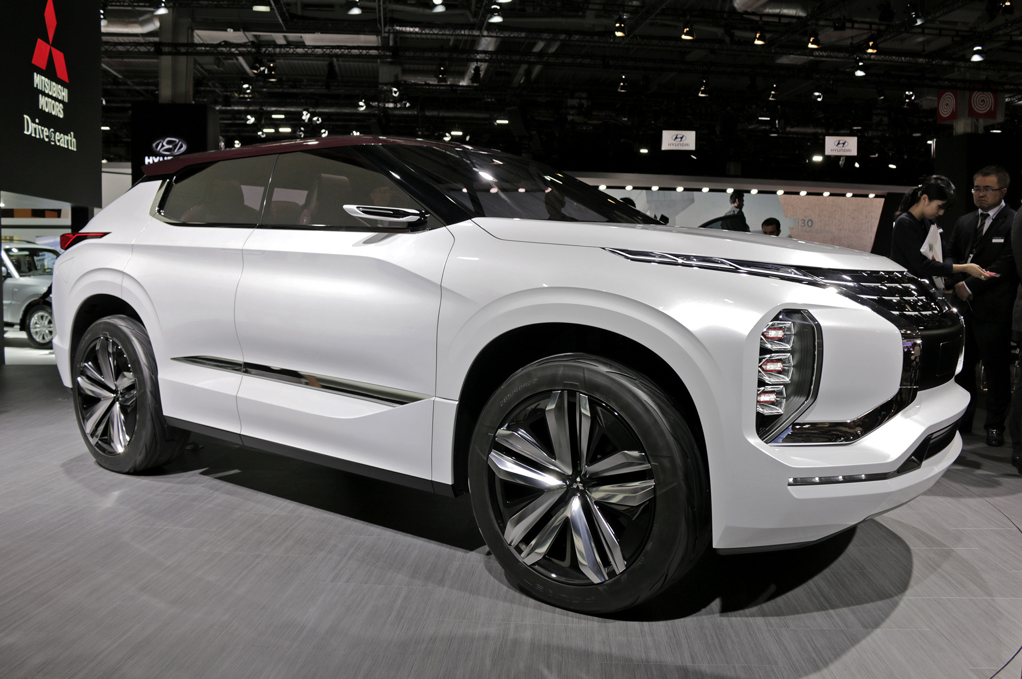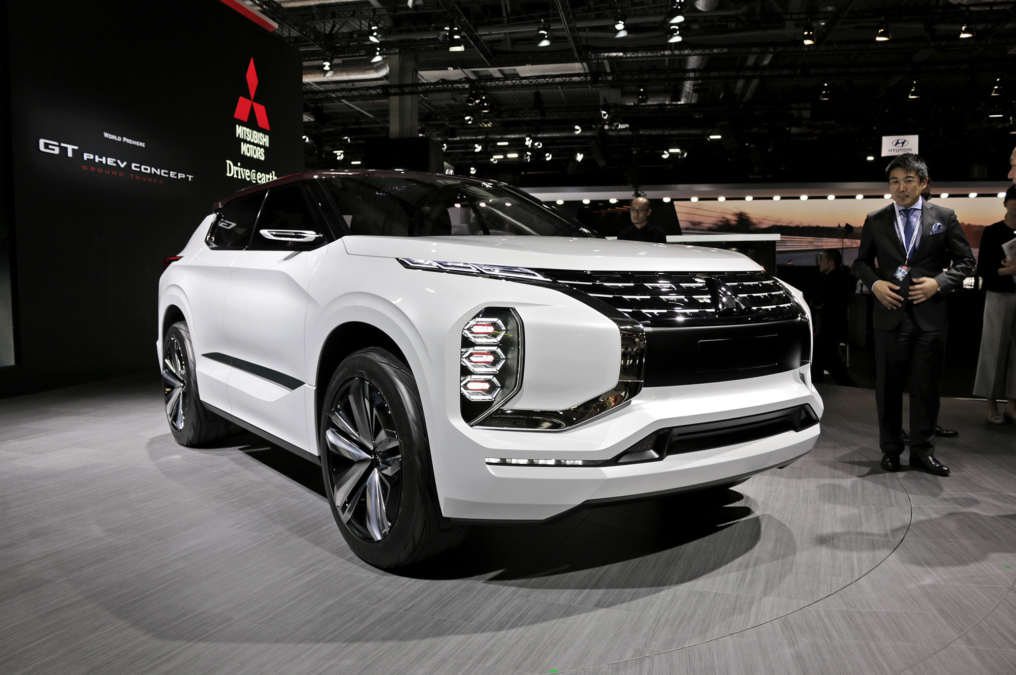 Самый маленький японский автопроизводитель, Mitsubishi Motors, радует концепт-карами чаще, чем серийными новинками. Однако электрические и гибридные автомобили фирма поставила на поток довольно давно. Парижский концептуальный кроссовер Ground Tourer-PHEV, или GT-PHEV, развивает гибридное направление. Имея возможность подзарядки от сети, он также оснащён бензиновым мотором объёмом 2,5 л. Двигатель оптимизирован для применения именно в составе гибридной трансмиссии ― работая на генератор, он выводится в режим максимальной термической эффективности. Ради экономичности мотор подключён через двухступенчатый редуктор.